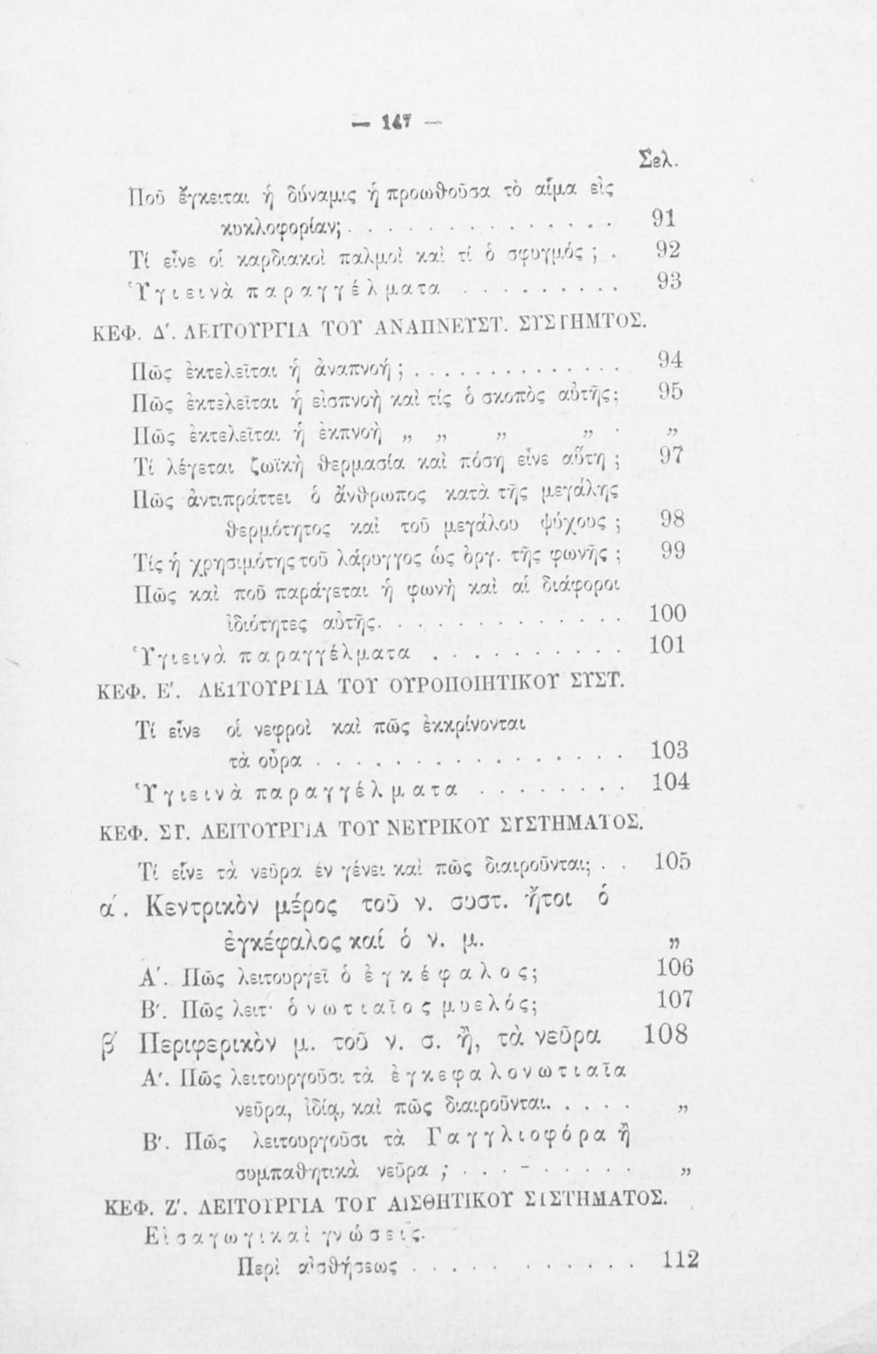Βαθμίδα εκπαίδευσης: Δευτεροβάθμια Τάξη: Γυμνάσιο / Παρθεναγωγείο Μάθημα: Ανθρωπολογία Γλώσσα: Καθαρεύουσα Παρουσίαση περιεχομένου: Σχολικό εγχειρίδιο Ανθρωπολογίας και Υγιεινής για τους μαθητές του Δημοτικού το οποίο εξετάζει στις λειτουργίες του ανθρώπινου σώματος, τα εξωτερικά και εσωτερικά μέρη του σώματος και τους παράγοντες οι οποίοι επηρεάζουν θετικά ή αρνητικά τον ανθρώπινο οργανισμό, όπως η εργασία, η τροφή και η άσκηση. |