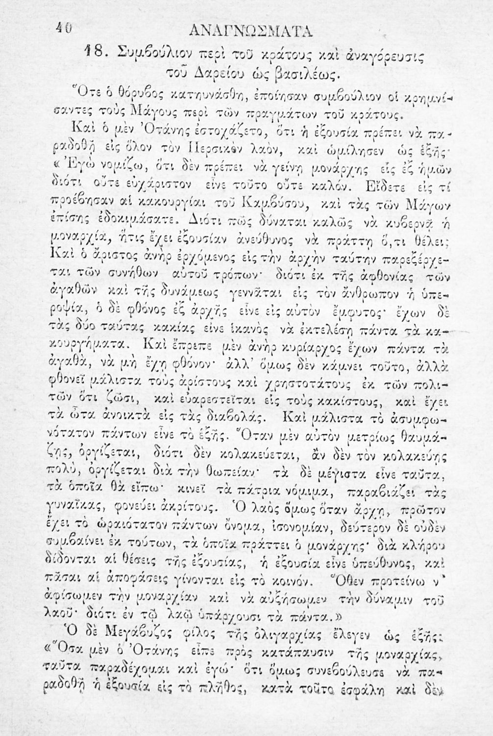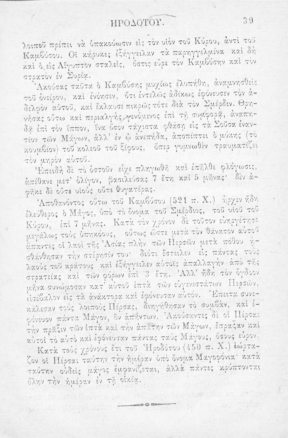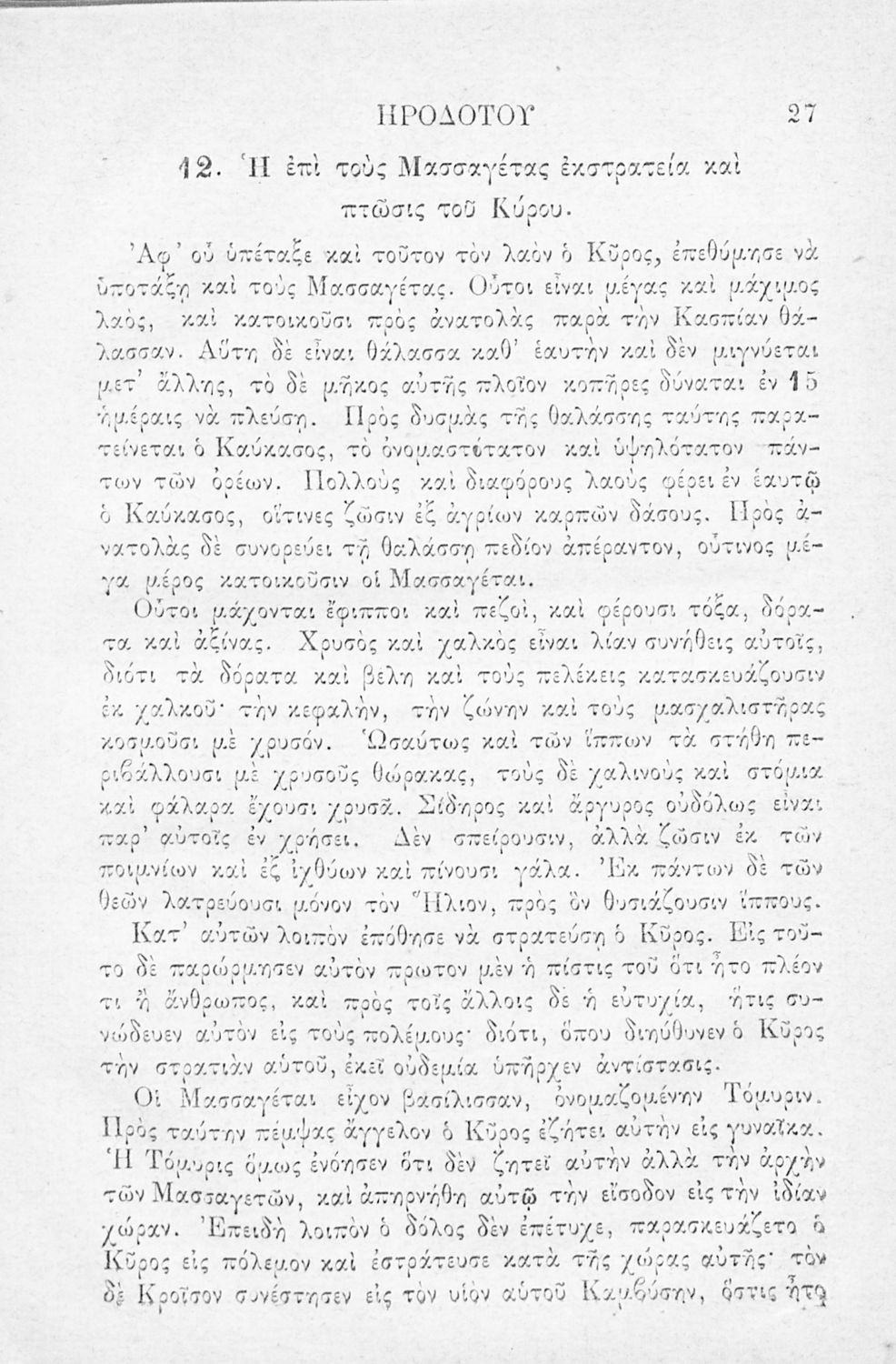 Βαθμίδα εκπαίδευσης: Πρωτοβάθμια Μάθημα: Νέα Ελληνικά Γλώσσα: Καθαρεύουσα Παρουσίαση περιεχομένου: Αναγνωστικό Δημοτικού που περιλαμβάνει διηγήματα εμπνευσμένα από την Ιστορία του Ηρόδοτου. |