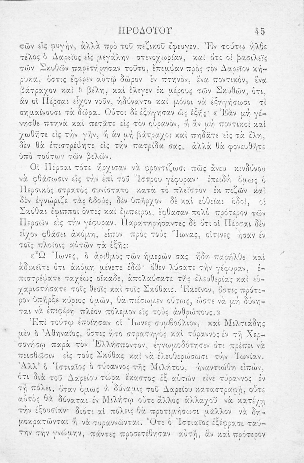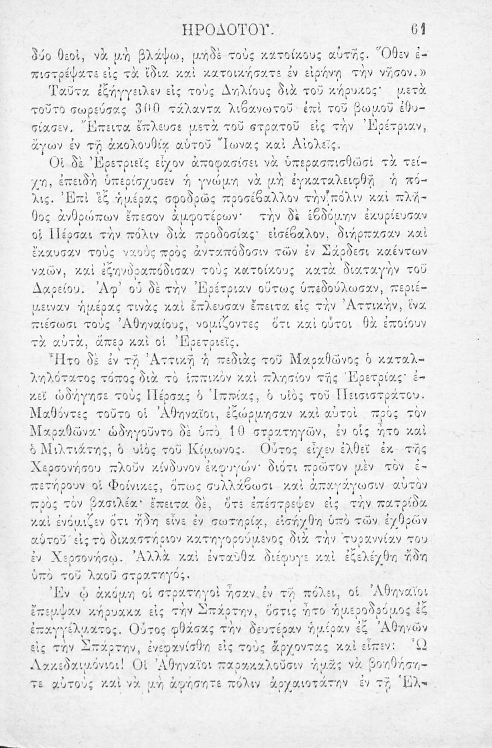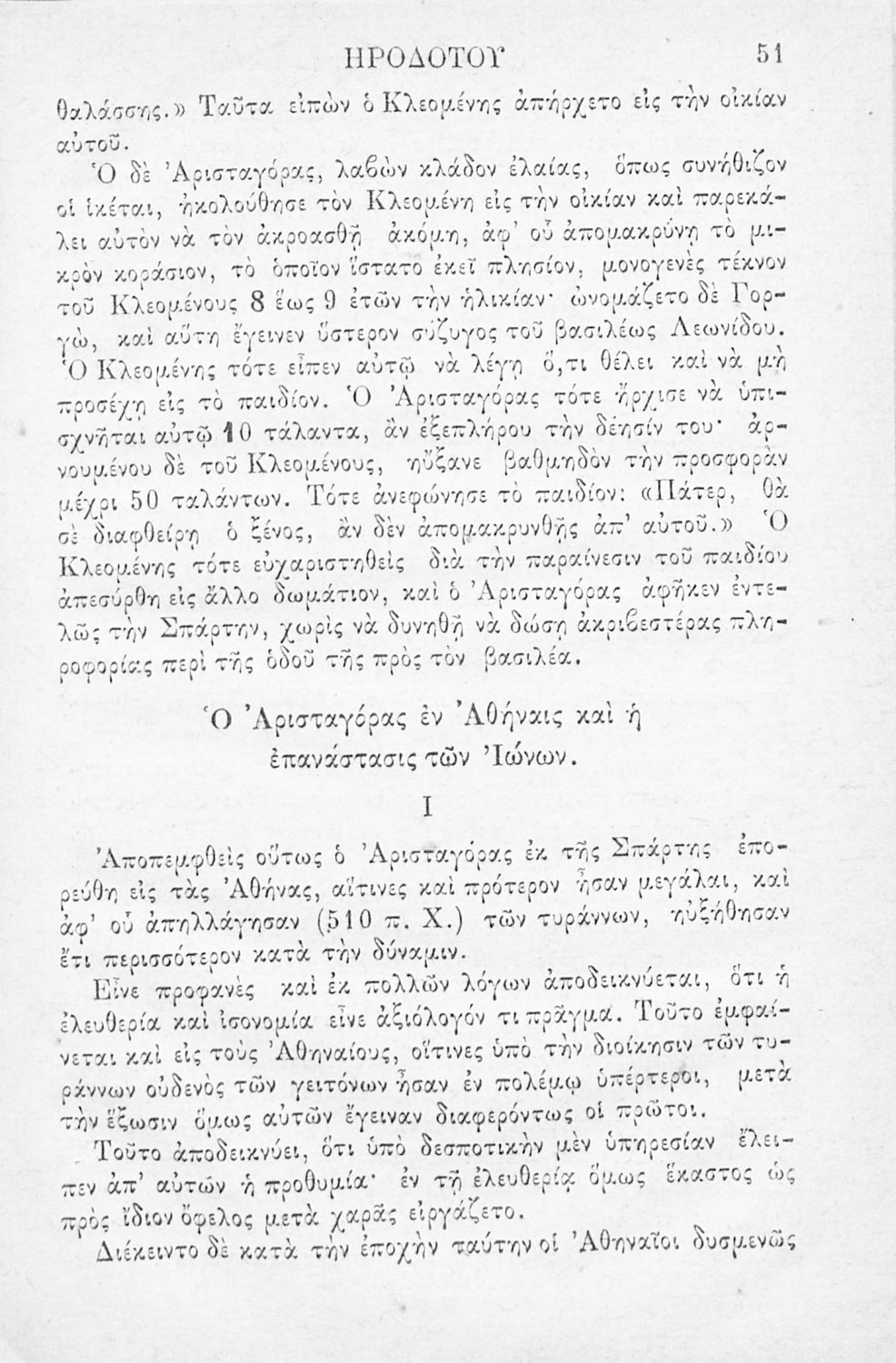 Σχολικό εγχειρίδιο Αρχαίων Ελληνικών για τους μαθητές των Γυμνασίων και Παρθεναγωγείων που περιέχει εισαγωγή στη ζωή και διάλεκτο του Ηρόδοτου, αποσπάσματα από το έργο του και ερμηνευτικές σημειώσεις.
