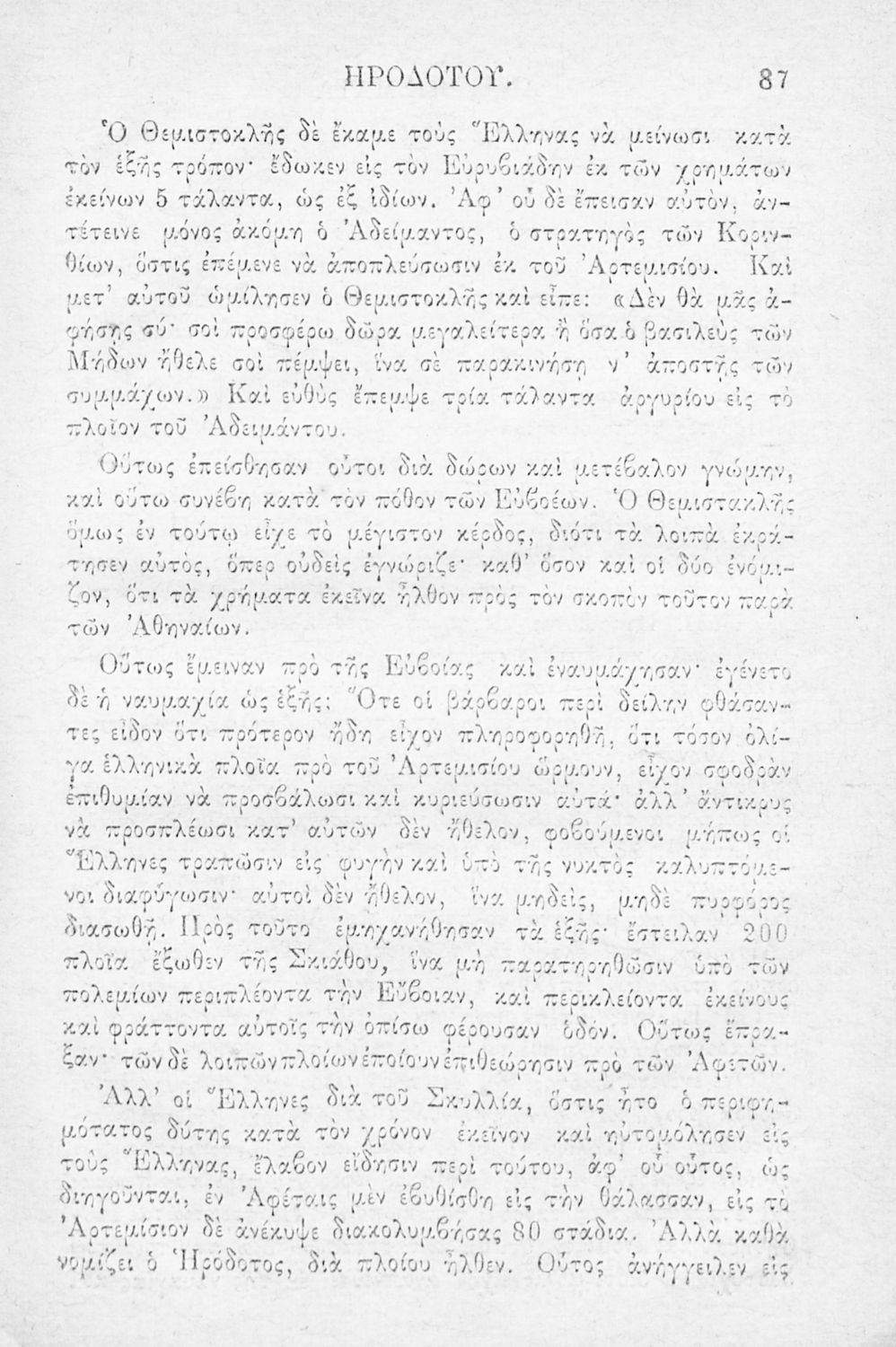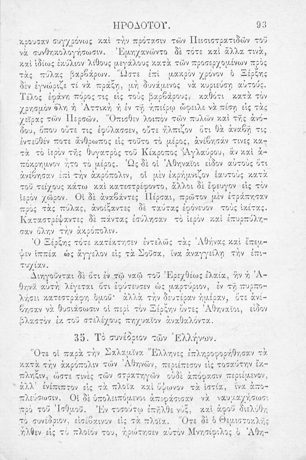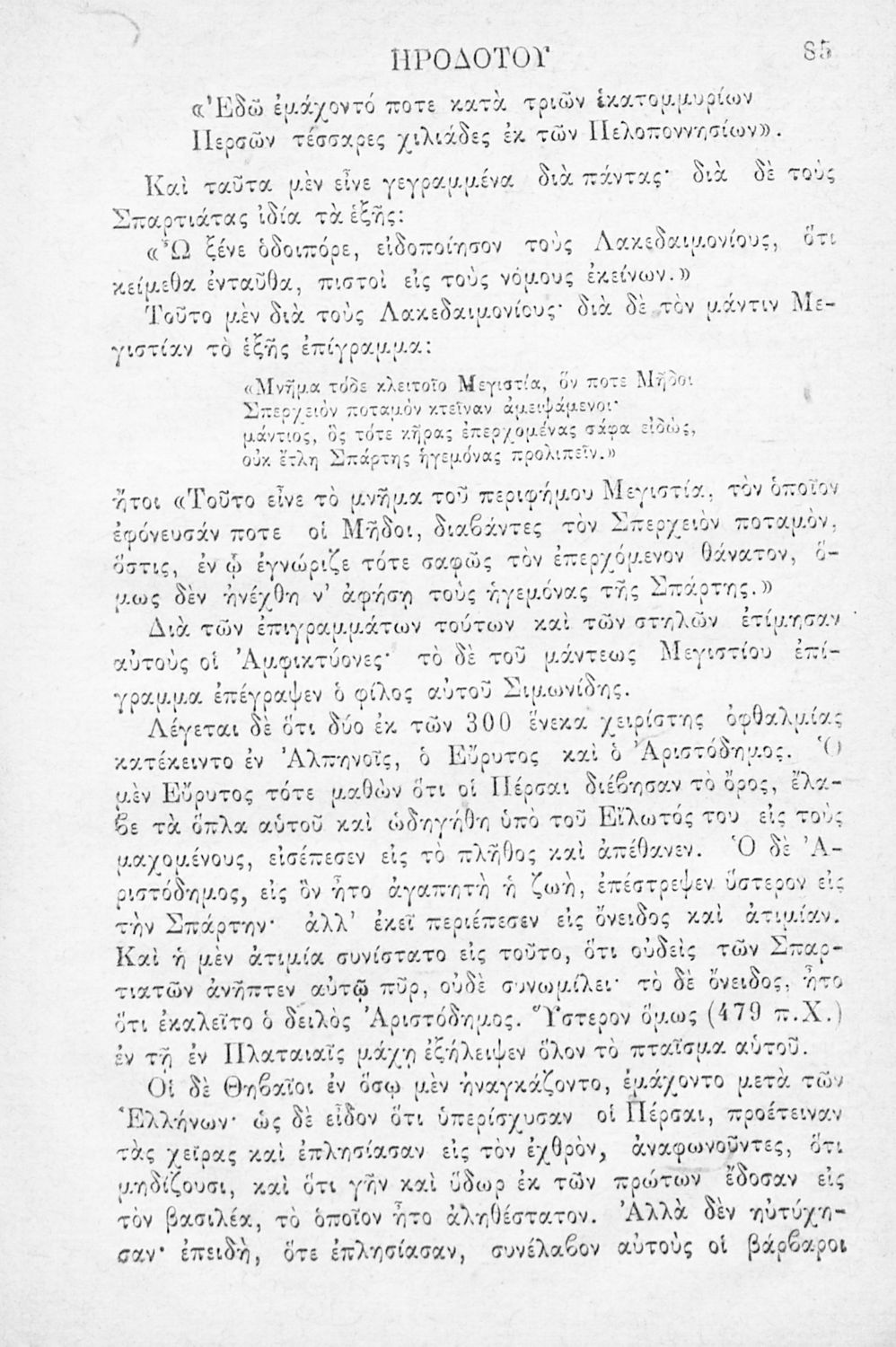 Βαθμίδα εκπαίδευσης: Πρωτοβάθμια Μάθημα: Νέα Ελληνικά Γλώσσα: Καθαρεύουσα Παρουσίαση περιεχομένου: Αναγνωστικό Δημοτικού που περιλαμβάνει διηγήματα εμπνευσμένα από την Ιστορία του Ηρόδοτου. |