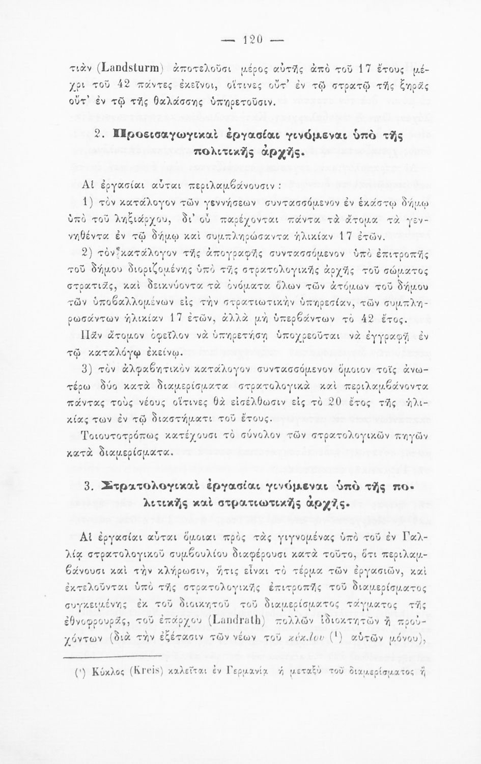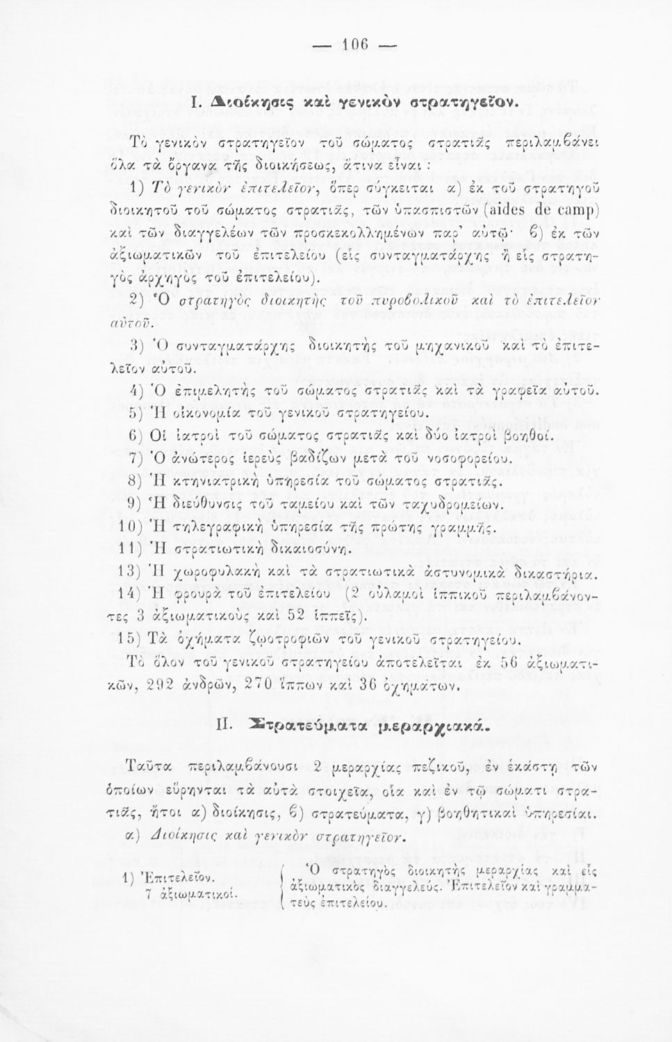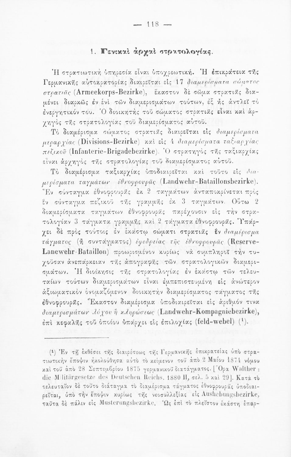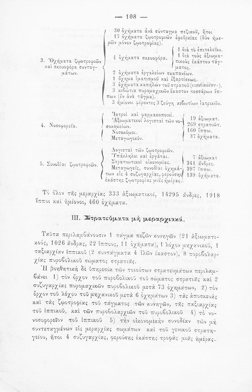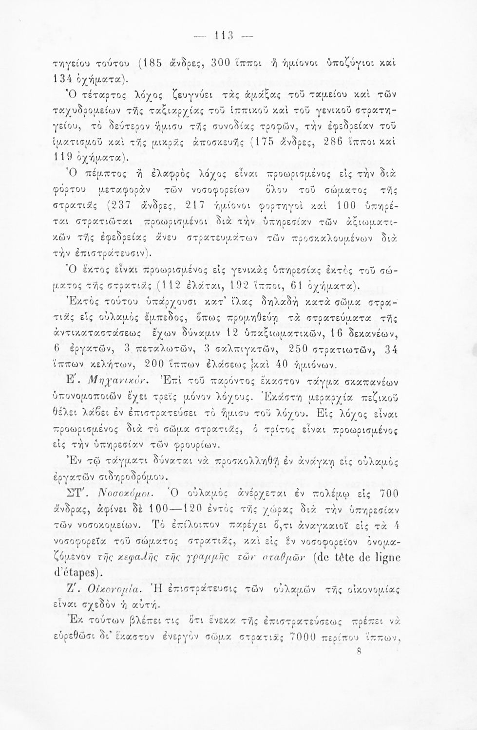 Παρουσίαση περιεχομένου: Εγχειρίδιο, μεταφρασμένο από τα Γαλλικά, που στόχο είχε τη διδασκαλία του στρατιωτικού συστήματος ορισμένων κρατών της Ευρώπης στη Στρατιωτική σχολή των Ευελπίδων. Στο βιβλίο παρουσιάζεται η δομή των στρατιωτικών οργανισμών και τα συστήματα στρατολόγησης των διαφόρων χωρών.