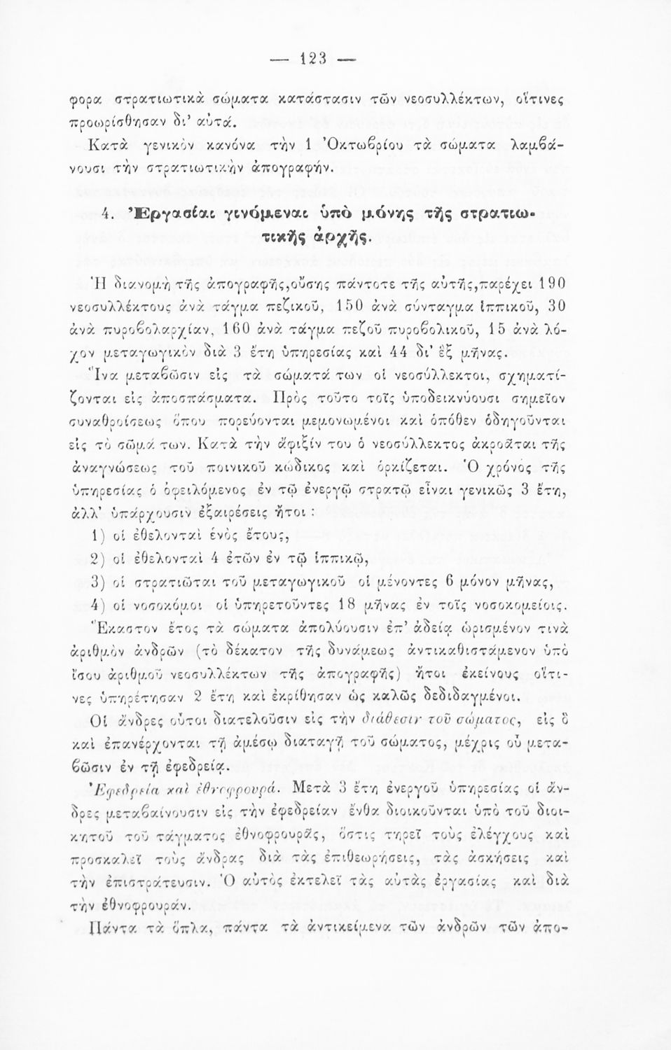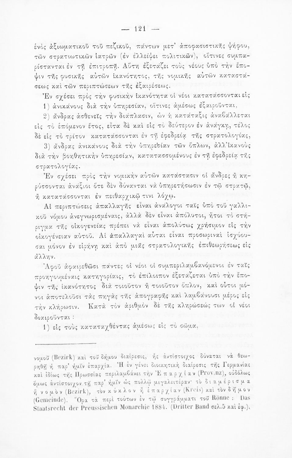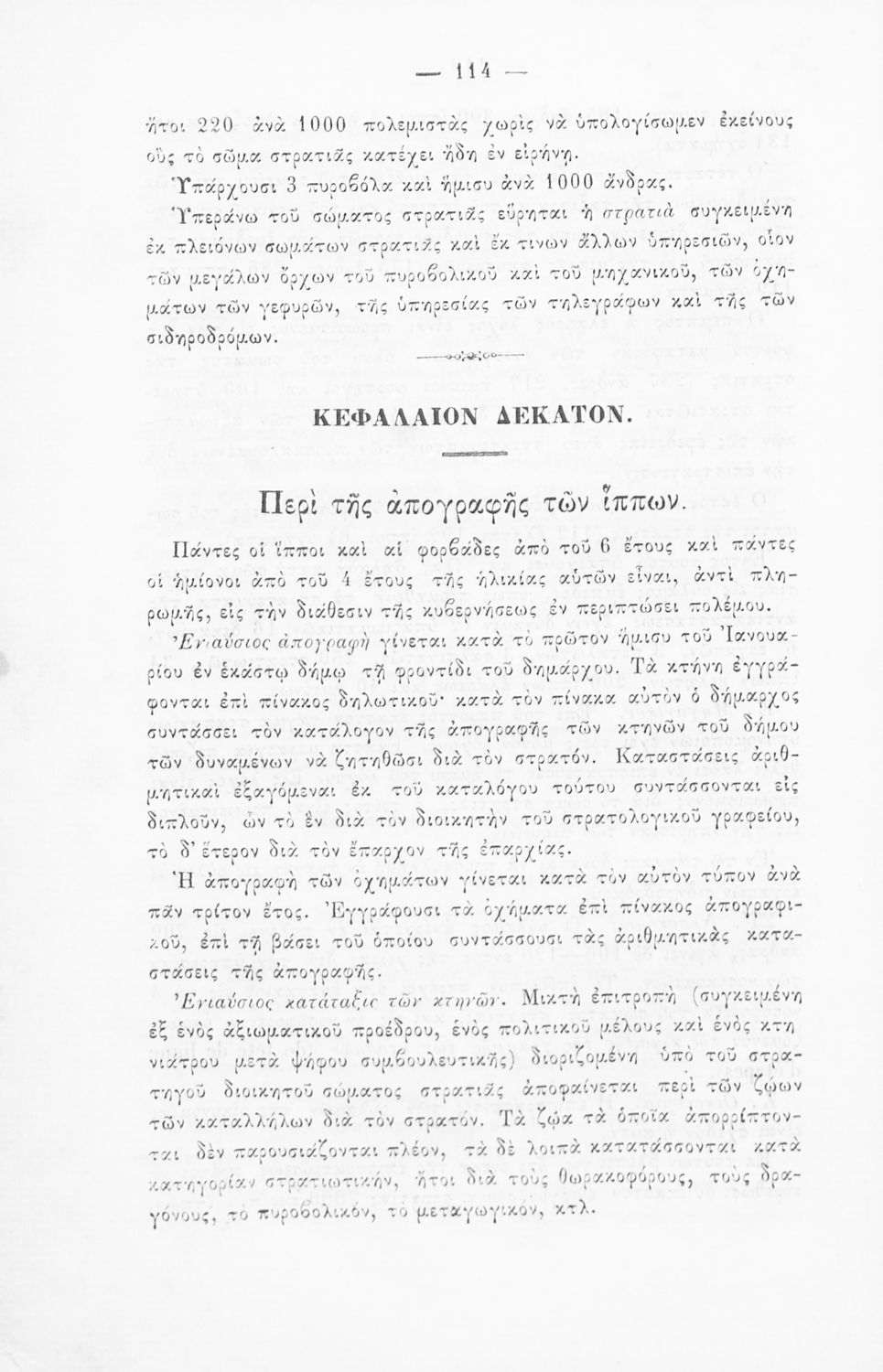 Εγχειρίδιο, μεταφρασμένο από τα Γαλλικά, που στόχο είχε τη διδασκαλία του στρατιωτικού συστήματος ορισμένων κρατών της Ευρώπης στη Στρατιωτική σχολή των Ευελπίδων. Στο βιβλίο παρουσιάζεται η δομή των στρατιωτικών οργανισμών και τα συστήματα στρατολόγησης των διαφόρων χωρών.