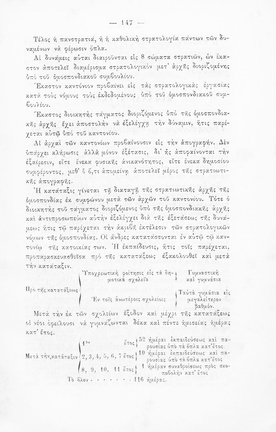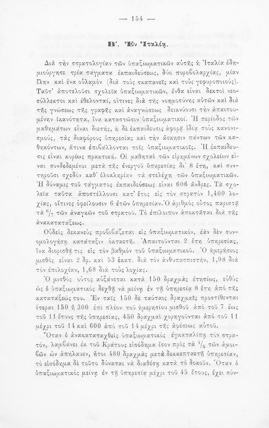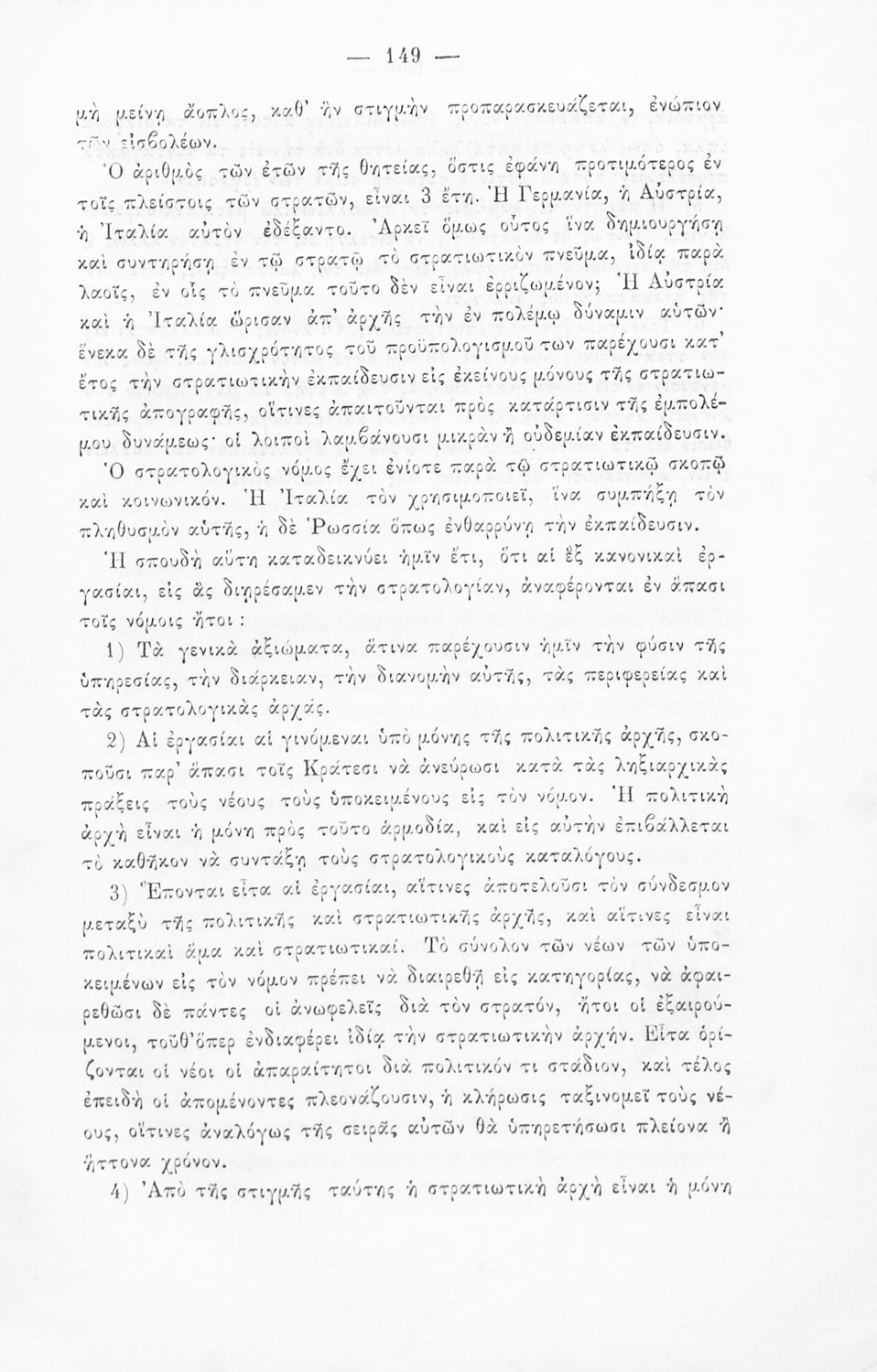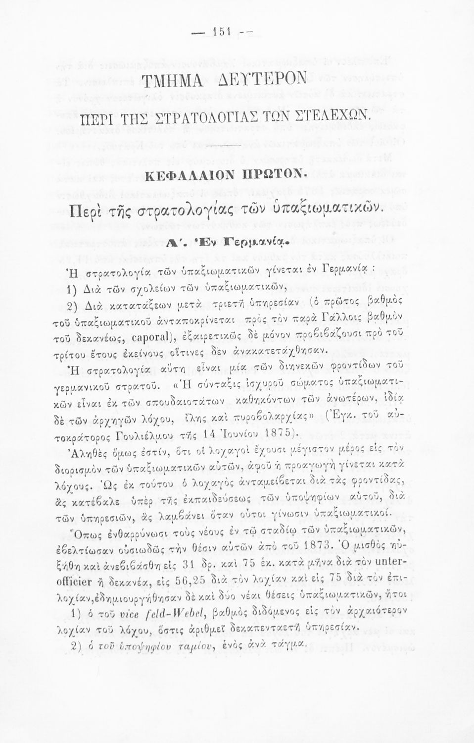 Παρουσίαση περιεχομένου: Εγχειρίδιο, μεταφρασμένο από τα Γαλλικά, που στόχο είχε τη διδασκαλία του στρατιωτικού συστήματος ορισμένων κρατών της Ευρώπης στη Στρατιωτική σχολή των Ευελπίδων. Στο βιβλίο παρουσιάζεται η δομή των στρατιωτικών οργανισμών και τα συστήματα στρατολόγησης των διαφόρων χωρών.