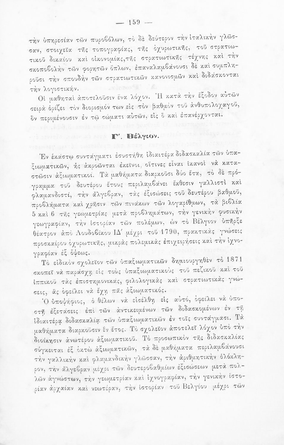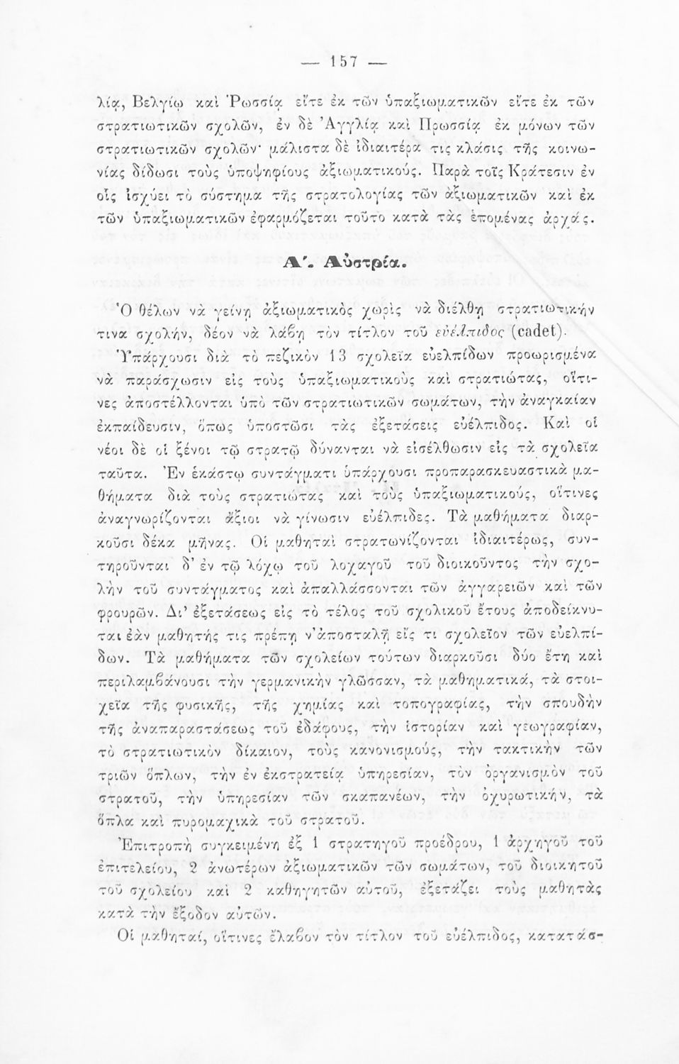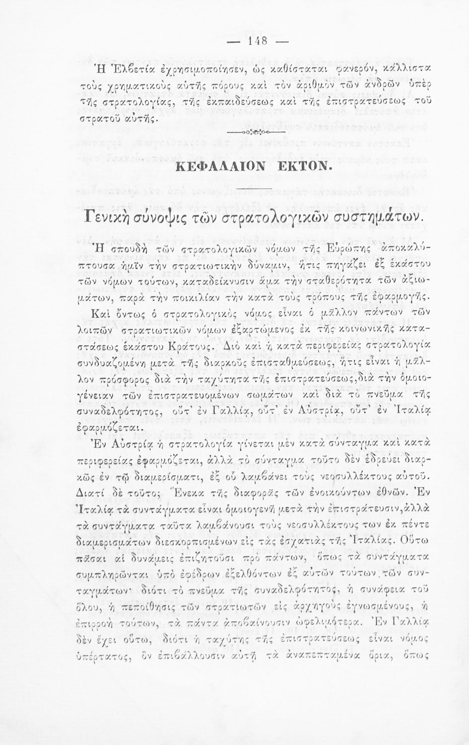 Εγχειρίδιο, μεταφρασμένο από τα Γαλλικά, που στόχο είχε τη διδασκαλία του στρατιωτικού συστήματος ορισμένων κρατών της Ευρώπης στη Στρατιωτική σχολή των Ευελπίδων. Στο βιβλίο παρουσιάζεται η δομή των στρατιωτικών οργανισμών και τα συστήματα στρατολόγησης των διαφόρων χωρών.