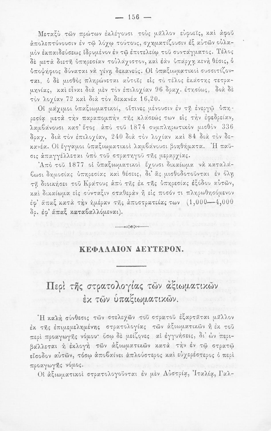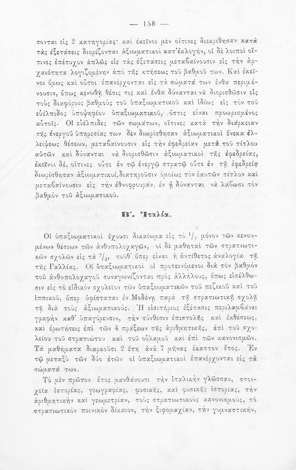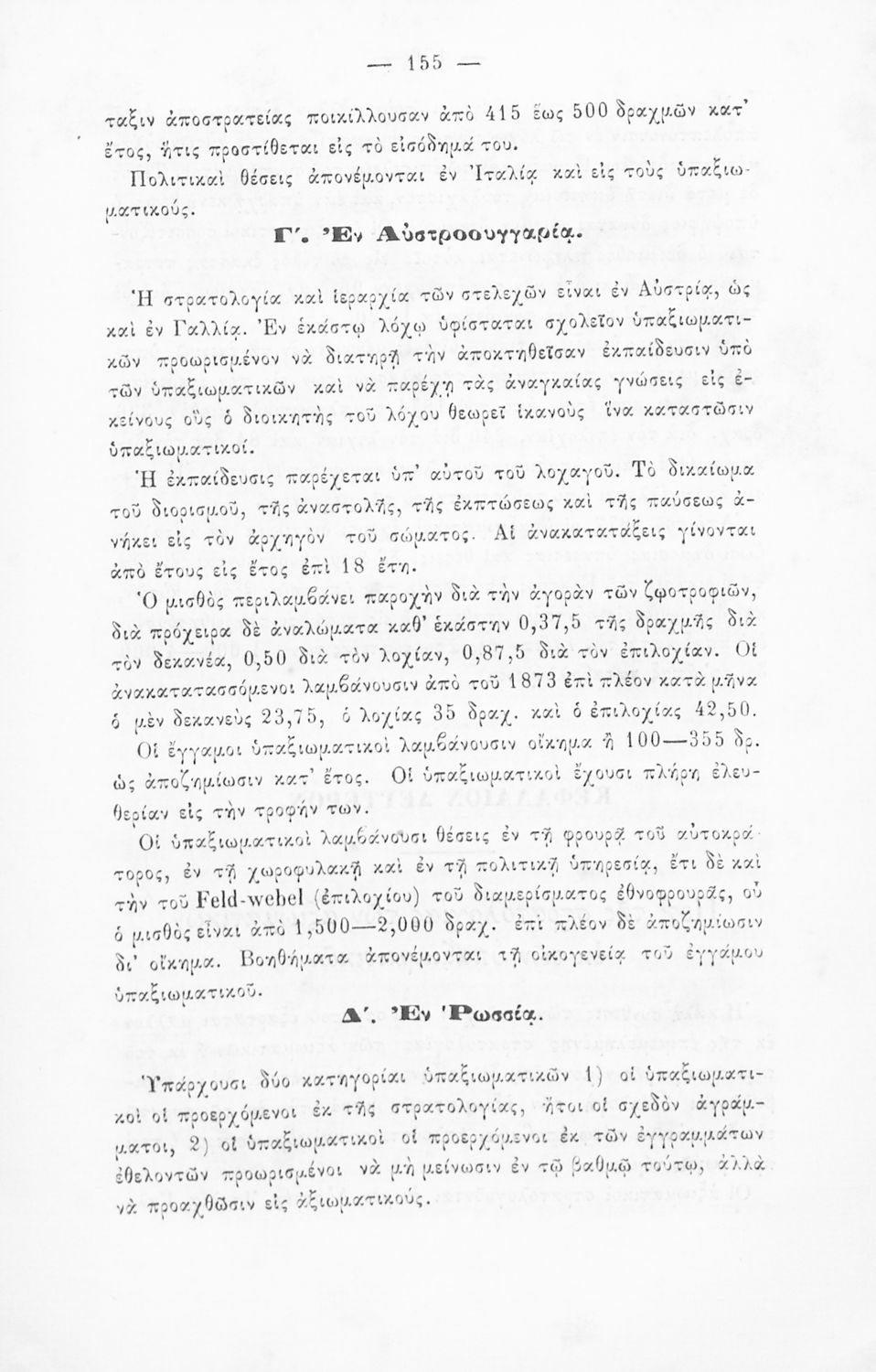 Εγχειρίδιο, μεταφρασμένο από τα Γαλλικά, που στόχο είχε τη διδασκαλία του στρατιωτικού συστήματος ορισμένων κρατών της Ευρώπης στη Στρατιωτική σχολή των Ευελπίδων. Στο βιβλίο παρουσιάζεται η δομή των στρατιωτικών οργανισμών και τα συστήματα στρατολόγησης των διαφόρων χωρών.