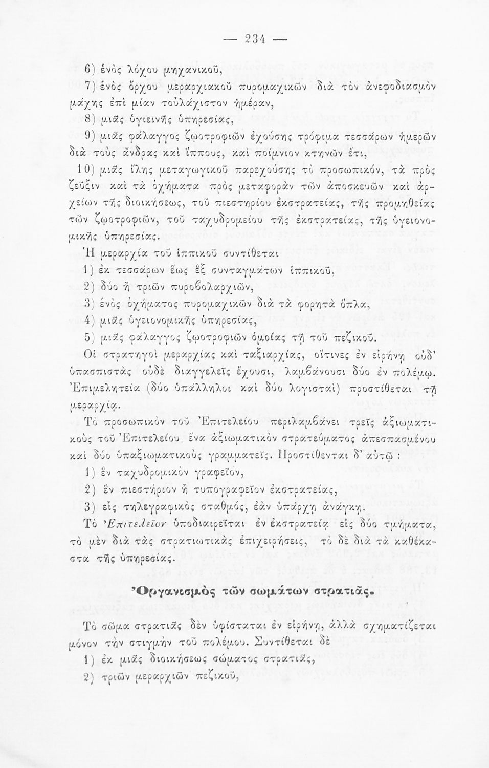 Εγχειρίδιο, μεταφρασμένο από τα Γαλλικά, που στόχο είχε τη διδασκαλία του στρατιωτικού συστήματος ορισμένων κρατών της Ευρώπης στη Στρατιωτική σχολή των Ευελπίδων. Στο βιβλίο παρουσιάζεται η δομή των στρατιωτικών οργανισμών και τα συστήματα στρατολόγησης των διαφόρων χωρών.