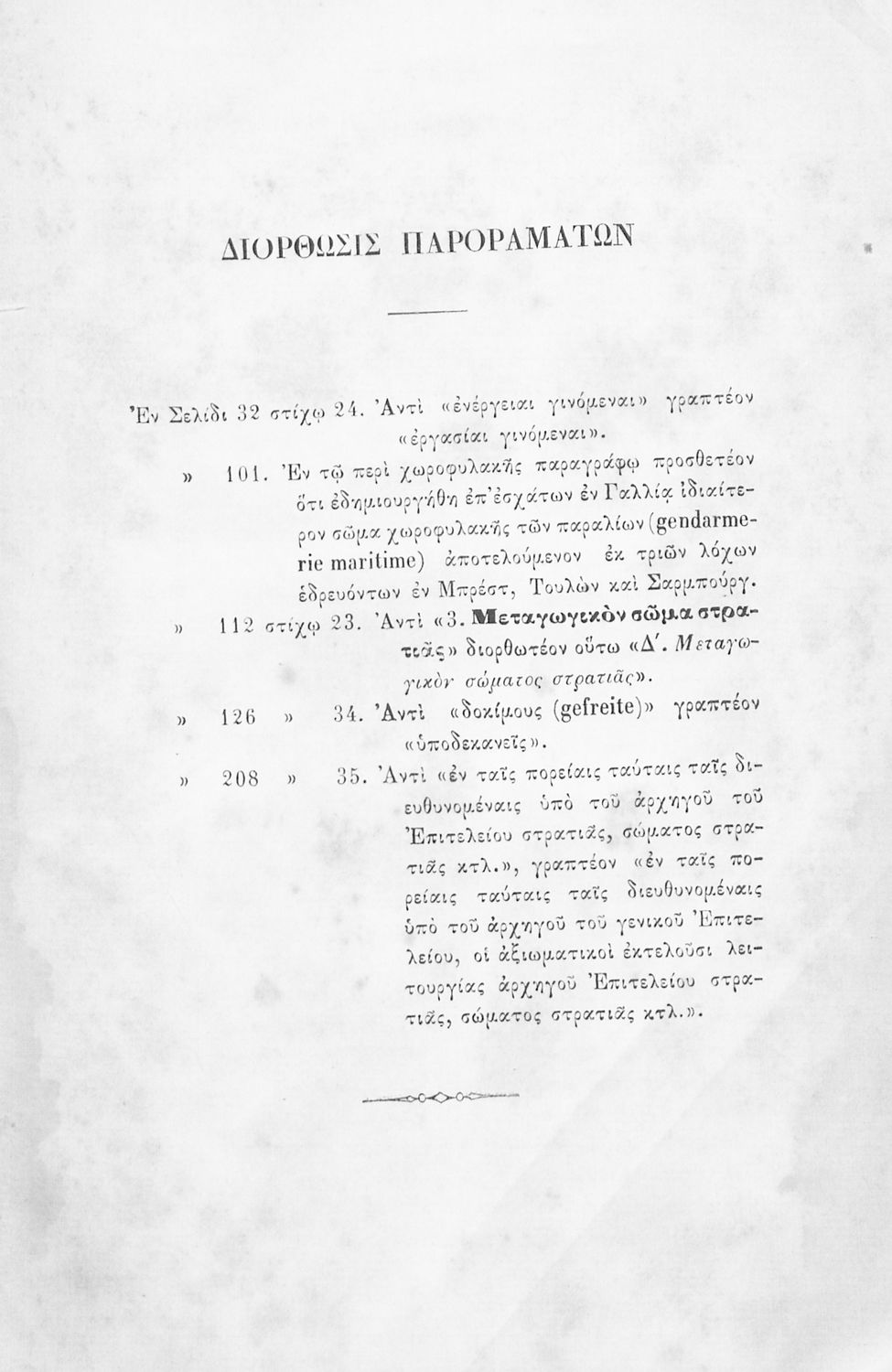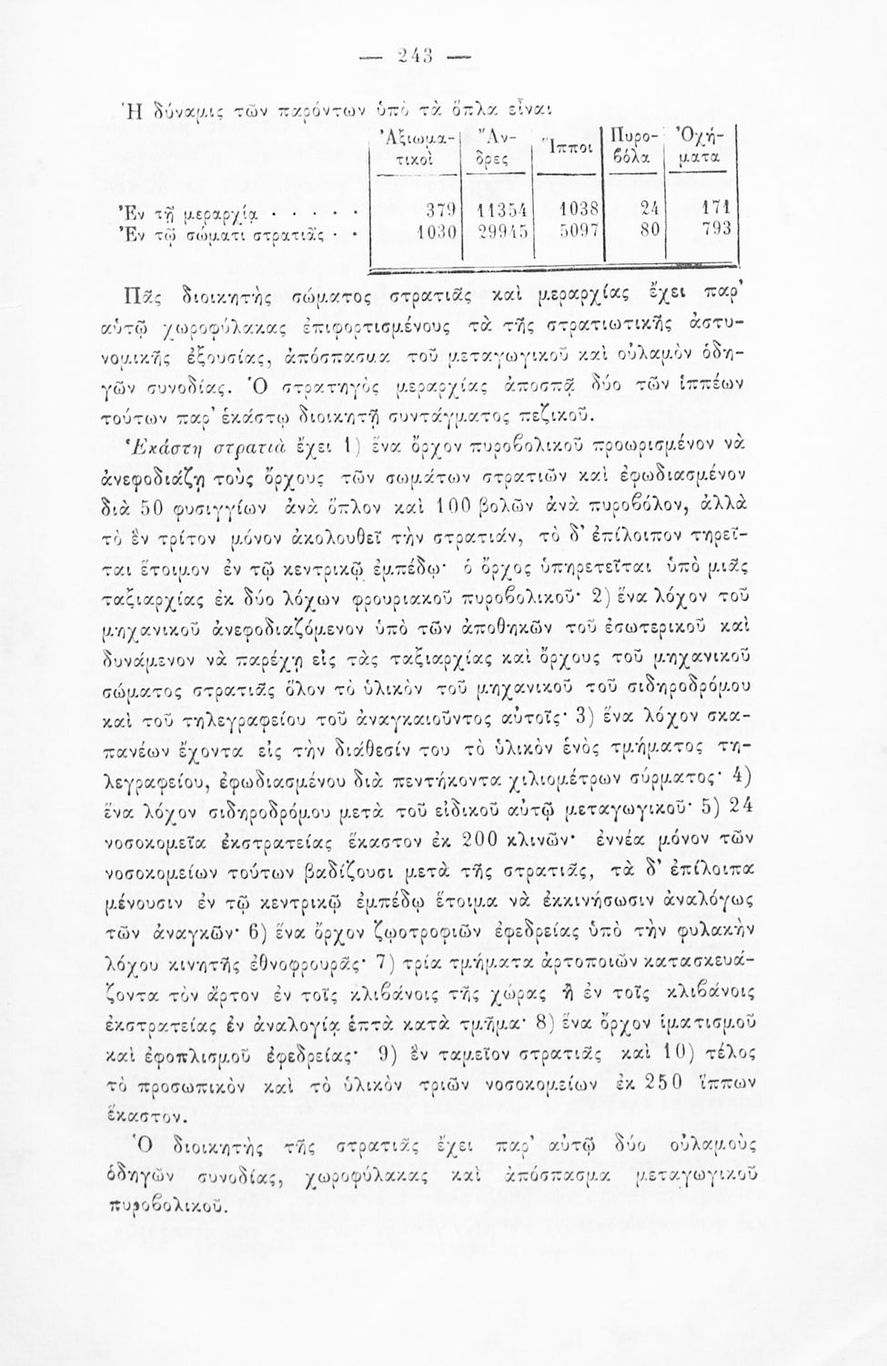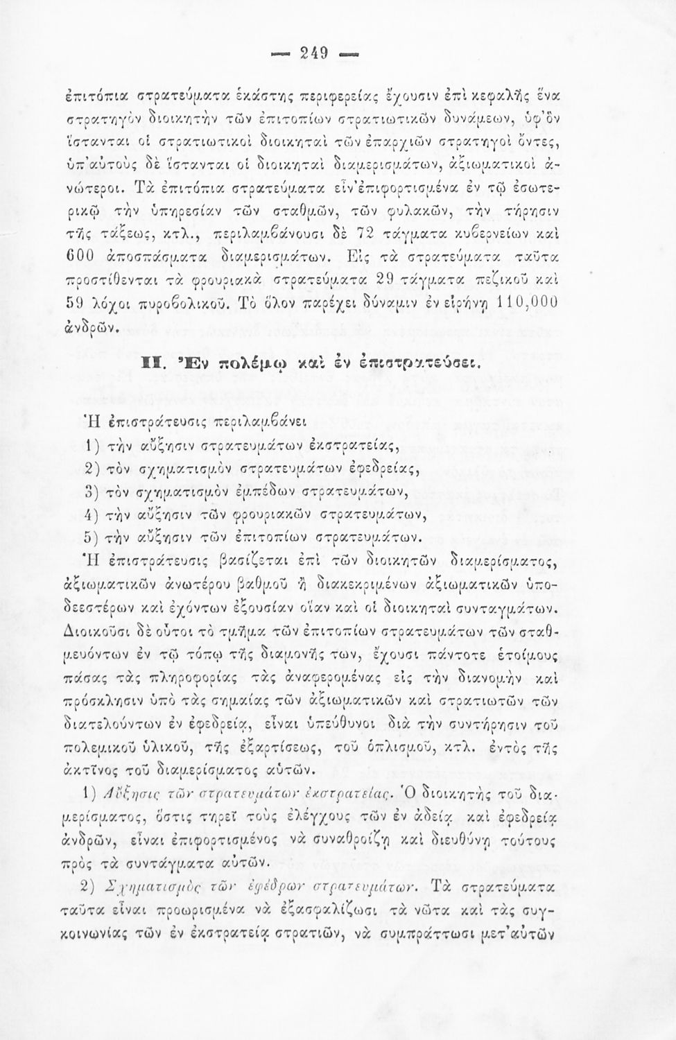 Παρουσίαση περιεχομένου: Εγχειρίδιο, μεταφρασμένο από τα Γαλλικά, που στόχο είχε τη διδασκαλία του στρατιωτικού συστήματος ορισμένων κρατών της Ευρώπης στη Στρατιωτική σχολή των Ευελπίδων. Στο βιβλίο παρουσιάζεται η δομή των στρατιωτικών οργανισμών και τα συστήματα στρατολόγησης των διαφόρων χωρών.