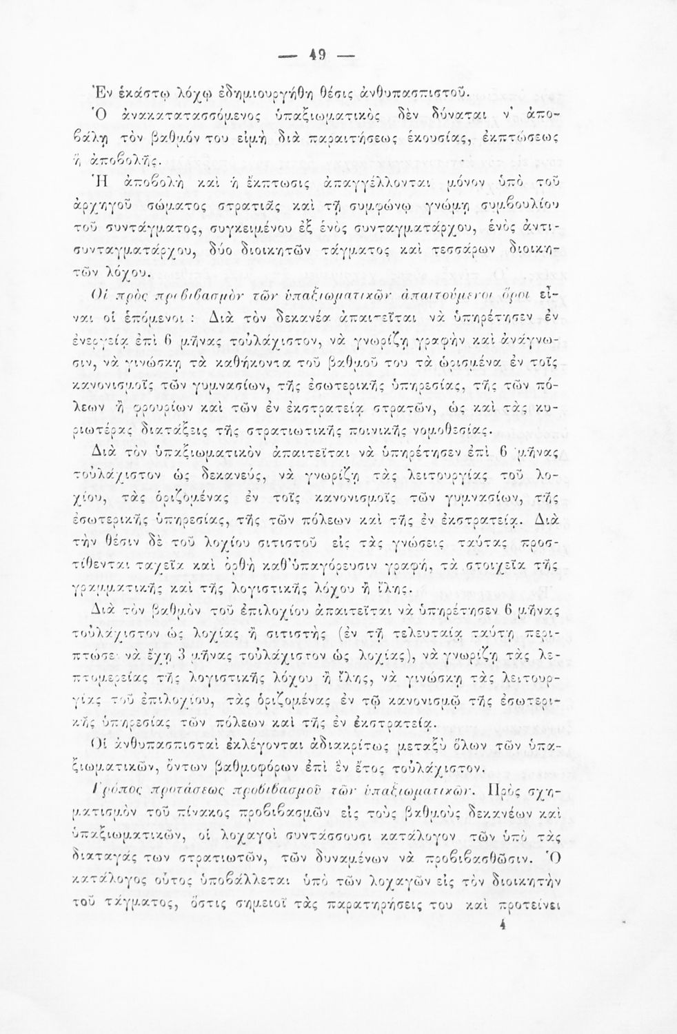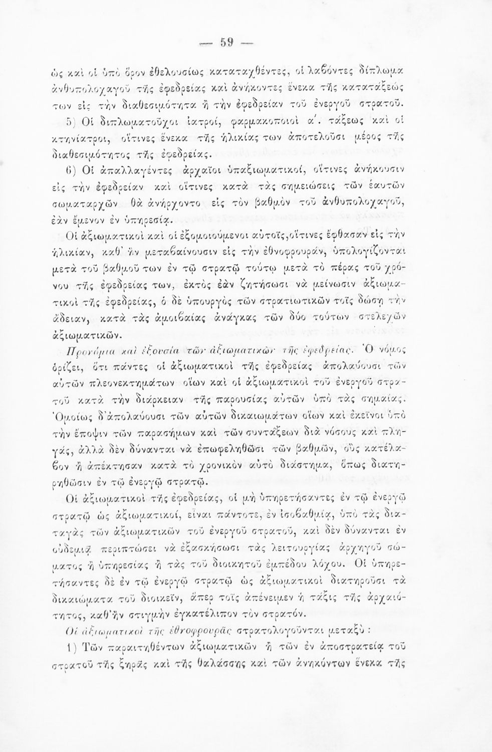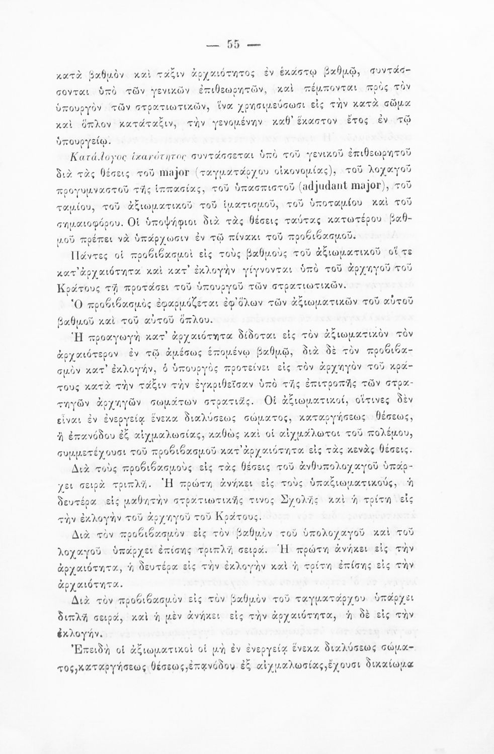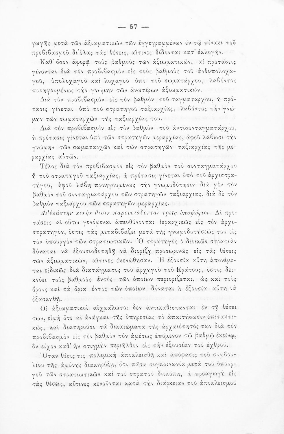 Παρουσίαση περιεχομένου: Εγχειρίδιο, μεταφρασμένο από τα Γαλλικά, που στόχο είχε τη διδασκαλία του στρατιωτικού συστήματος ορισμένων κρατών της Ευρώπης στη Στρατιωτική σχολή των Ευελπίδων. Στο βιβλίο παρουσιάζεται η δομή των στρατιωτικών οργανισμών και τα συστήματα στρατολόγησης των διαφόρων χωρών.