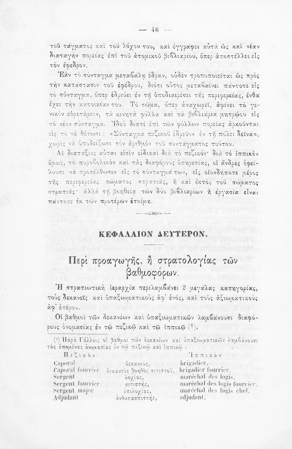 Εγχειρίδιο, μεταφρασμένο από τα Γαλλικά, που στόχο είχε τη διδασκαλία του στρατιωτικού συστήματος ορισμένων κρατών της Ευρώπης στη Στρατιωτική σχολή των Ευελπίδων. Στο βιβλίο παρουσιάζεται η δομή των στρατιωτικών οργανισμών και τα συστήματα στρατολόγησης των διαφόρων χωρών.