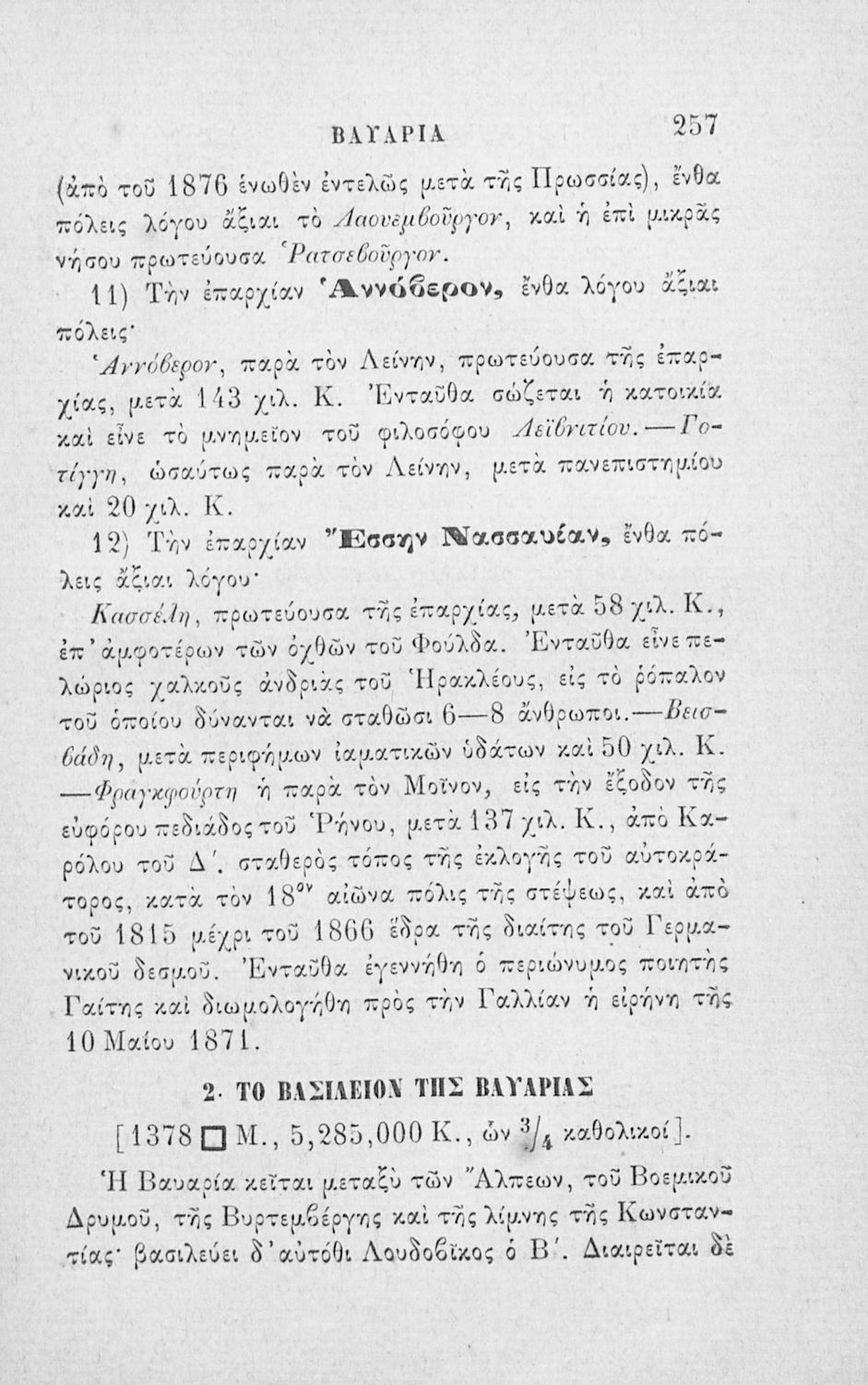 Εγχειρίδιον της συγχρόνου γεωγραφίας περιλαμβάνον εκ της παλαιάς την της ελλ. και ιταλ. Χερσονήσου της Μικράς Ασίας, Ασσυρίας, Βαβυλωνίας, Μηδίας, Περσίας, Αιγύπτου και Κυρήνης μετ' αλφαβητικού πίνακος προς χρήσιν των Γυμνασίων