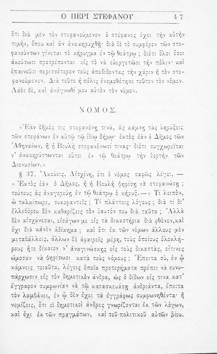 Τίτλος: Δημοσθένους Ο περί στεφάνου λόγος μεταφρασθείς εις την καθωμιλημένην προς χρήσιν των Γυμνασίων