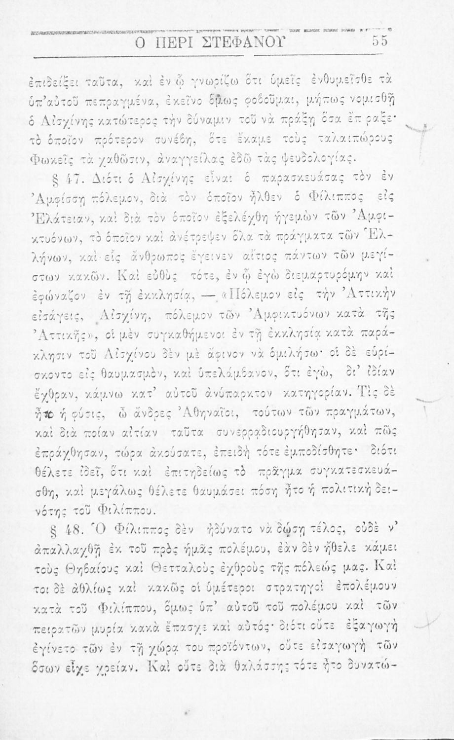 Μαθητικό βοήθημα Αρχαίων Ελληνικών Γυμνασίου που περιλαμβάνει μετάφραση του Λόγου του Δημοσθένη Περί Στεφάνου.