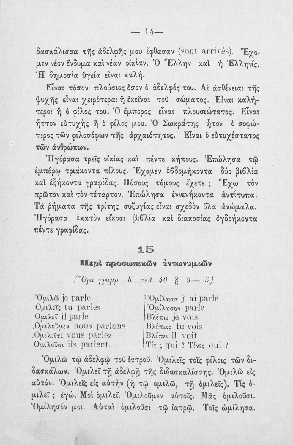 LDR 01113 2200205 4500 035 ## _a02-02549 040 ## _aΕλληνικό Λογοτεχνικό και Ιστορικό Αρχείο 041 ## _ael 100 ## _aΓουσταύος Εμάρ 110 ## _a1884.859 245 0# _aΣυλλογή θεμάτων προς εφαρμογήν των κανόνων της γαλλικής γραμματικής Ιω. Καρασούσα, διά την Α΄ και Β΄ τάξιν του Γυμνασίου 260 ## _aΑθήνα _bΘ. Παπαλεξανδρής, Ι. Βαρβαρρήγος _c1884 300 ## _a40 520 ## _aΜαθητικό βοήθημα Γαλλικών της Α΄ και Β΄ Γυμνασίου το οποίο παρουσιάζει τους βασικότερους κανόνες γραμματικής και χρήσης των λέξεων. 521 ## _aΑ' Γυμνασίου / Β' Γυμνασίου 522 ## _aΕλλάδα 546 ## _aΓαλλικά 563 ## _aΜαλακό Εξώφυλλο 583 ## _c1884 650 #4 _aΆρθρον _aΓαλλικά _aΓραμματική _aΡήματα