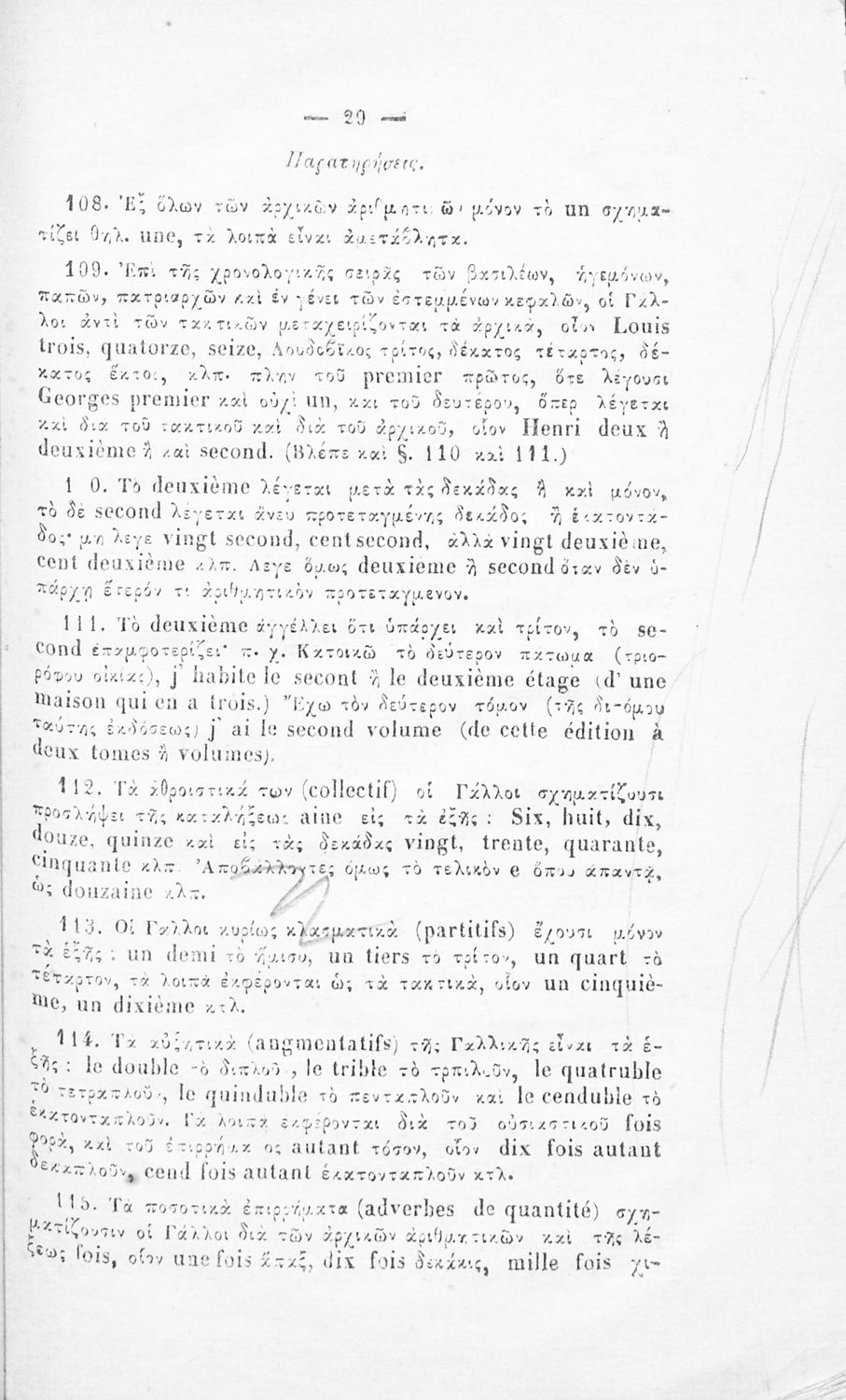 Γραμματική της Γαλλικής γλώσσας για τα Ελληνικά Σχολεία και Παρθεναγωγεία που αναλύει τα μέρη του λόγου και περιέχει παραδείγματα και ασκήσεις.