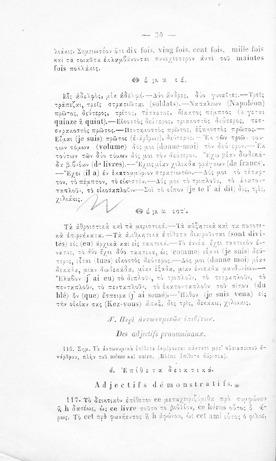 Σχολικό εγχειρίδιο για τα Ελληνικά Σχολεία και Παρθεναγωγεία περιλαμβάνει τους βασικούς κανόνες γραμματικής της γαλλικής γλώσσας.