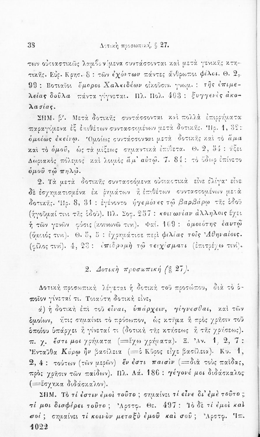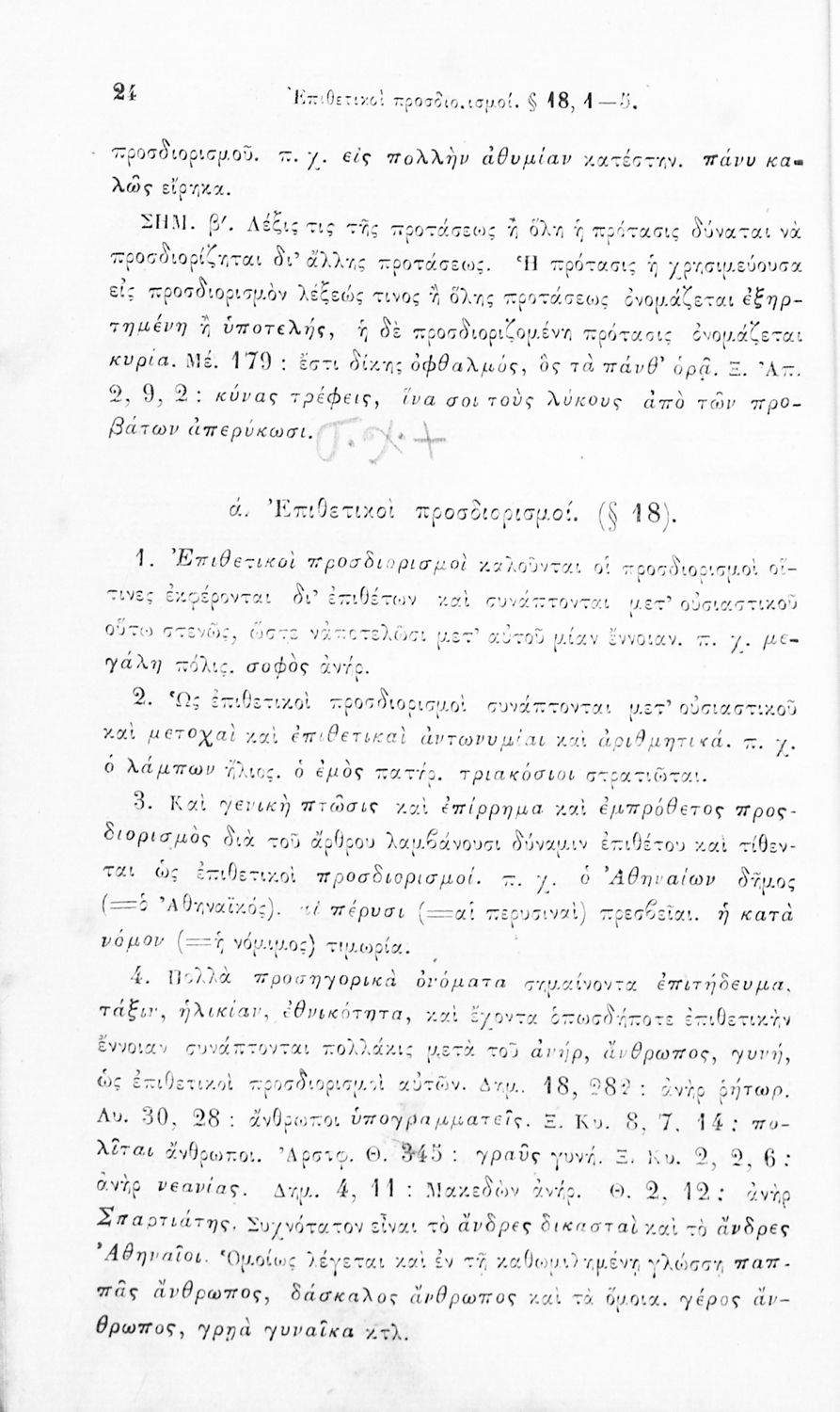 Σχολικό εγχειρίδιο Αρχαίων Ελληνικών για τα Ελληνικά Σχολεία, Παρθεναγωγεία και Γυμνάσια που περιέχει τους κανόνες γραμματικής και είναι χωρισμένο σε φθογγολογικό, τυπολογικό και ετυμολογικό μέρος.