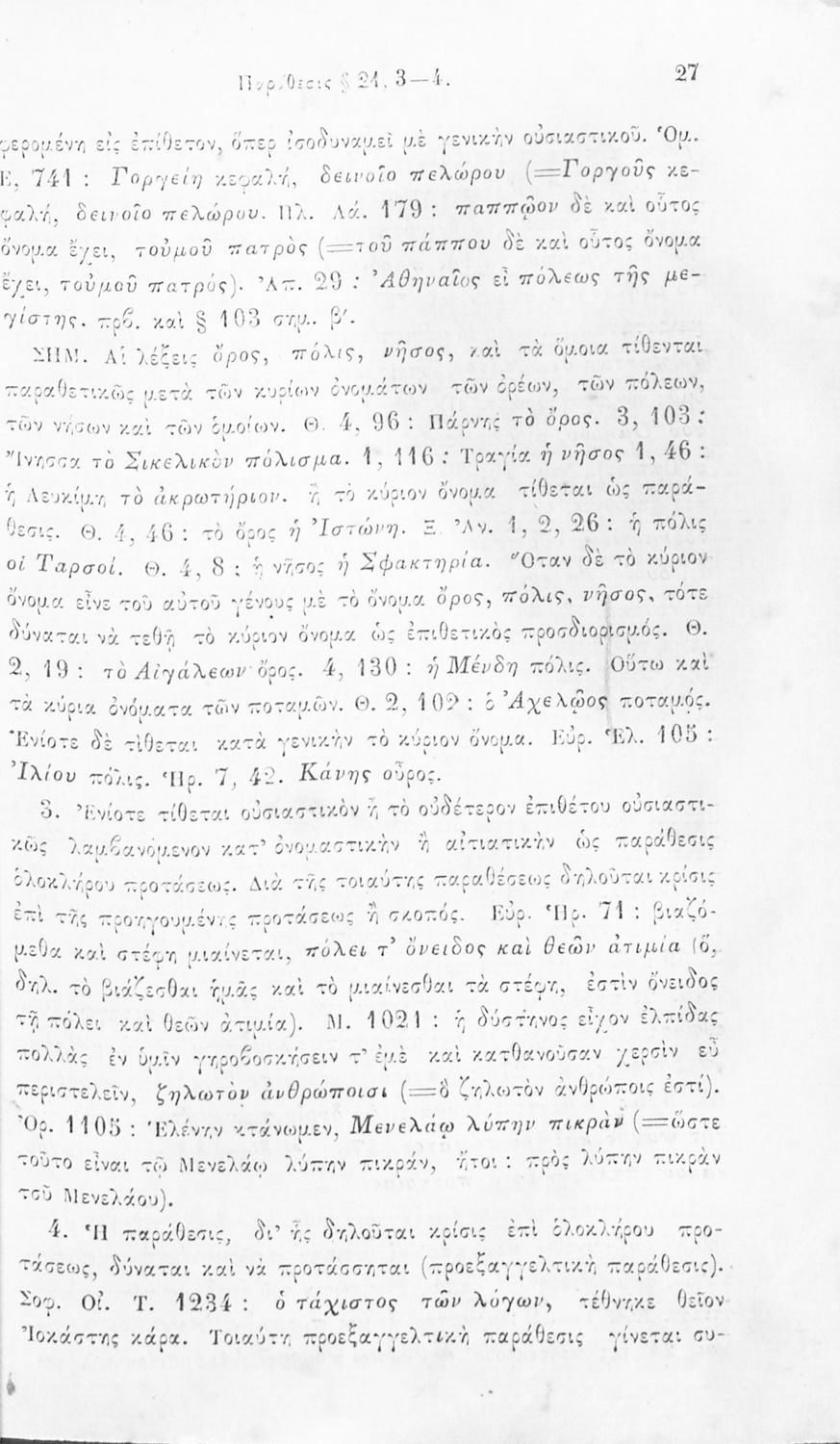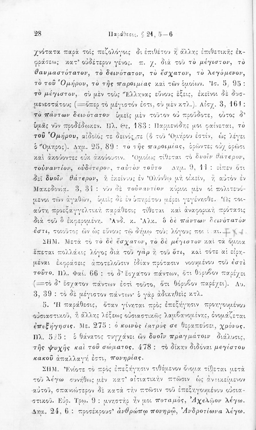 Σχολικό εγχειρίδιο Αρχαίων Ελληνικών για τα Ελληνικά Σχολεία και τα Ανώτερα Παρθεναγωγεία που εξετάζει τα μέρη του λόγου και την σύνταξή τους.