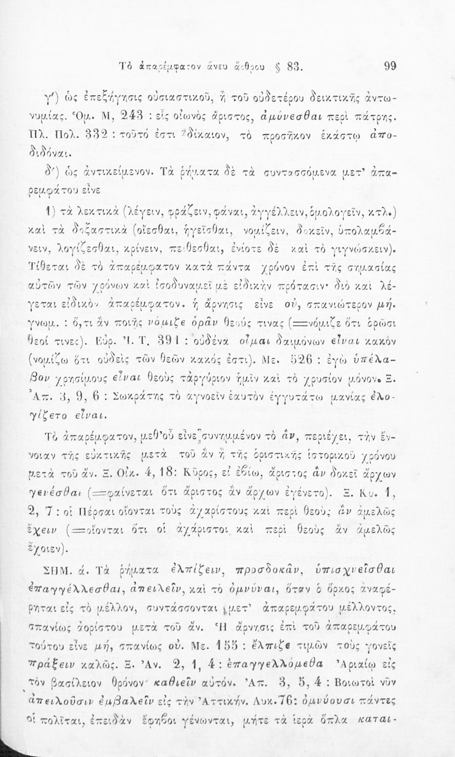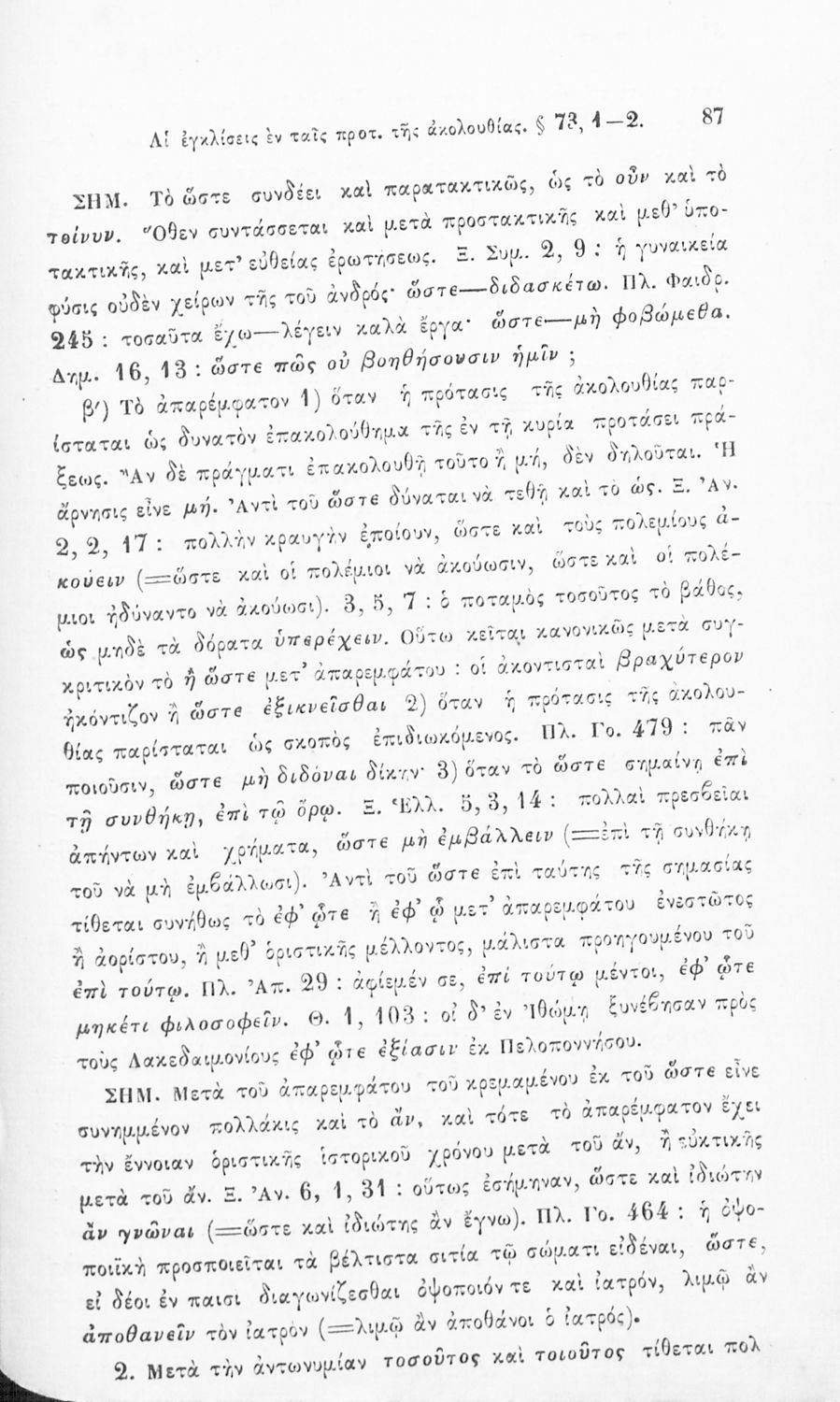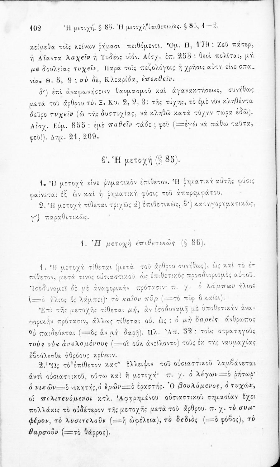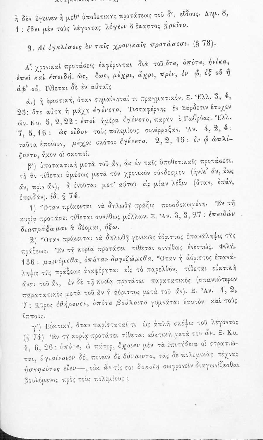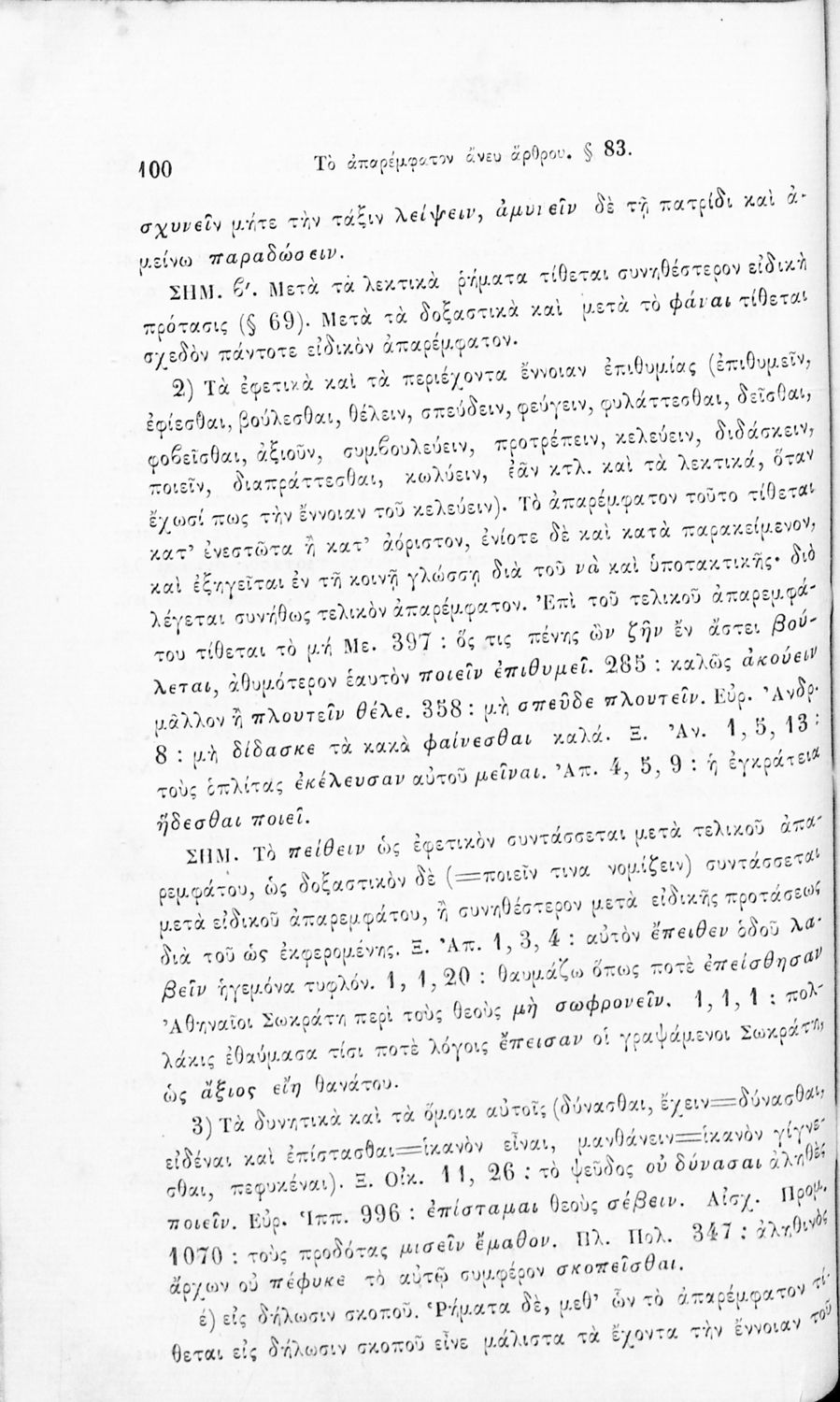 Σχολικό εγχειρίδιο Αρχαίων Ελληνικών για τα Ελληνικά Σχολεία και τα Ανώτερα Παρθεναγωγεία που εξετάζει τα μέρη του λόγου και την σύνταξή τους.