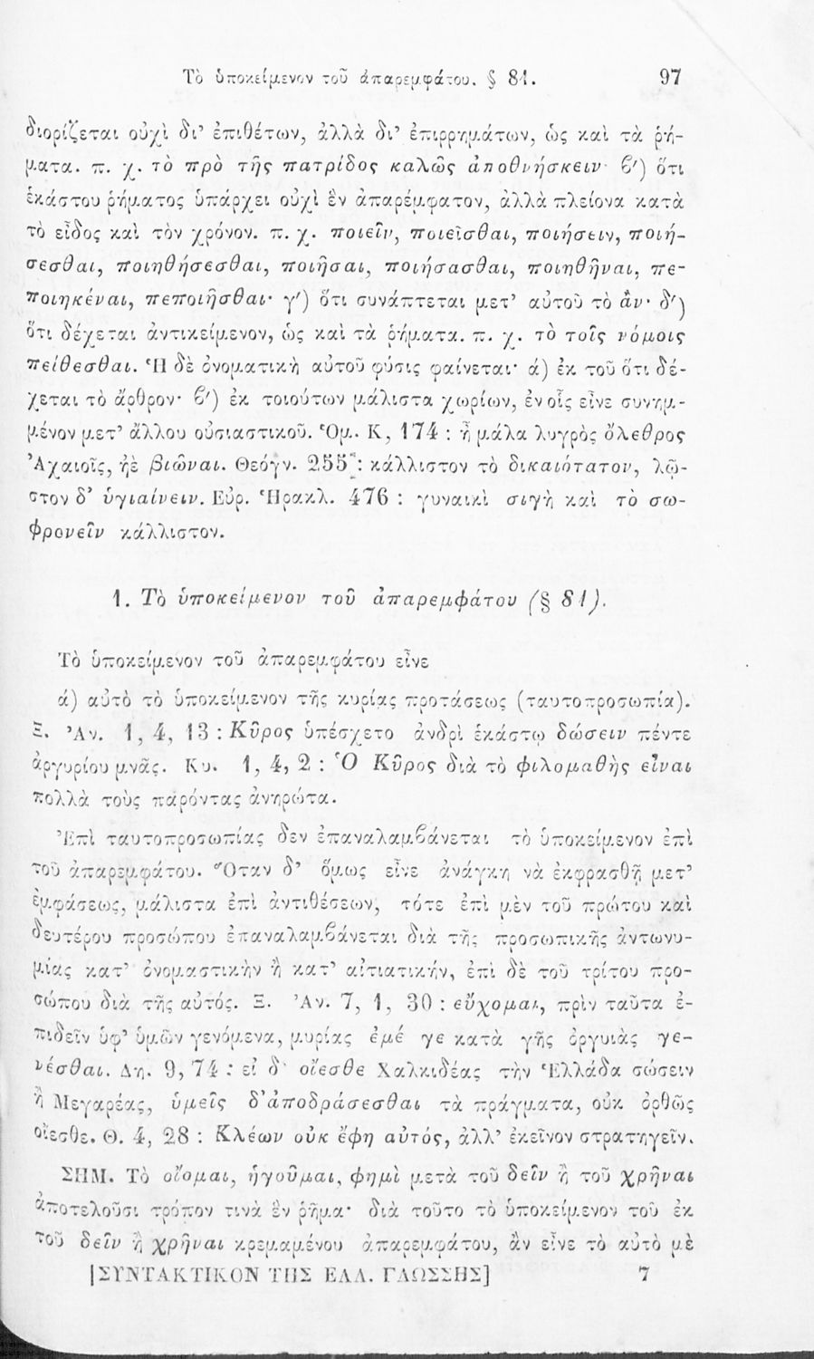 Συντακτικόν της ελληνικής γλώσσης μάλιστα της αττικής διαλέκτου : προς χρήσιν των Γυμνασίων