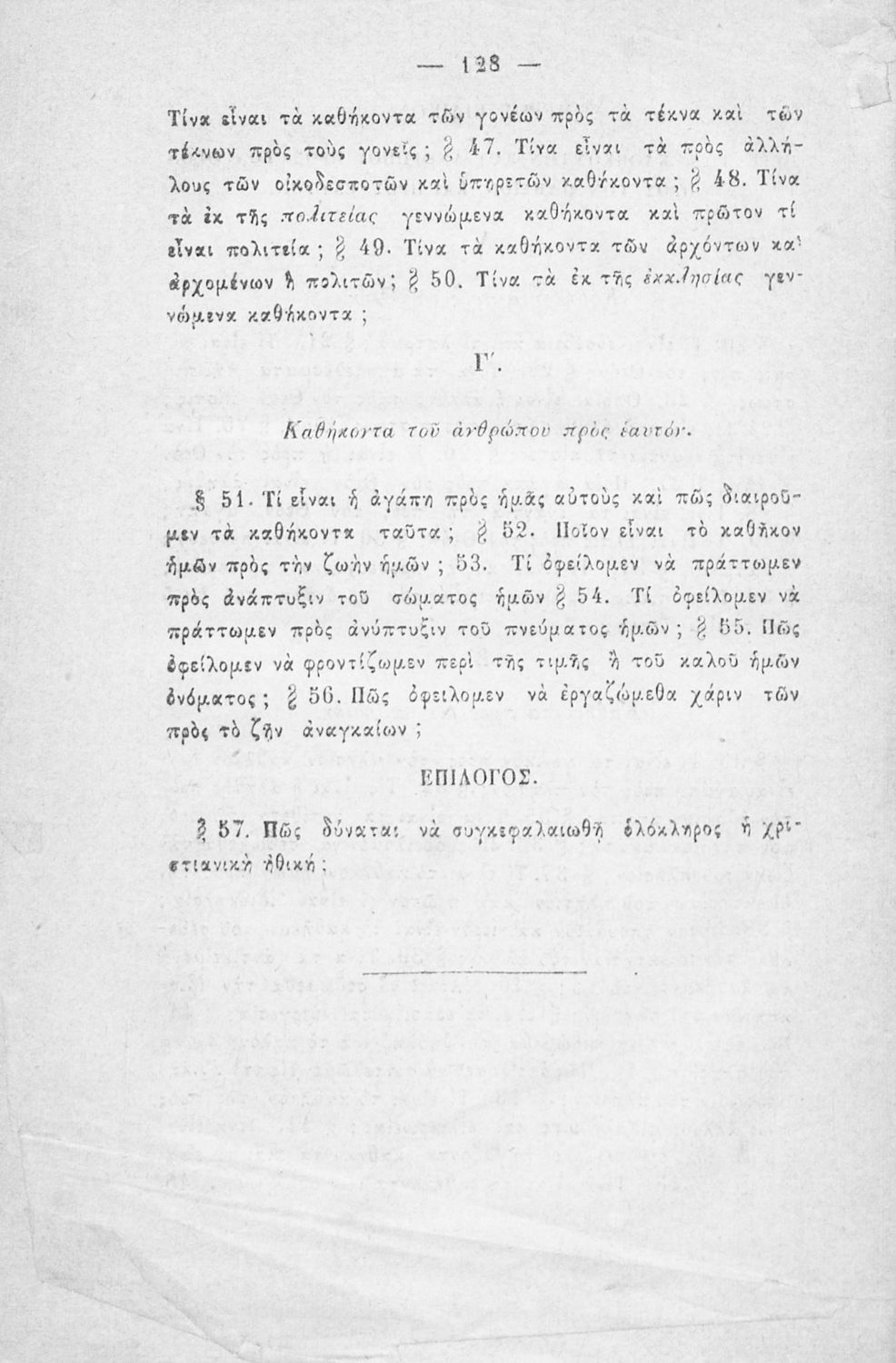 Σχολικό εγχειρίδιο Θρησκευτικών για τα Γυμνάσια και τα Διδασκαλεία που εστιάζει στη χριστιανική ηθική και αναλύει τα καθήκοντα του ανθρώπου προς τον Θεό, τους άλλους ανθρώπους και τον εαυτό του.
