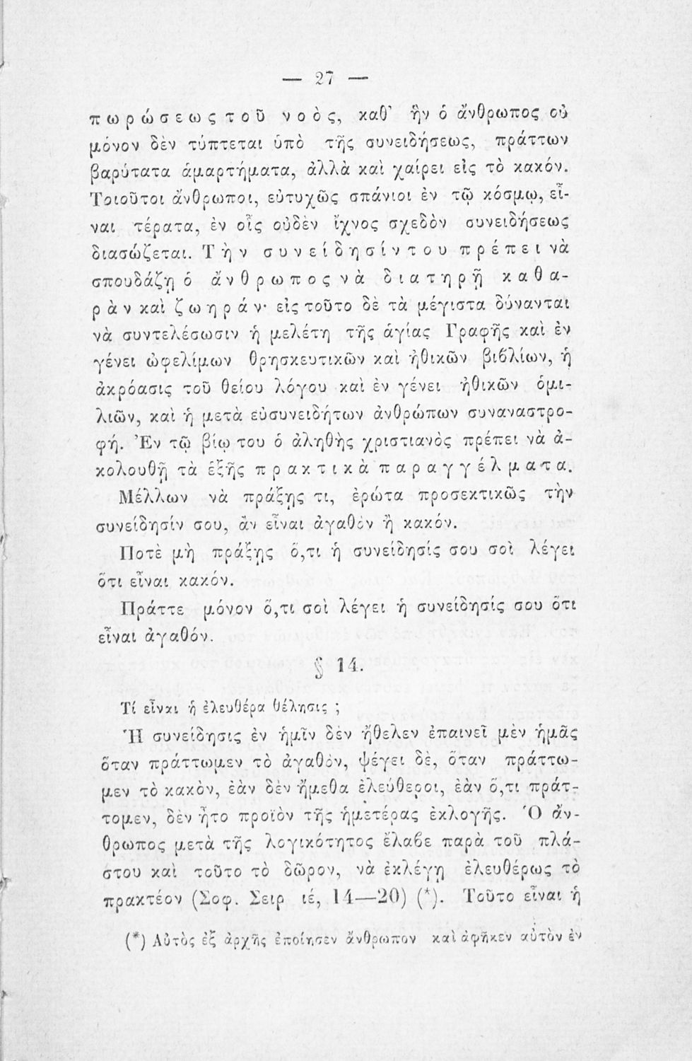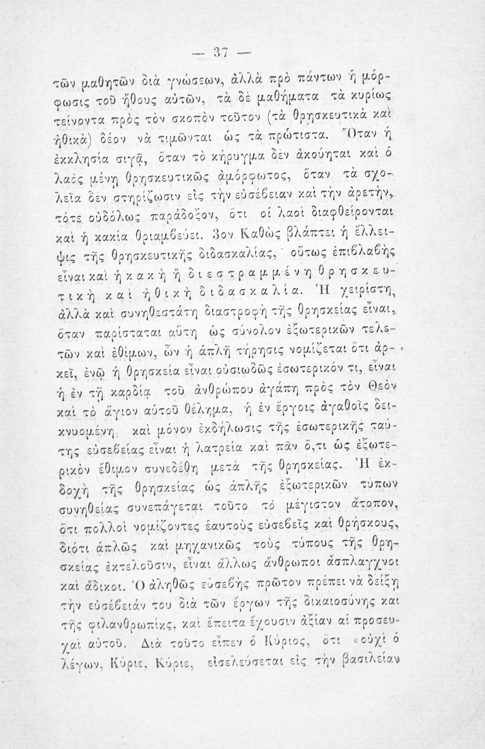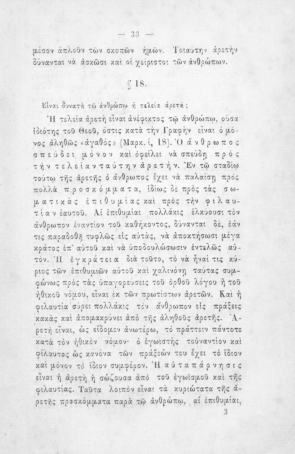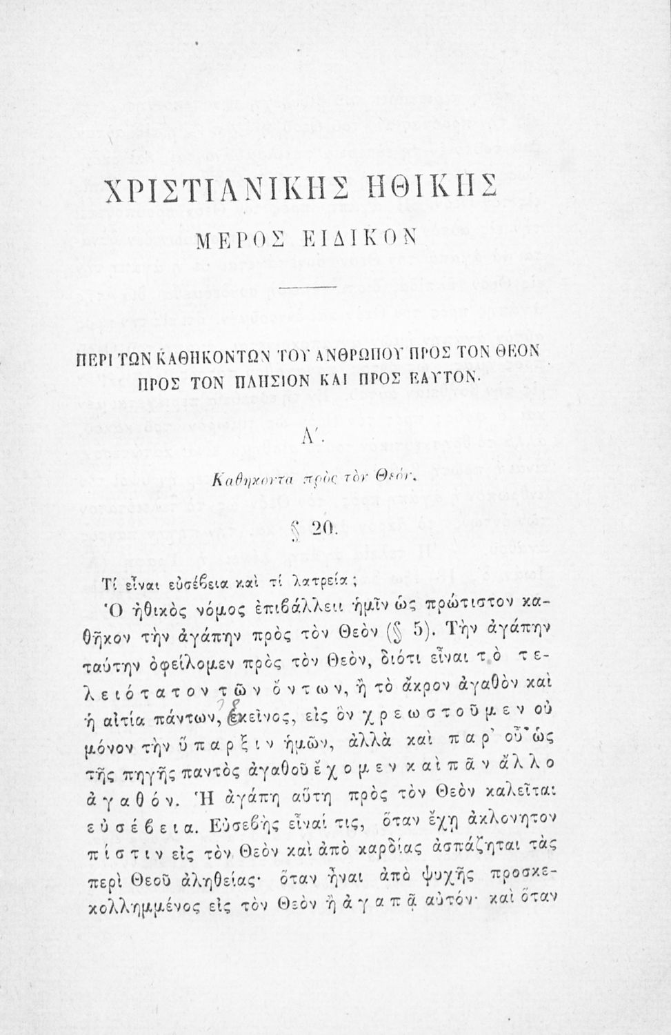 Βαθμίδα εκπαίδευσης: Δευτεροβάθμια Τάξη: Γυμνάσιο Μάθημα: Θρησκευτικά Γλώσσα: Καθαρεύουσα Παρουσίαση περιεχομένου: Σχολικό εγχειρίδιο Θρησκευτικών για τα Γυμνάσια που εστιάζει στη χριστιανική ηθική και αναλύει τα καθήκοντα του ανθρώπου προς τον Θεό, τους άλλους ανθρώπους και τον εαυτό του. |
