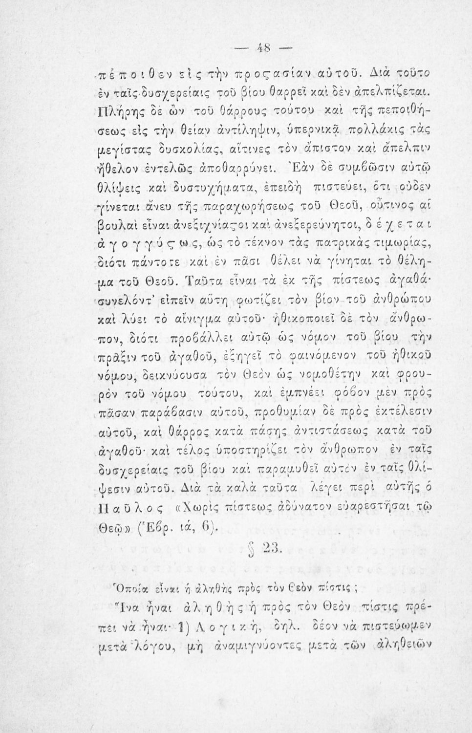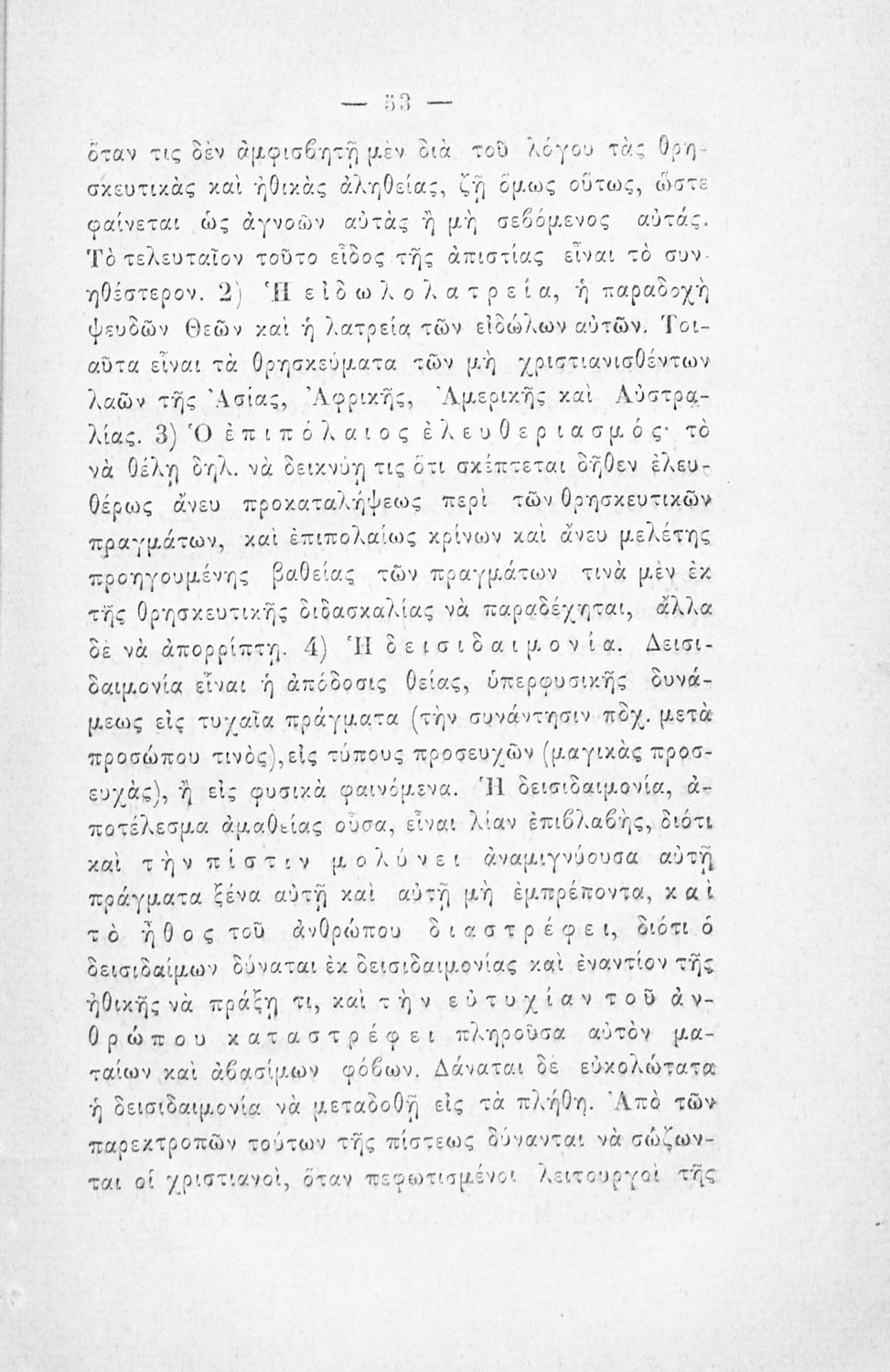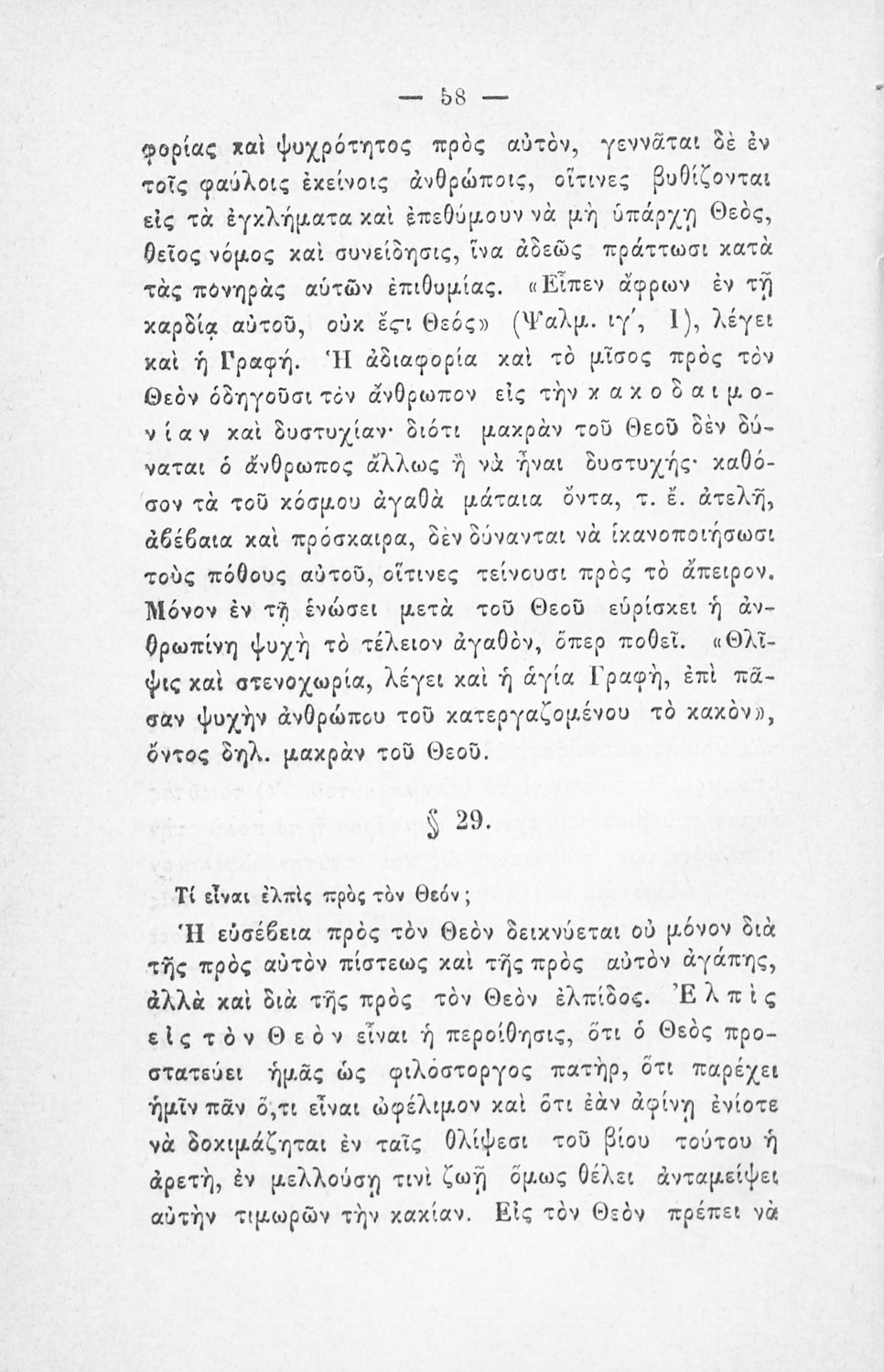 Βαθμίδα εκπαίδευσης: Δευτεροβάθμια Τάξη: Γυμνάσιο Μάθημα: Θρησκευτικά Γλώσσα: Καθαρεύουσα Παρουσίαση περιεχομένου: Σχολικό εγχειρίδιο Θρησκευτικών για τα Γυμνάσια που εστιάζει στη χριστιανική ηθική και αναλύει τα καθήκοντα του ανθρώπου προς τον Θεό, τους άλλους ανθρώπους και τον εαυτό του. |