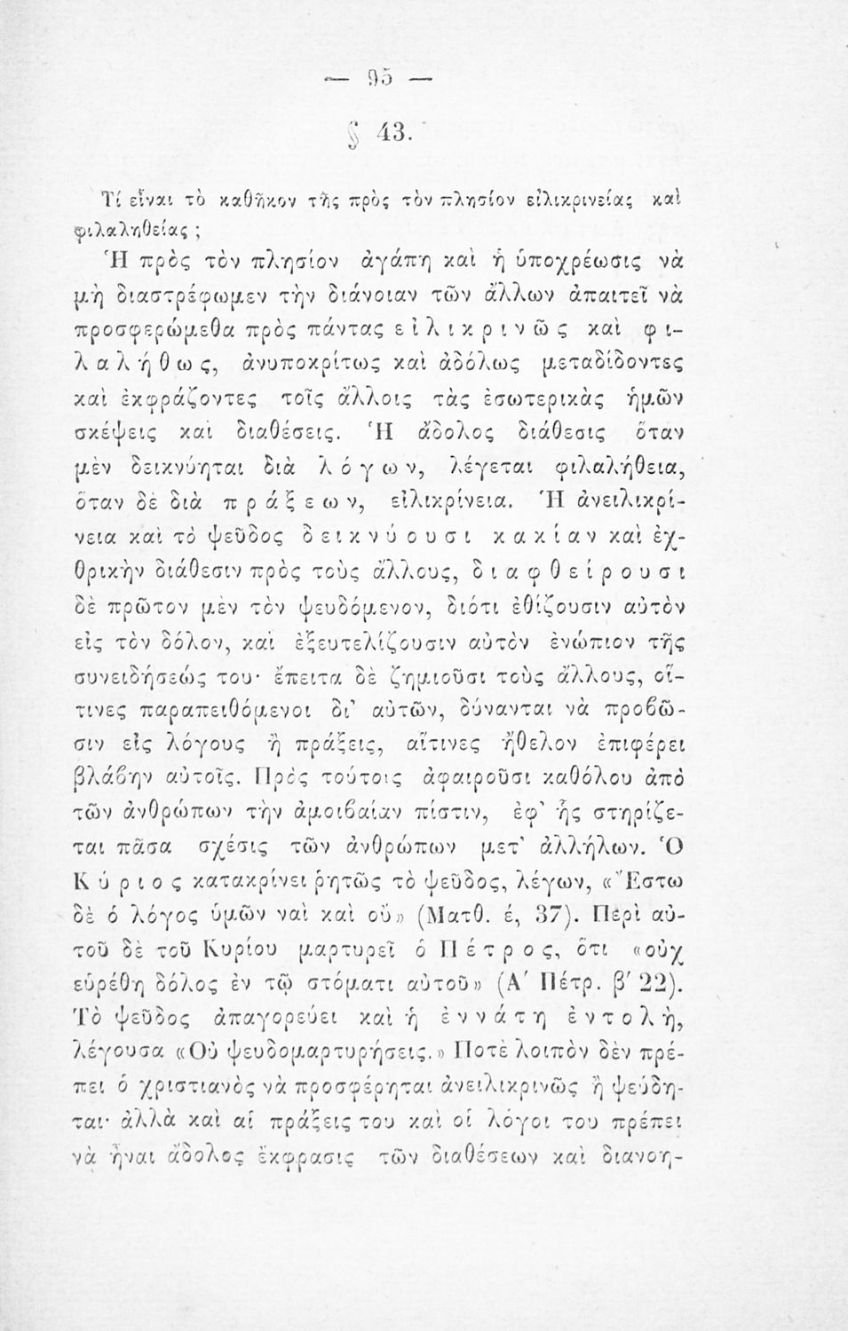 Σχολικό εγχειρίδιο Θρησκευτικών για τα Γυμνάσια και τα Διδασκαλεία που εστιάζει στη χριστιανική ηθική και αναλύει τα καθήκοντα του ανθρώπου προς τον Θεό, τους άλλους ανθρώπους και τον εαυτό του.