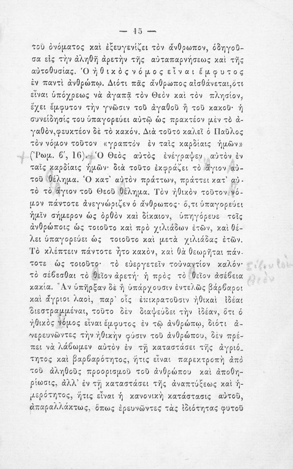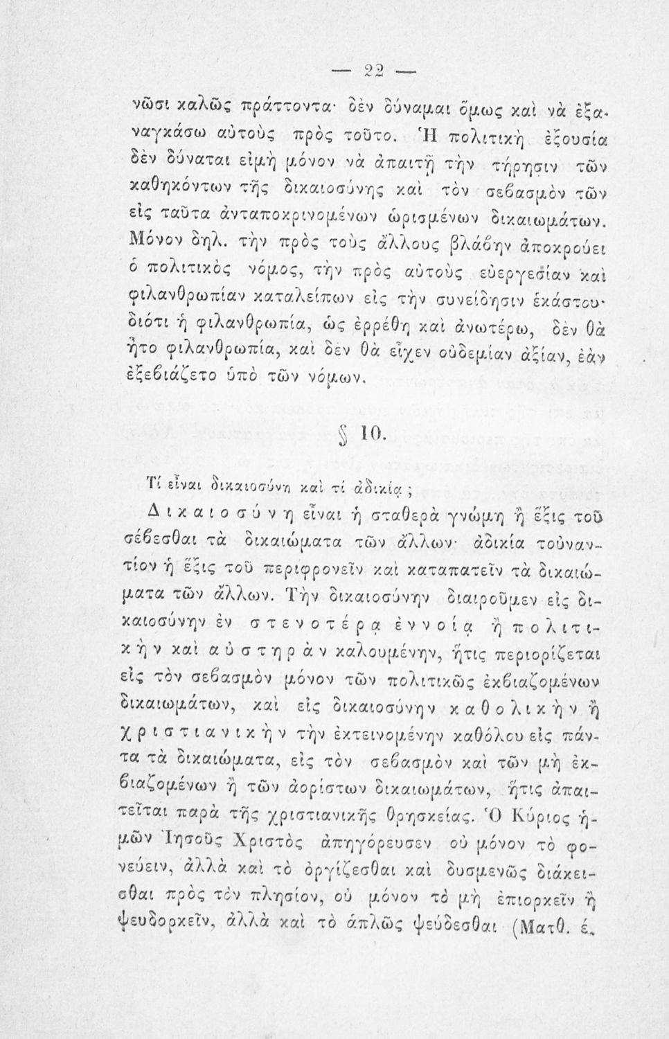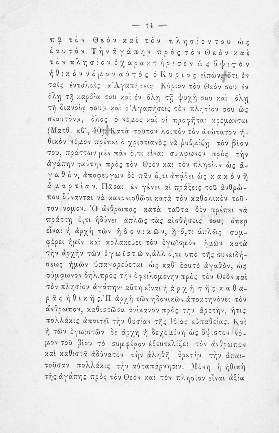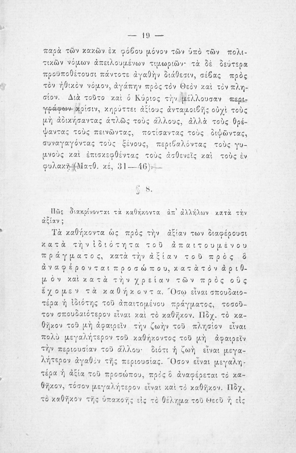 Βαθμίδα εκπαίδευσης: Δευτεροβάθμια Τάξη: Γυμνάσιο Μάθημα: Θρησκευτικά Γλώσσα: Καθαρεύουσα Παρουσίαση περιεχομένου: Σχολικό εγχειρίδιο Θρησκευτικών για τα Γυμνάσια που εστιάζει στη χριστιανική ηθική και αναλύει τα καθήκοντα του ανθρώπου προς τον Θεό, τους άλλους ανθρώπους και τον εαυτό του. |