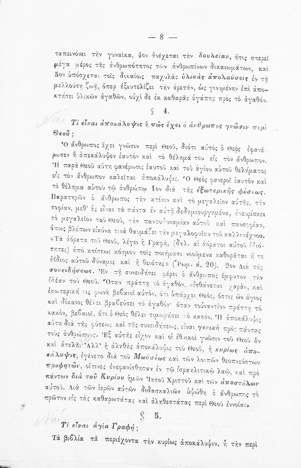 Βαθμίδα εκπαίδευσης: Δευτεροβάθμια Μάθημα: Θρησκευτικά Γλώσσα: Καθαρεύουσα Παρουσίαση περιεχομένου: Σχολικό εγχειρίδιο Θρησκευτικών για τους μαθητές των Ελληνικών Σχολείων που παρουσιάζει τις βασικές αξίες και αρχές του χριστιανισμού καθώς και τη ζωή, το έργο του Ιησού και τον τρόπο με τον οποίο άλλαξε τον κόσμο και ολοκληρώνει με την παρουσίαση και ερμηνεία των δέκα εντολών. |