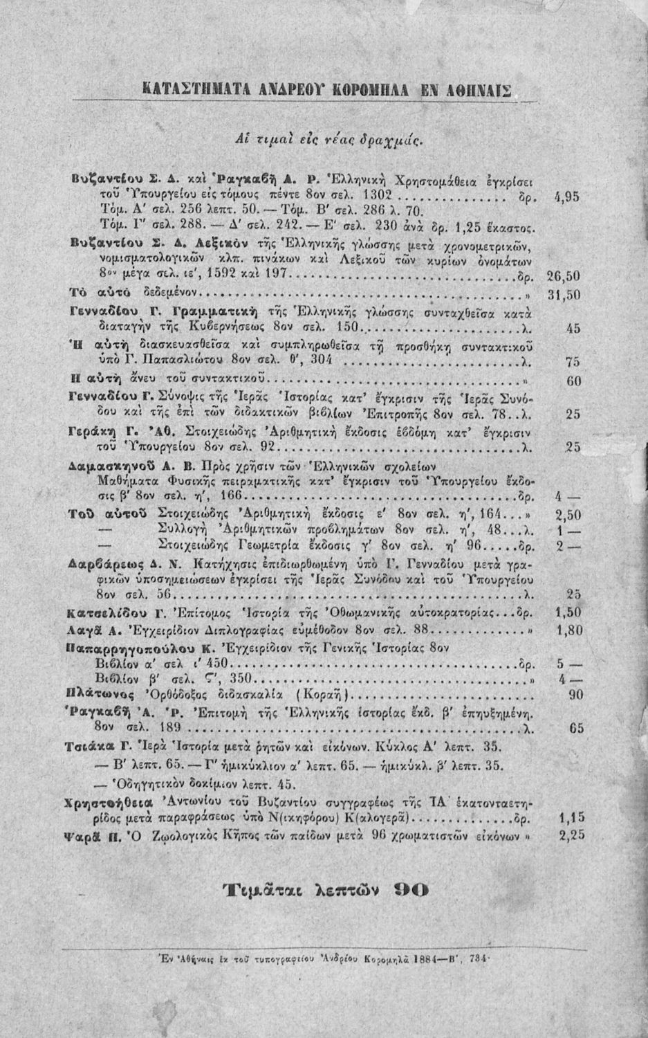 Σχολικό εγχειρίδιο Θρησκευτικών για τα Ελληνικά Σχολεία και παρθεναγωγεία που περιλαμβάνει εισαγωγή στην Παλαιά και Καινή διαθήκη και πραγματεύεται δογματικά και ηθικά ζητήματα της ορθόδοξης κατήχησης Είχε ...
