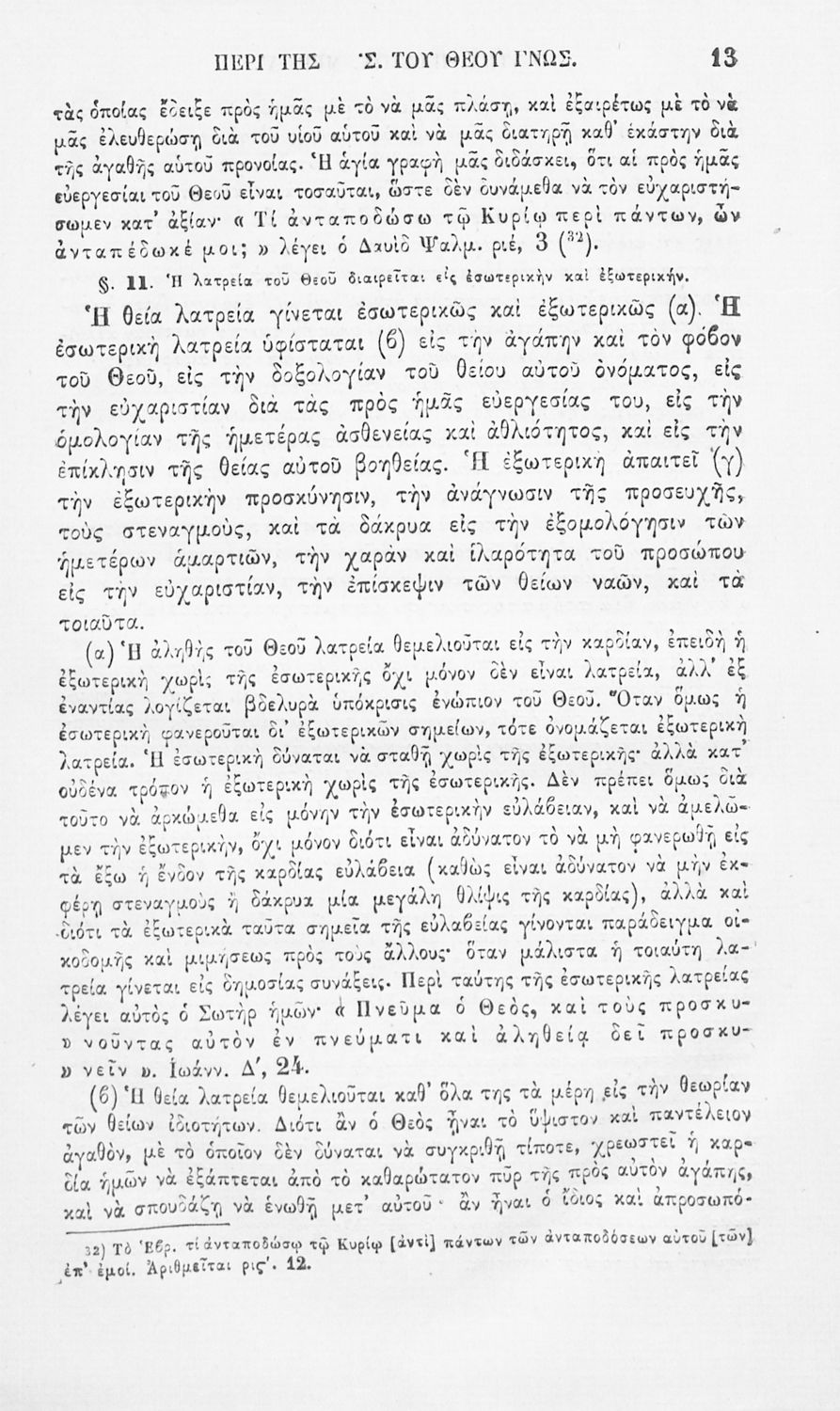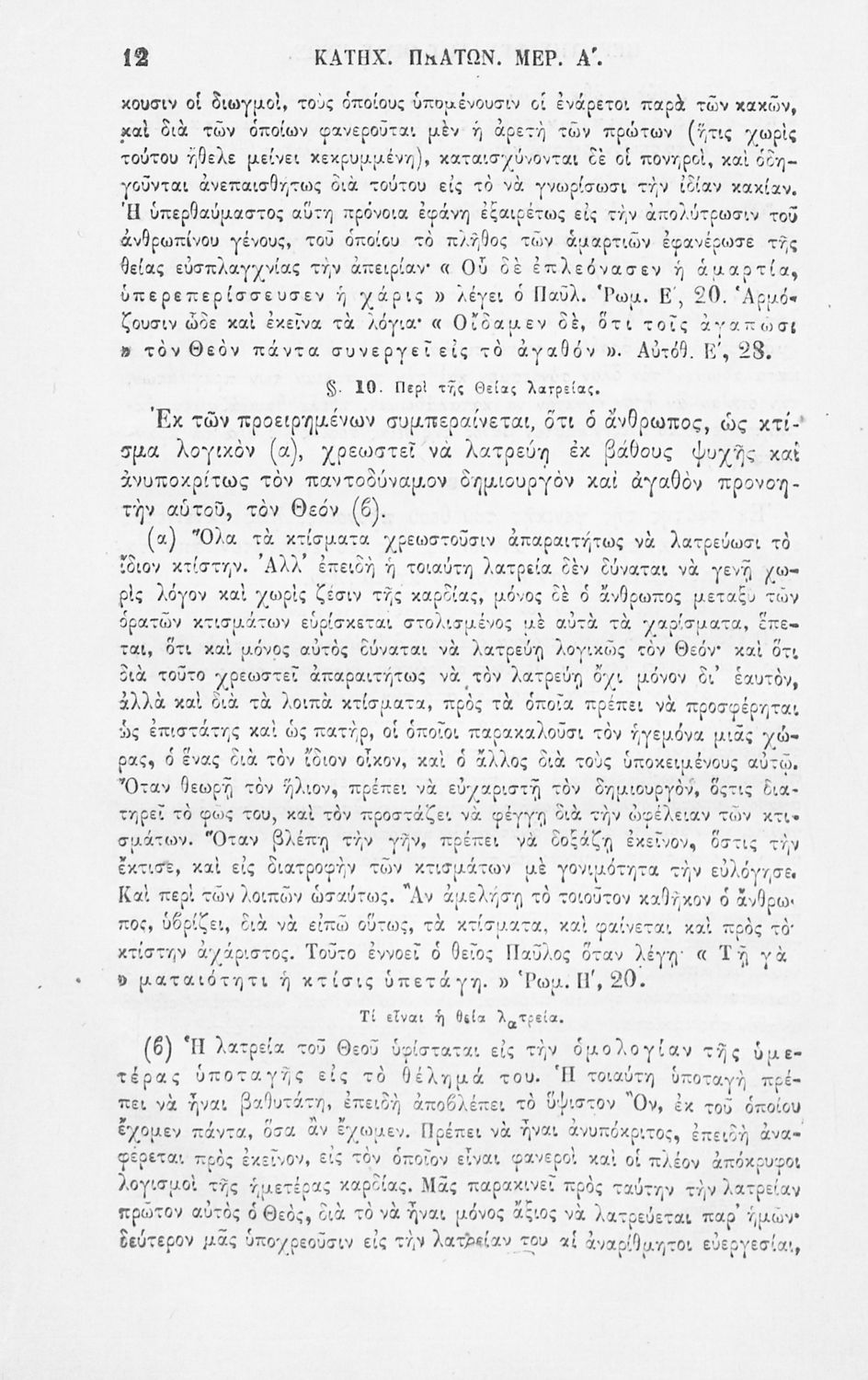 Μάθημα: Θρησκευτικά Γλώσσα: Απλή καθαρεύουσα Παρουσίαση περιεχομένου: Παιδαγωγικό βοήθημα για το μάθημα των Θρησκευτικών. Αναφέρεται στην θεία πίστη, στην ευαγγελική πίστη, στο θείο νόμο και στα μυστήρια. Αποτελεί εισαγωγή στη Θεολογία. |