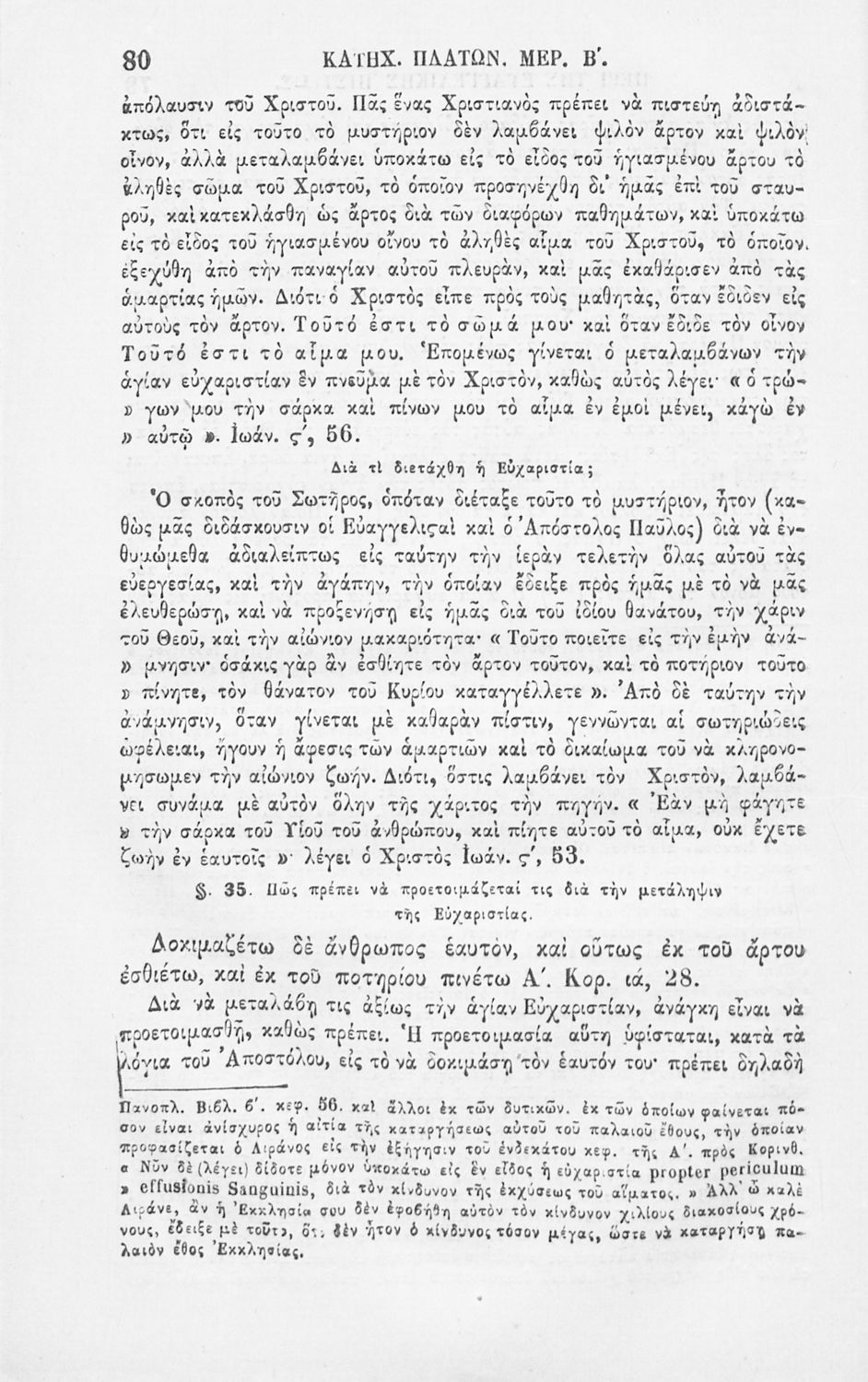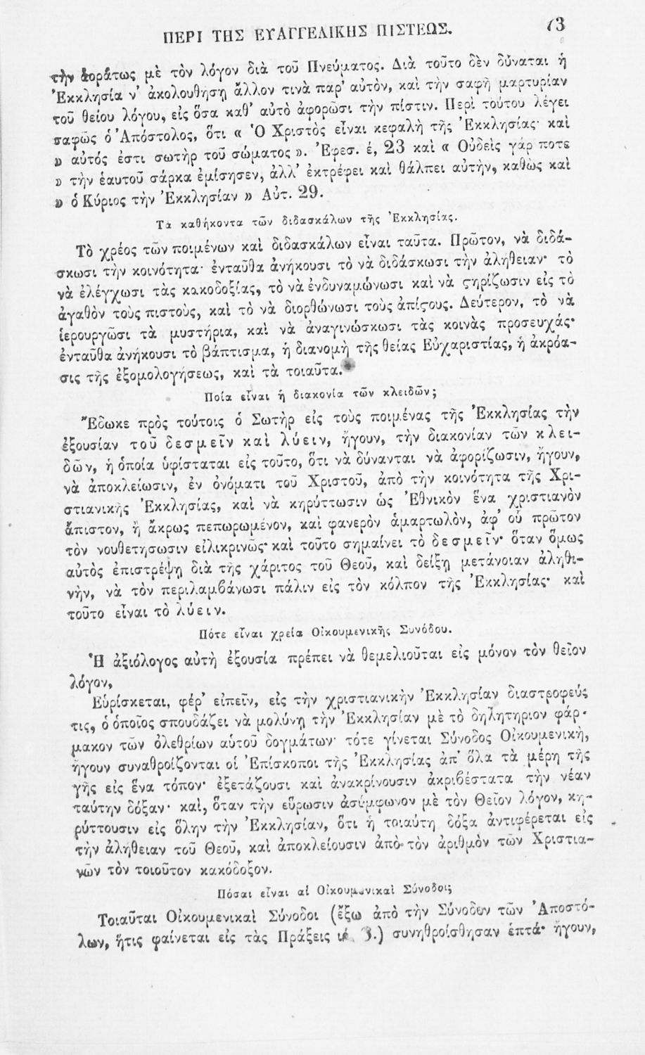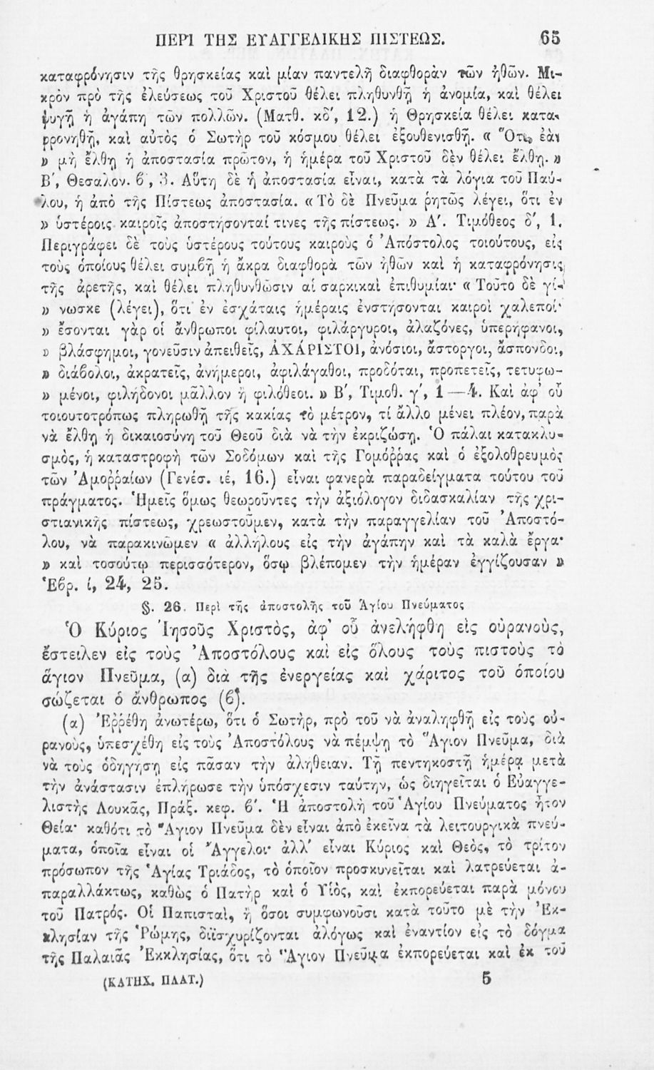 Μάθημα: Θρησκευτικά Γλώσσα: Απλή καθαρεύουσα Παρουσίαση περιεχομένου: Παιδαγωγικό βοήθημα για το μάθημα των Θρησκευτικών. Αναφέρεται στην θεία πίστη, στην ευαγγελική πίστη, στο θείο νόμο και στα μυστήρια. Αποτελεί εισαγωγή στη Θεολογία. |