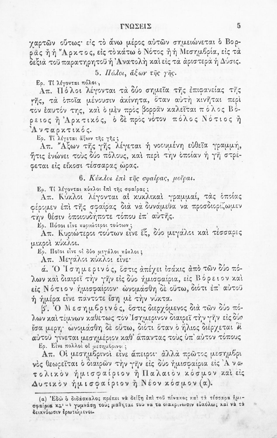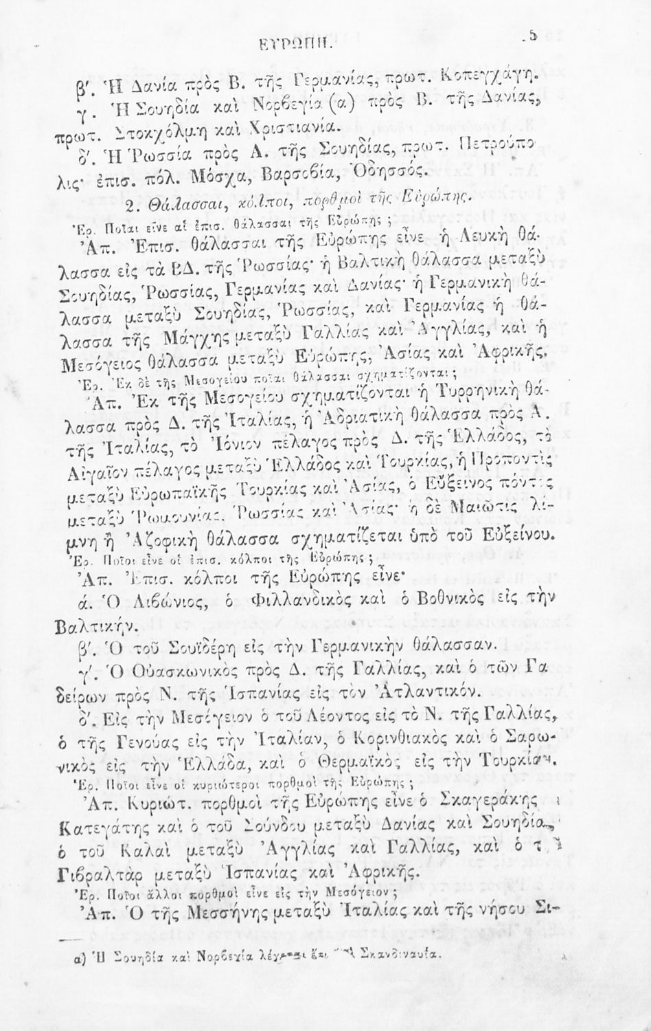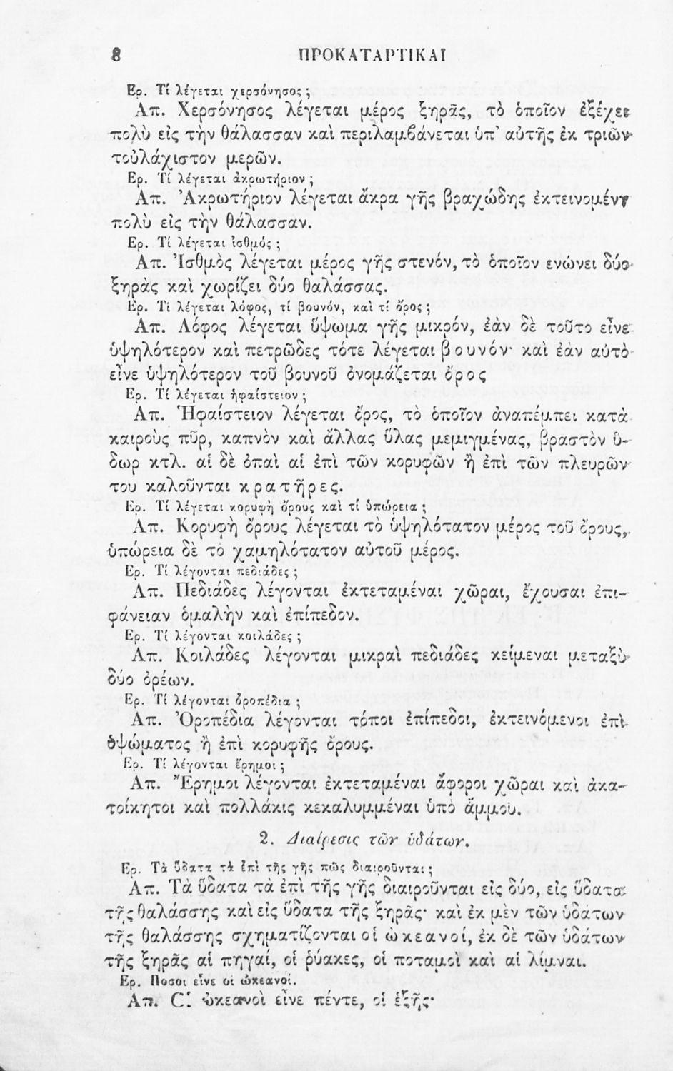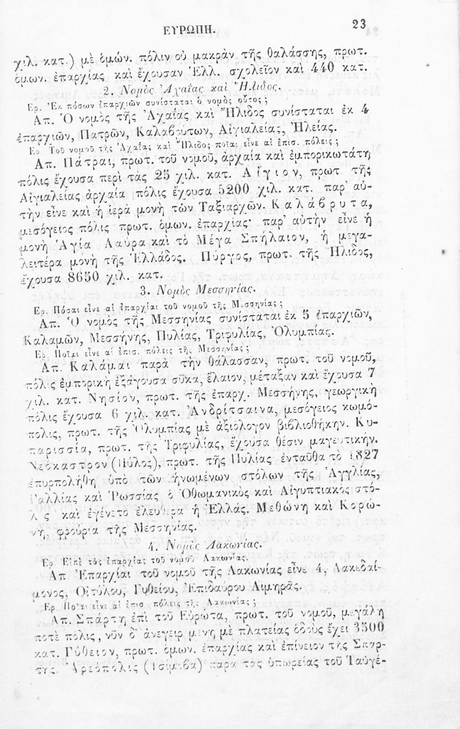 Βαθμίδα εκπαίδευσης: Πρωτοβάθμια Μάθημα: Γεωγραφία Γλώσσα: Καθαρεύουσα Παρουσίαση περιεχομένου: Σχολικό εγχειρίδιο Γεωγραφίας Δημοτικού που περιλαμβάνει εισαγωγή στις βασικές έννοιες και ορισμούς της επιστήμης, και στοιχεία μαθηματικής, φυσικής και πολιτικής γεωγραφίας των πέντε ηπείρων. |