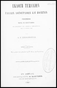 Εκδότης: Ανέστης Κωνσταντινίδης Έτος έκδοσης: 1884 Τόπος έκδοσης: Αθήνα |