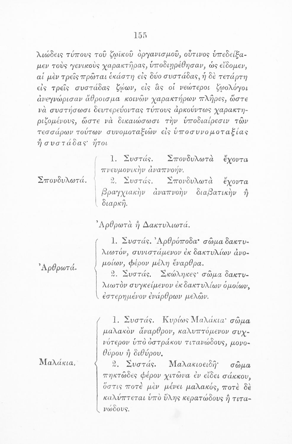Σχολικό εγχειρίδιο Ζωολογίας για τα Γυμνάσια και τα Διδασκαλεία χωρισμένο σε δυο ενότητες: την ανατομία και φυσιολογία του ανθρώπου και την ιστορία των ζώων. Ο συγγραφέας ήταν καθηγητής ζωολογίας στο Εθνικό ...