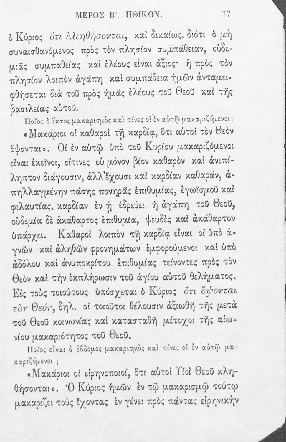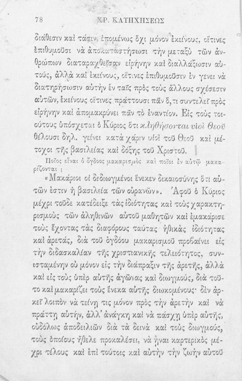 Σχολικό εγχειρίδιο Θρησκευτικών για τα Ελληνικά Σχολεία και Παρθεναγωγεία που εστιάζει σε θέματα χριστιανικής ηθικής και σε δογματικά και ηθικά ζητήματα της ορθόδοξης κατήχησης.