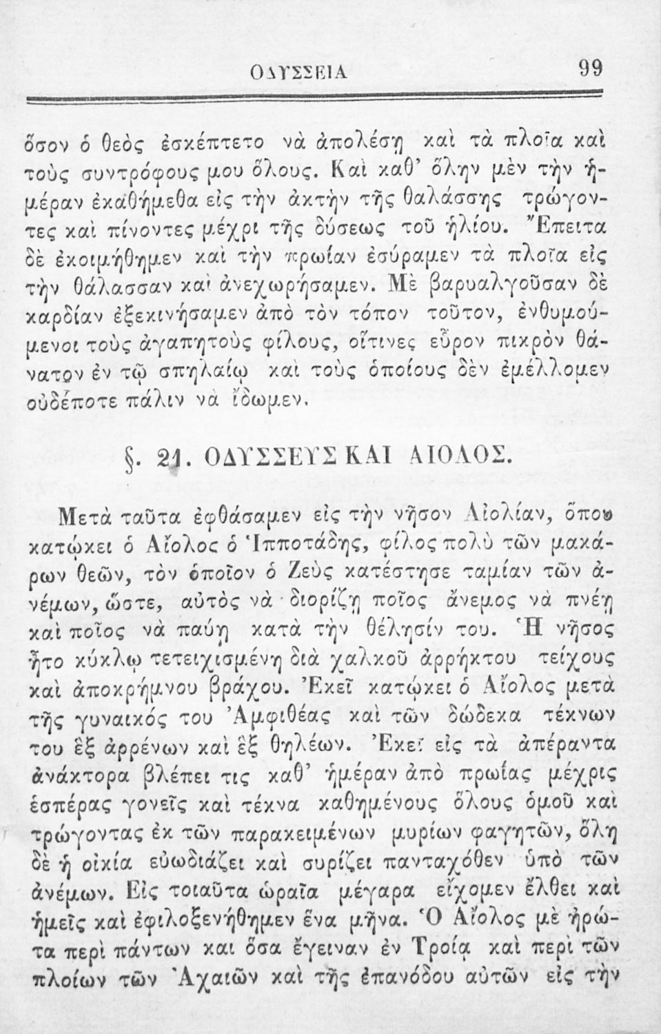 Αναγνωστικό για τα Δημοτικά Σχολεία και Παρθεναγωγεία που εξιστορεί τις περιπέτειες του Οδυσσέα. Το κείμενο συνοδεύεται από γλωσσικές και ερμηνευτικές σημειώσεις.