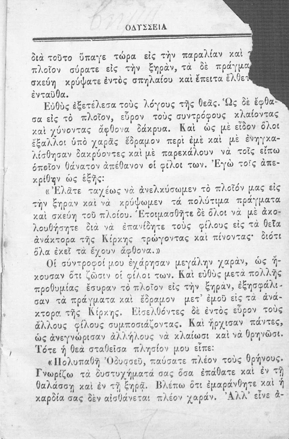 Τίτλος: Ομήρου Οδύσσεια, προς χρήσιν των Δημοτικών Σχολείων, ιδία δε των Παρθεναγωγείων, μετ΄ εικόνων, τεύχος Α΄