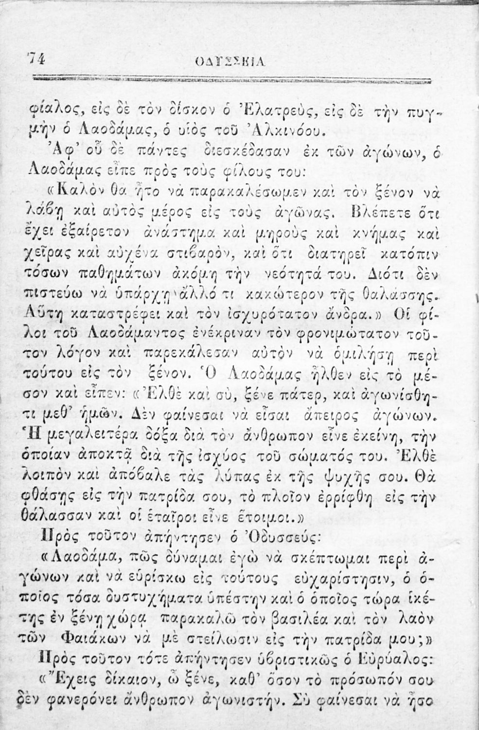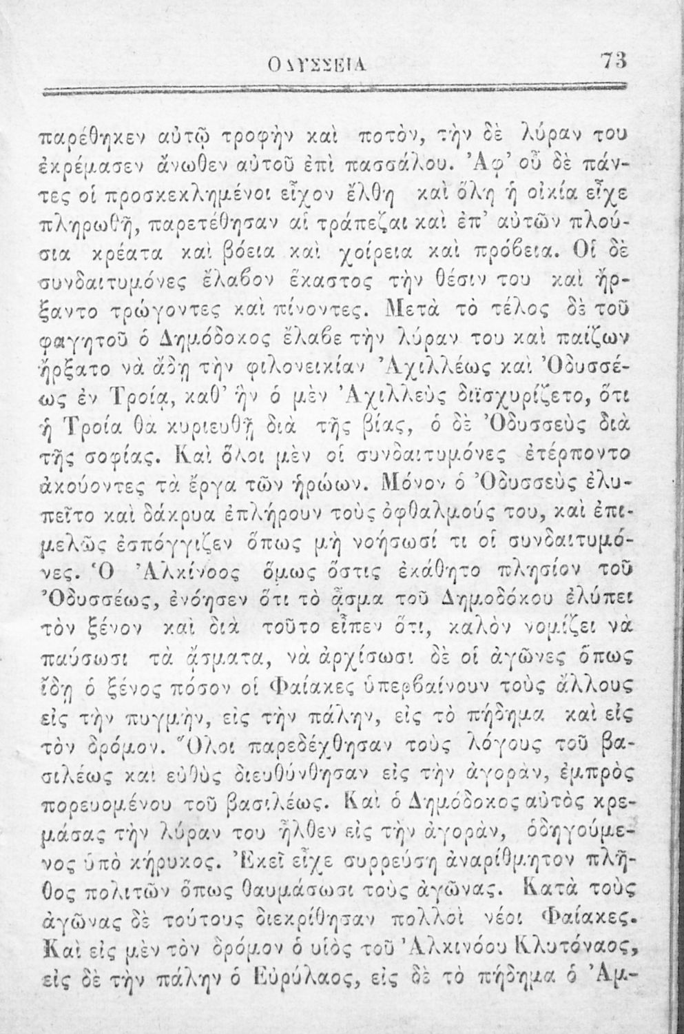 Τίτλος: Ομήρου Οδύσσεια, προς χρήσιν των Δημοτικών Σχολείων, ιδία δε των Παρθεναγωγείων, μετ΄ εικόνων, τεύχος Α΄