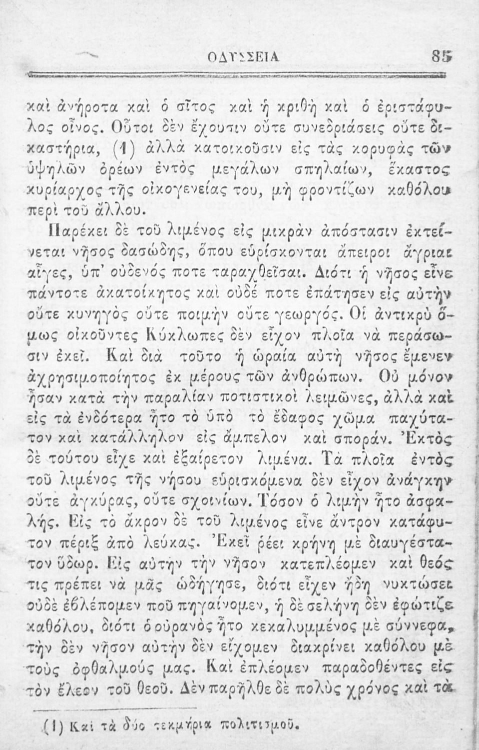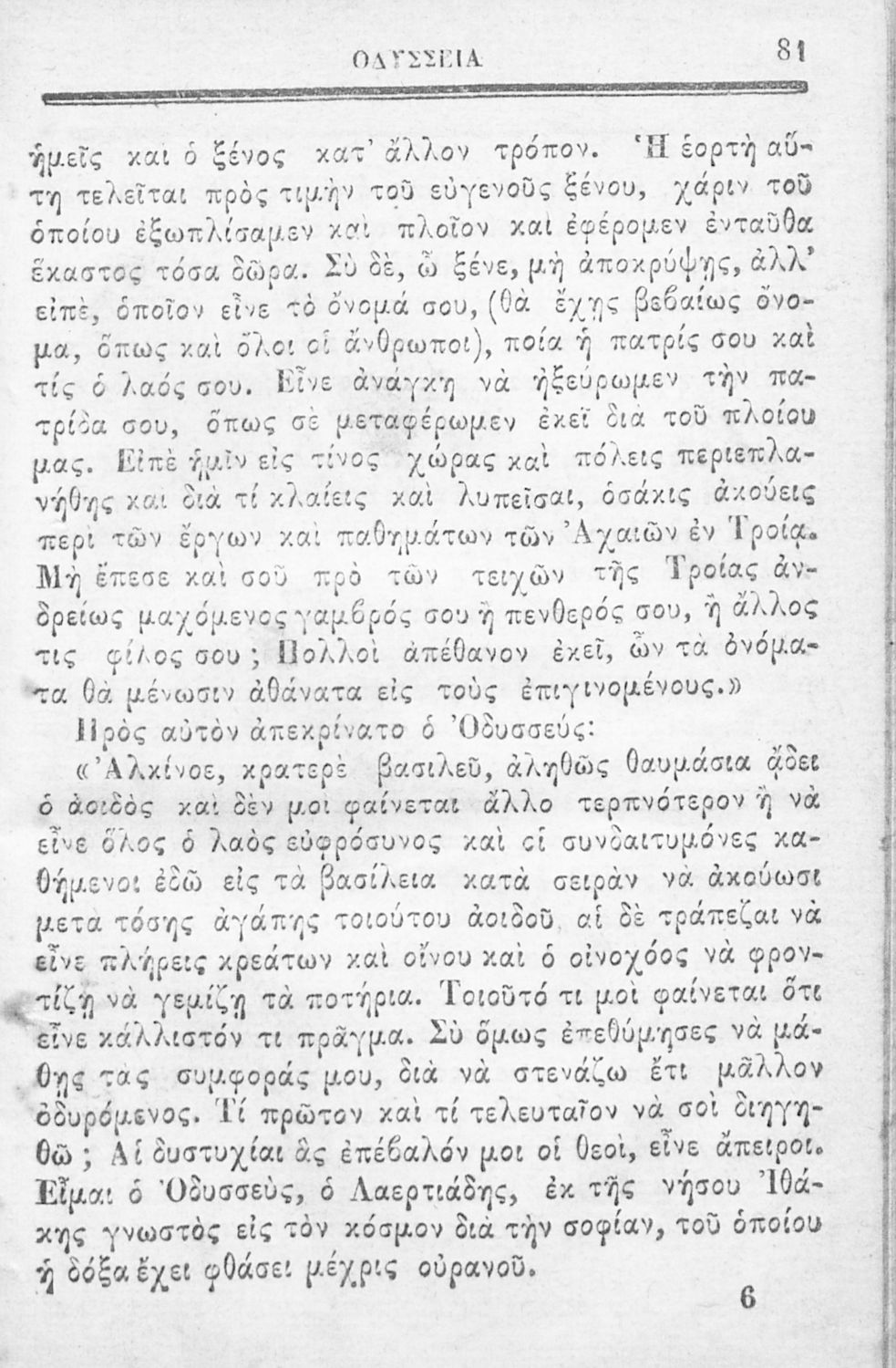 Ομήρου Οδύσσεια, προς χρήσιν των Δημοτικών Σχολείων, ιδία δε των Παρθεναγωγείων, μετ΄ εικόνων, τεύχος Α΄