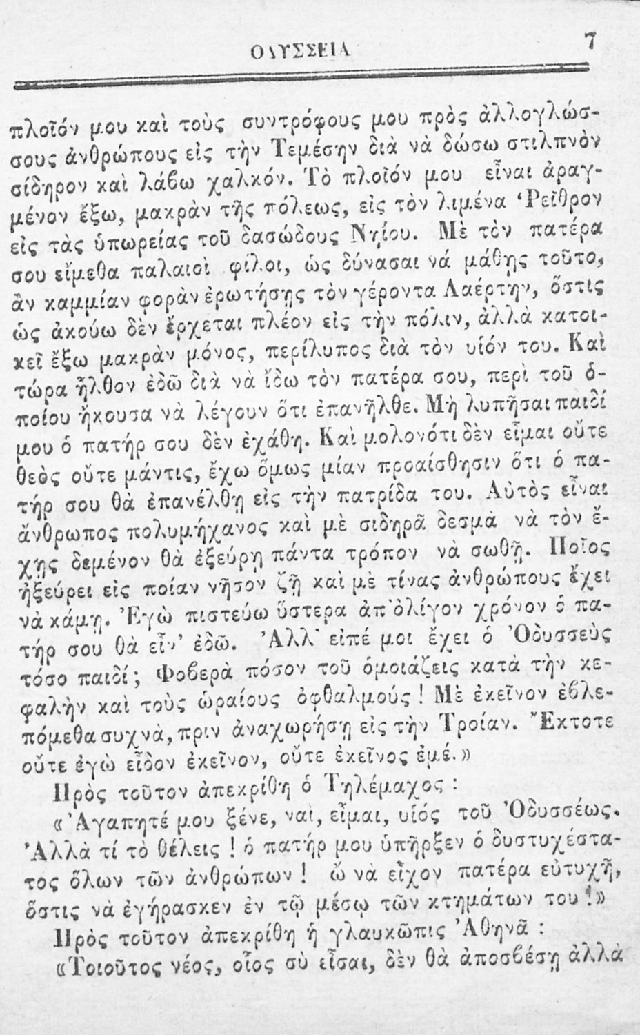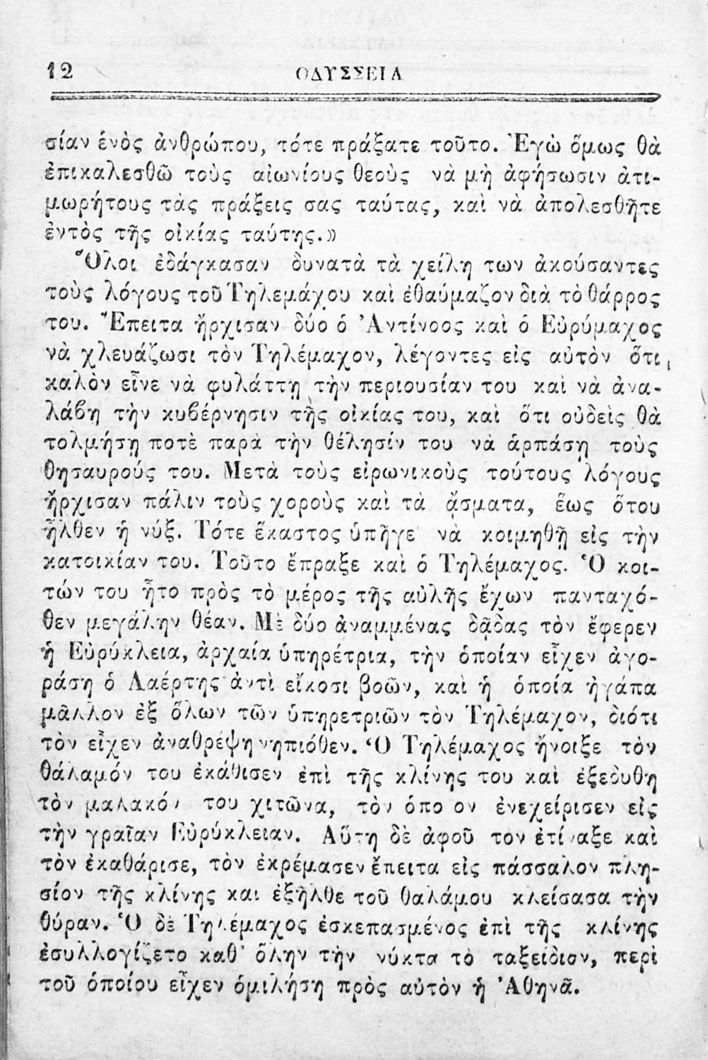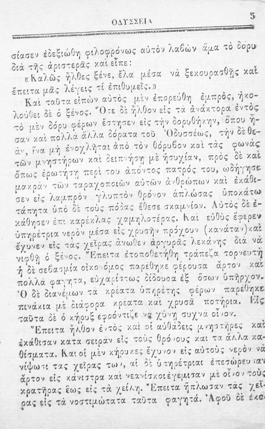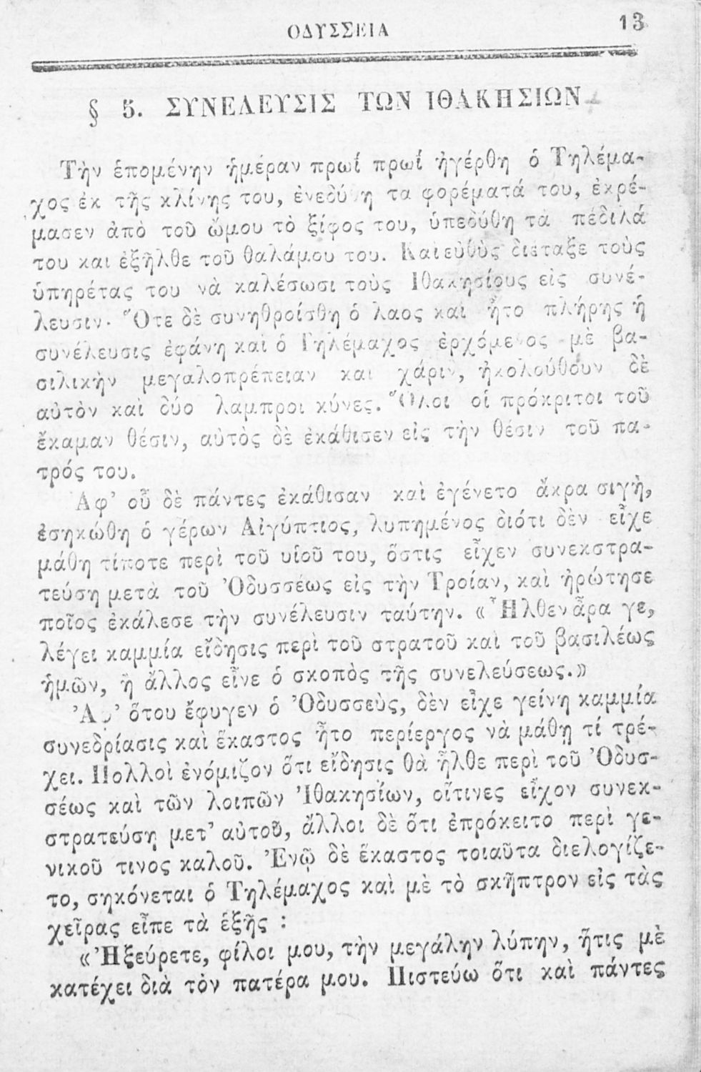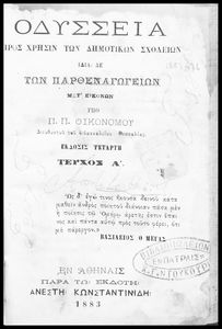 Αναγνωστικό για τα Δημοτικά Σχολεία και Παρθεναγωγεία που εξιστορεί τις περιπέτειες του Οδυσσέα. Το κείμενο συνοδεύεται από γλωσσικές και ερμηνευτικές σημειώσεις.