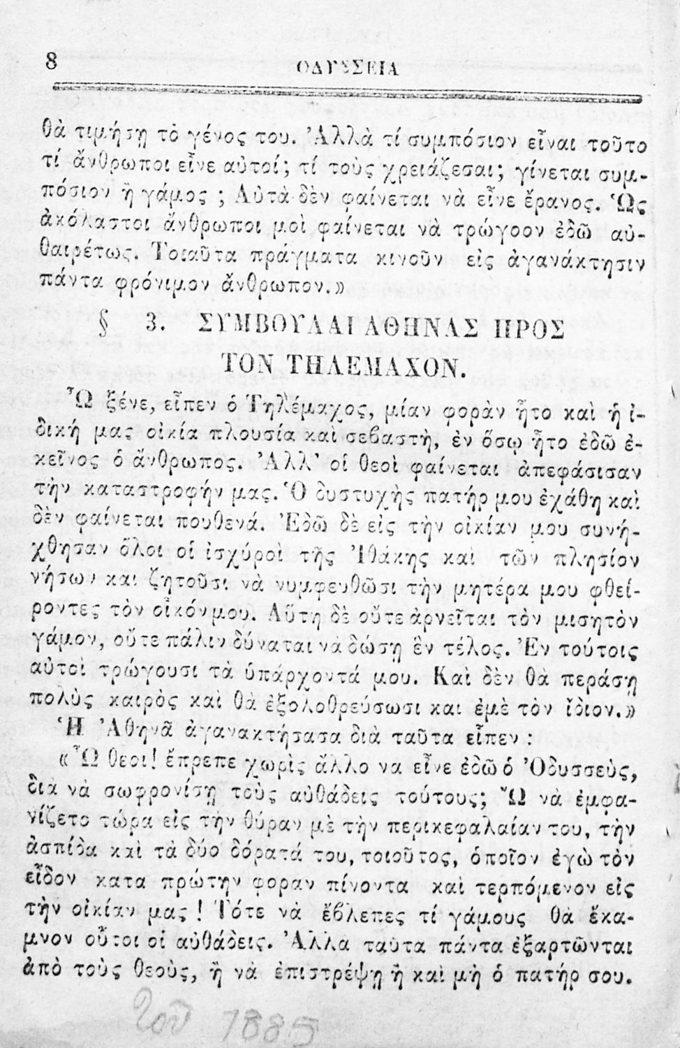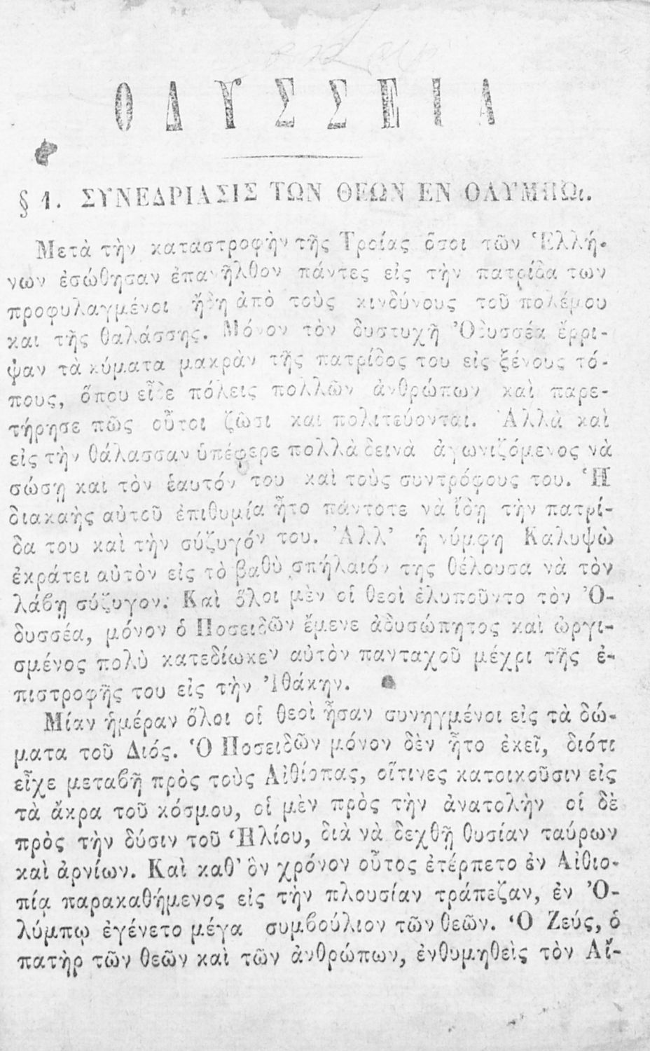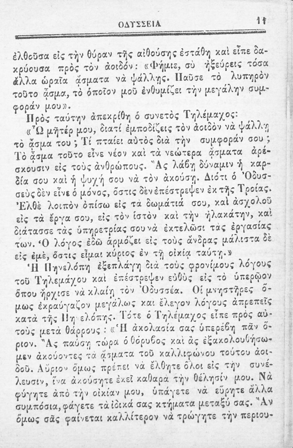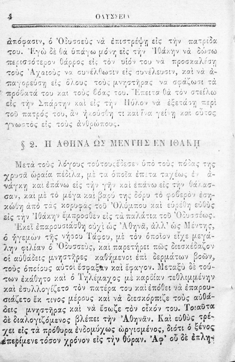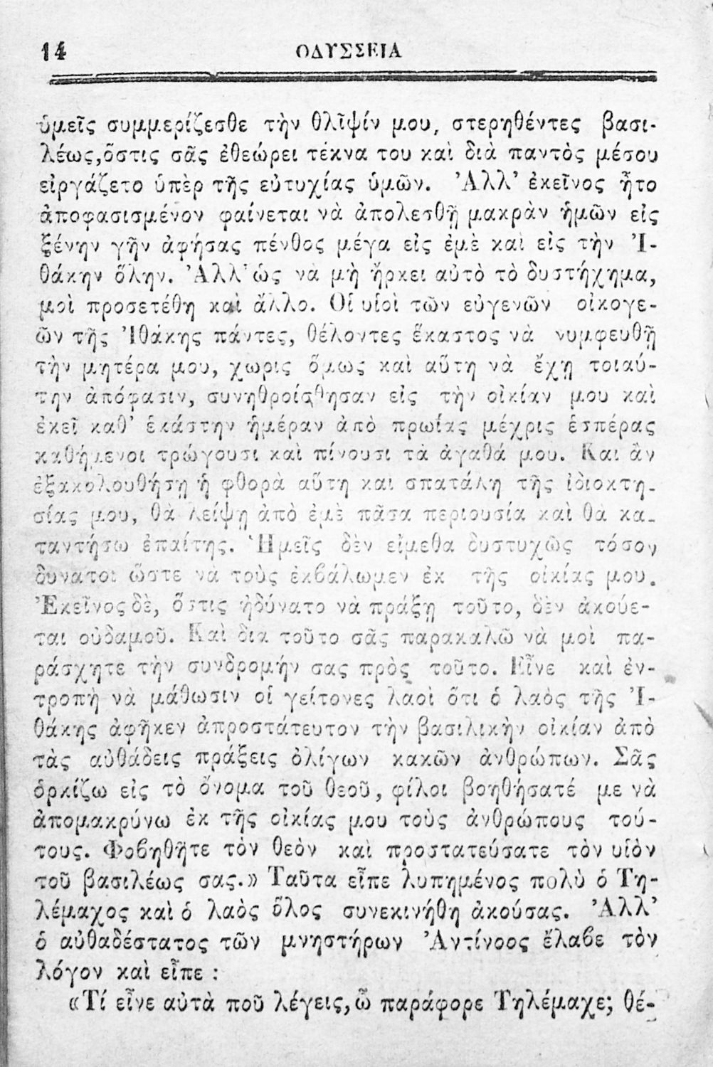 Αναγνωστικό για τα Δημοτικά Σχολεία και Παρθεναγωγεία που εξιστορεί τις περιπέτειες του Οδυσσέα. Το κείμενο συνοδεύεται από γλωσσικές και ερμηνευτικές σημειώσεις.