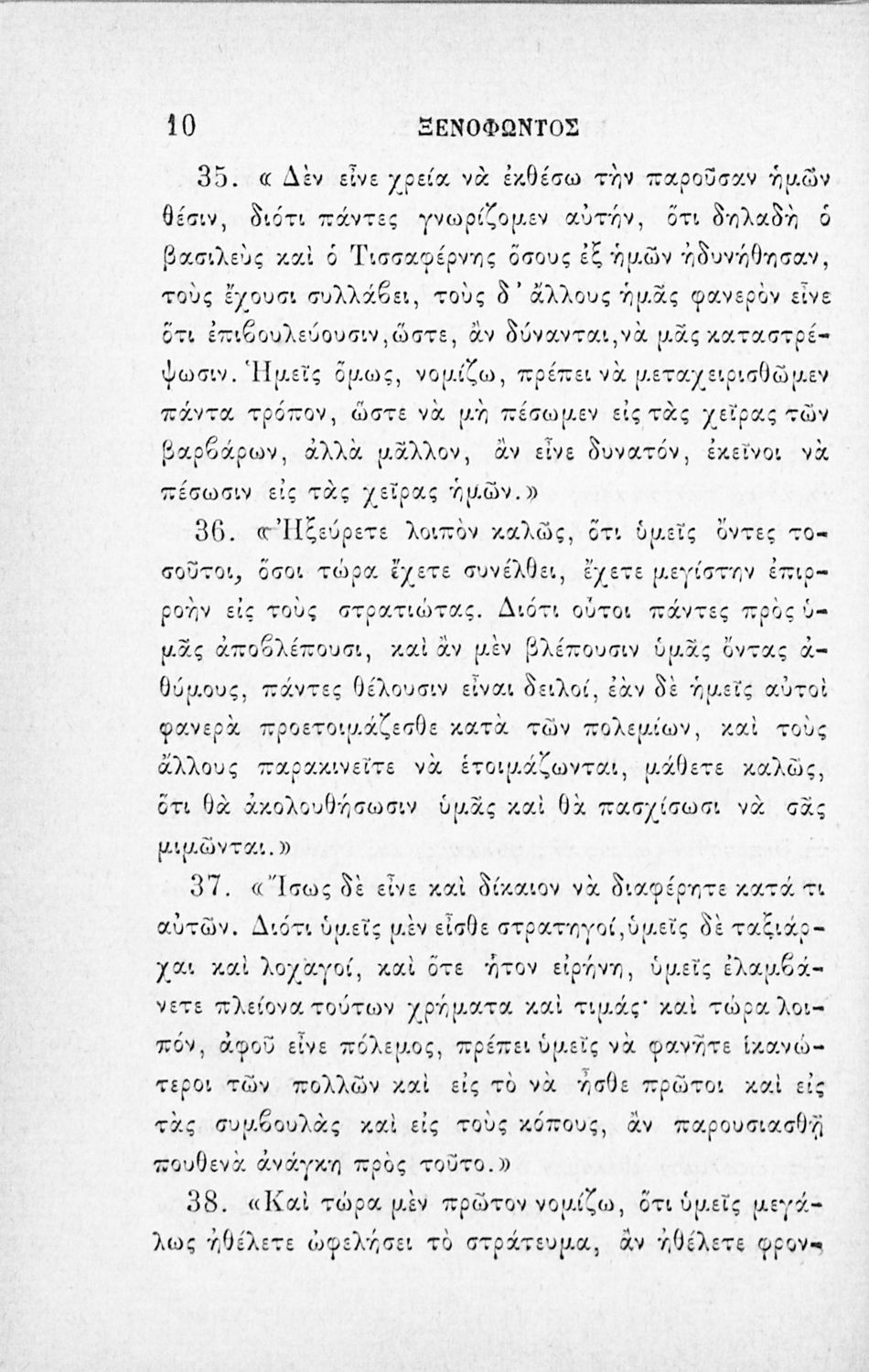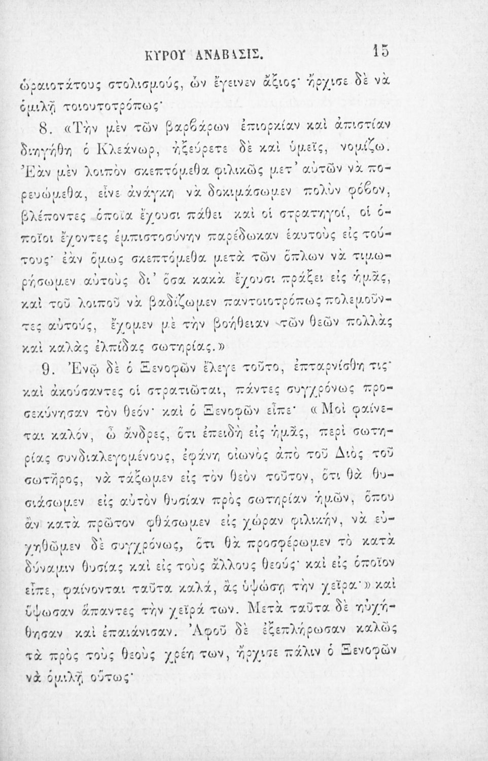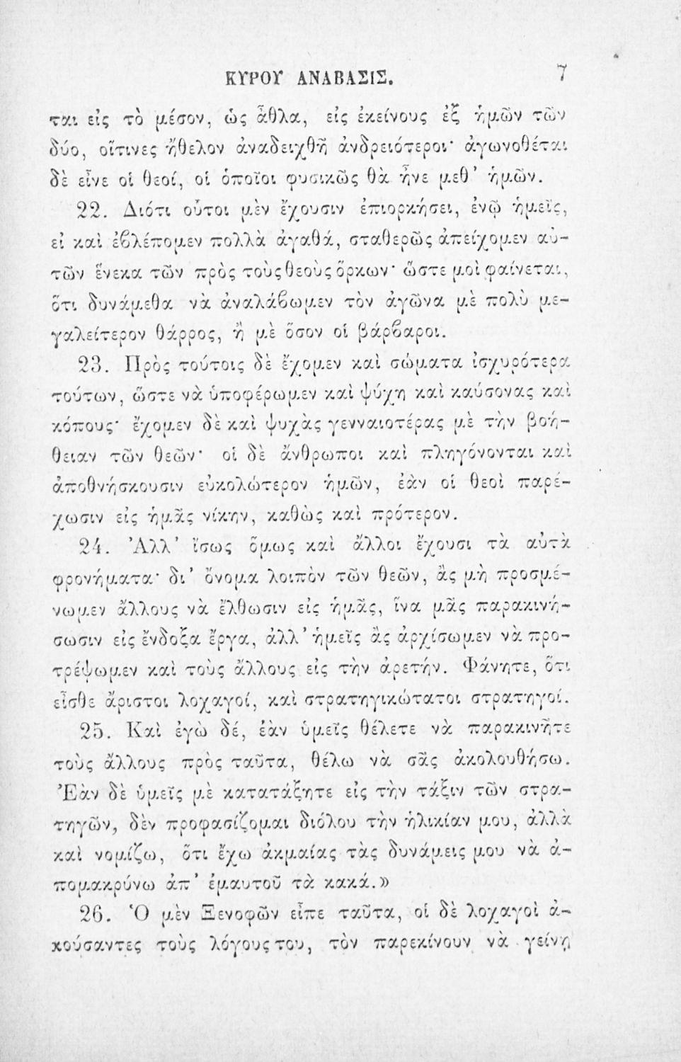 Αναγνωστικό για τις ανώτερες τάξεις του Δημοτικού που περιλαμβάνει μετάφραση των Α΄ και Β΄ βιβλίων του έργου του Ξενοφώντα Κύρου Ανάβασις και λεξιλόγιο.