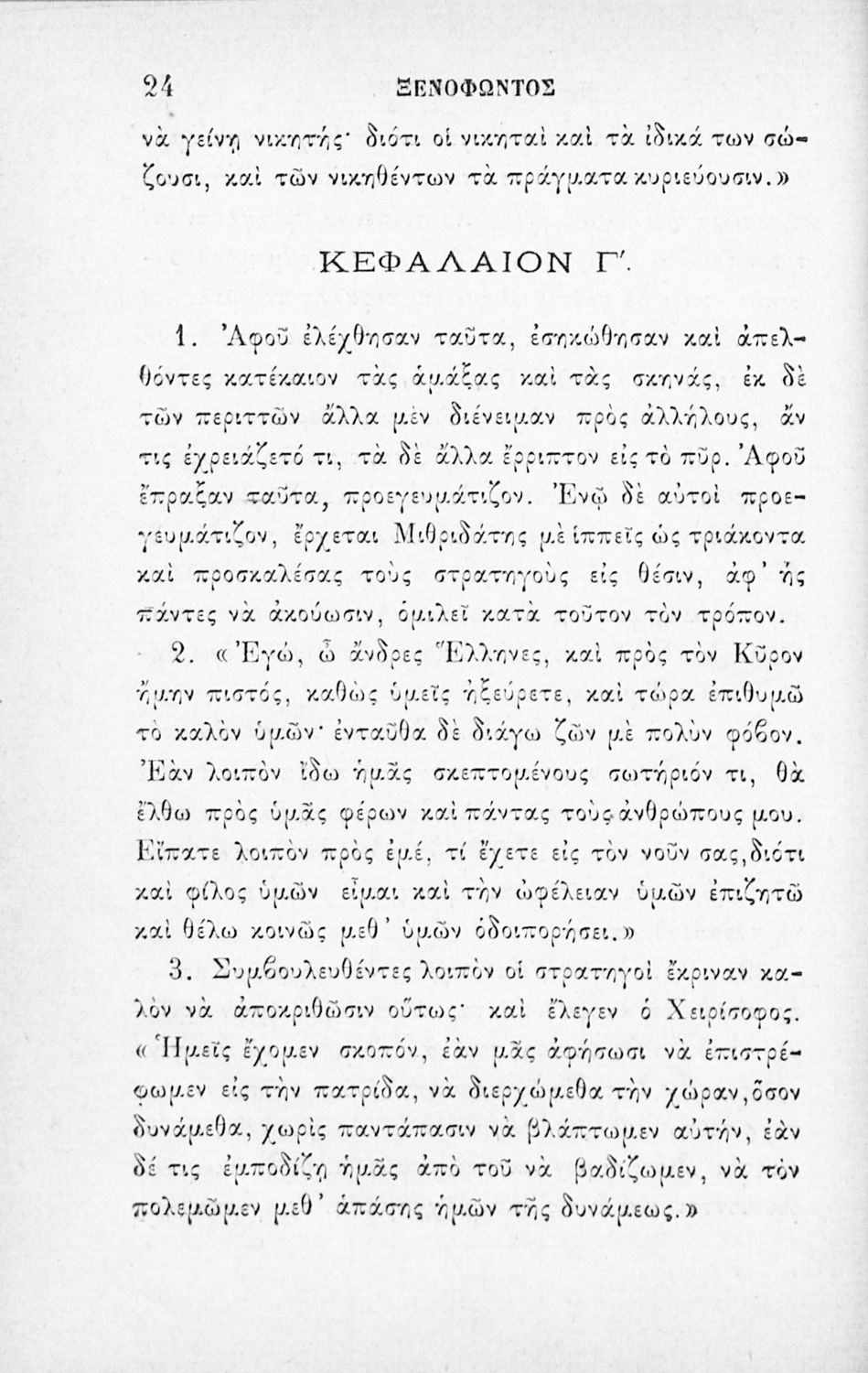 Σχολικό εγχειρίδιο Αρχαίων Ελληνικών για τα Ιερατικά Σχολεία. Ο τόμος περιέχει «..τεμάχια κατ’ εκλογήν εκ της Ξενοφώντος Κύρου Ανάβασεως και εκ των Γεωγραφικών και Εθνογραφικών Στράβωνος, Διοδώρου και άλλων, ...