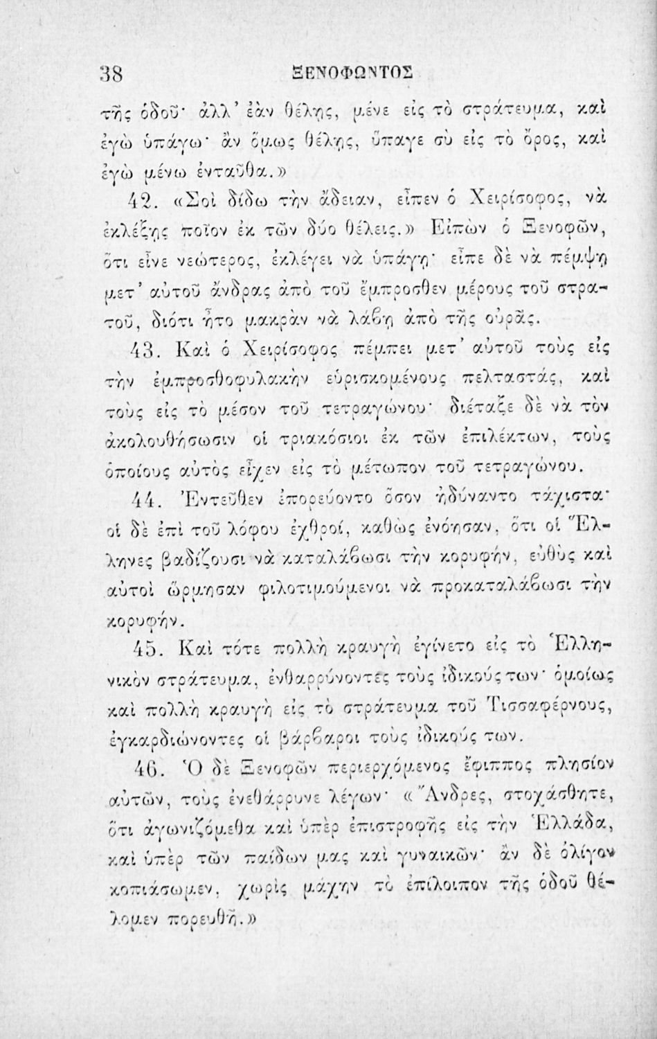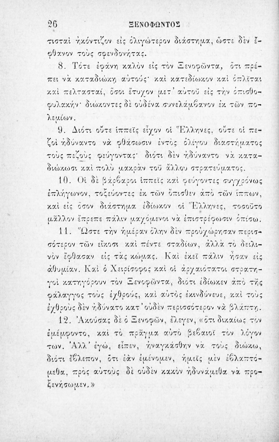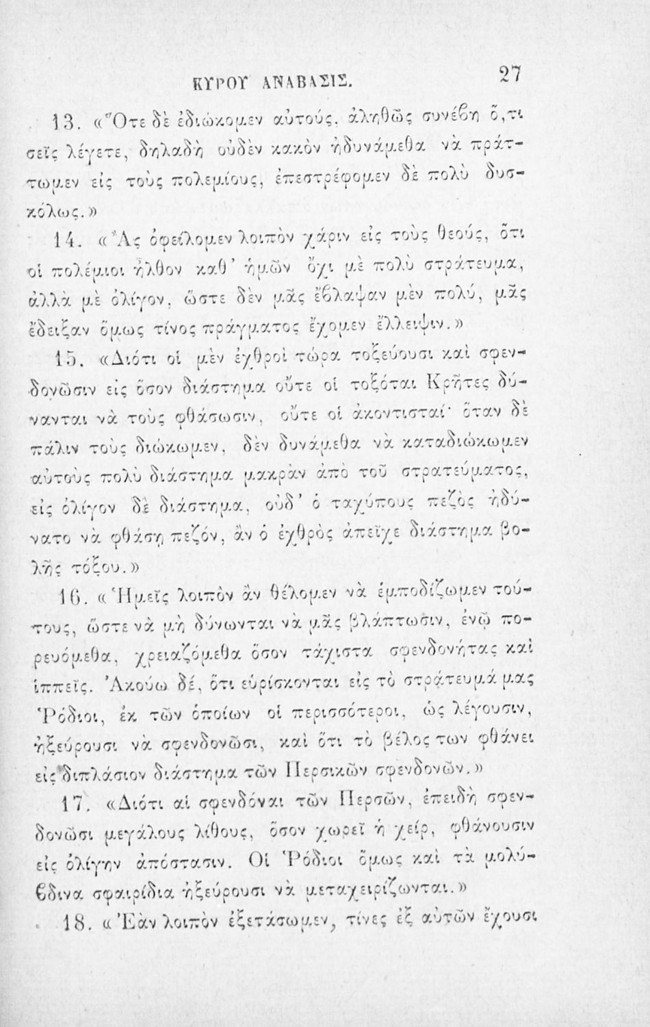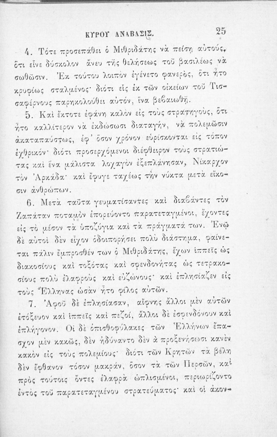 Αναγνωστικό για τις ανώτερες τάξεις του Δημοτικού που περιλαμβάνει μετάφραση των Α΄ και Β΄ βιβλίων του έργου του Ξενοφώντα Κύρου Ανάβασις και λεξιλόγιο.