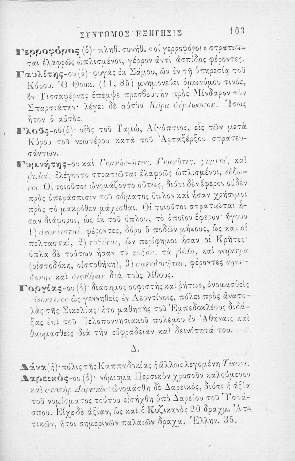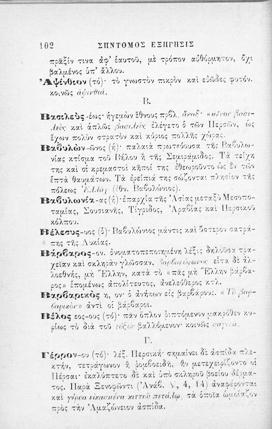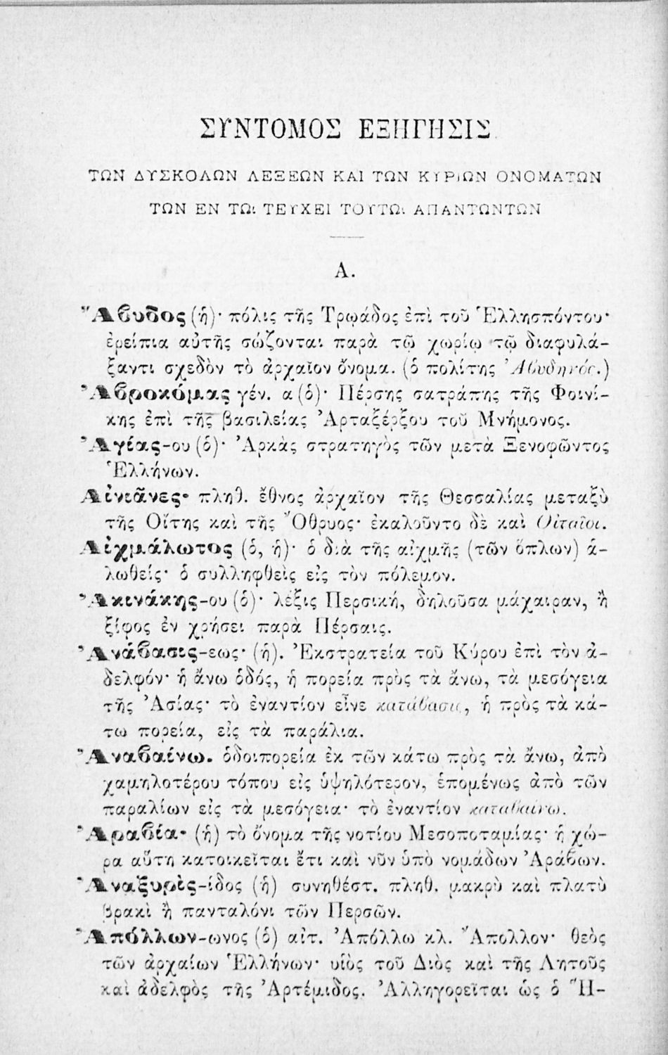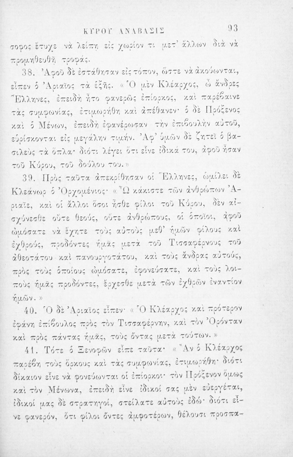 Σχολικό εγχειρίδιο Αρχαίων Ελληνικών για τα Ελληνικά Σχολεία και Παρθεναγωγεία που περιλαμβάνει αποσπάσματα από το έργο του Ξενοφώντα Κύρου Ανάβασις, και λεξικογραφικές παρατηρήσεις.