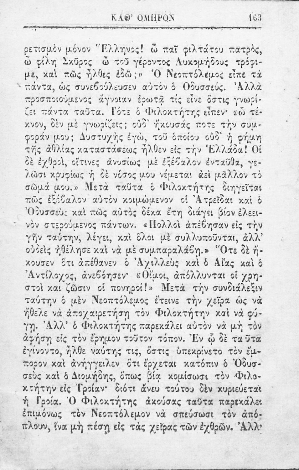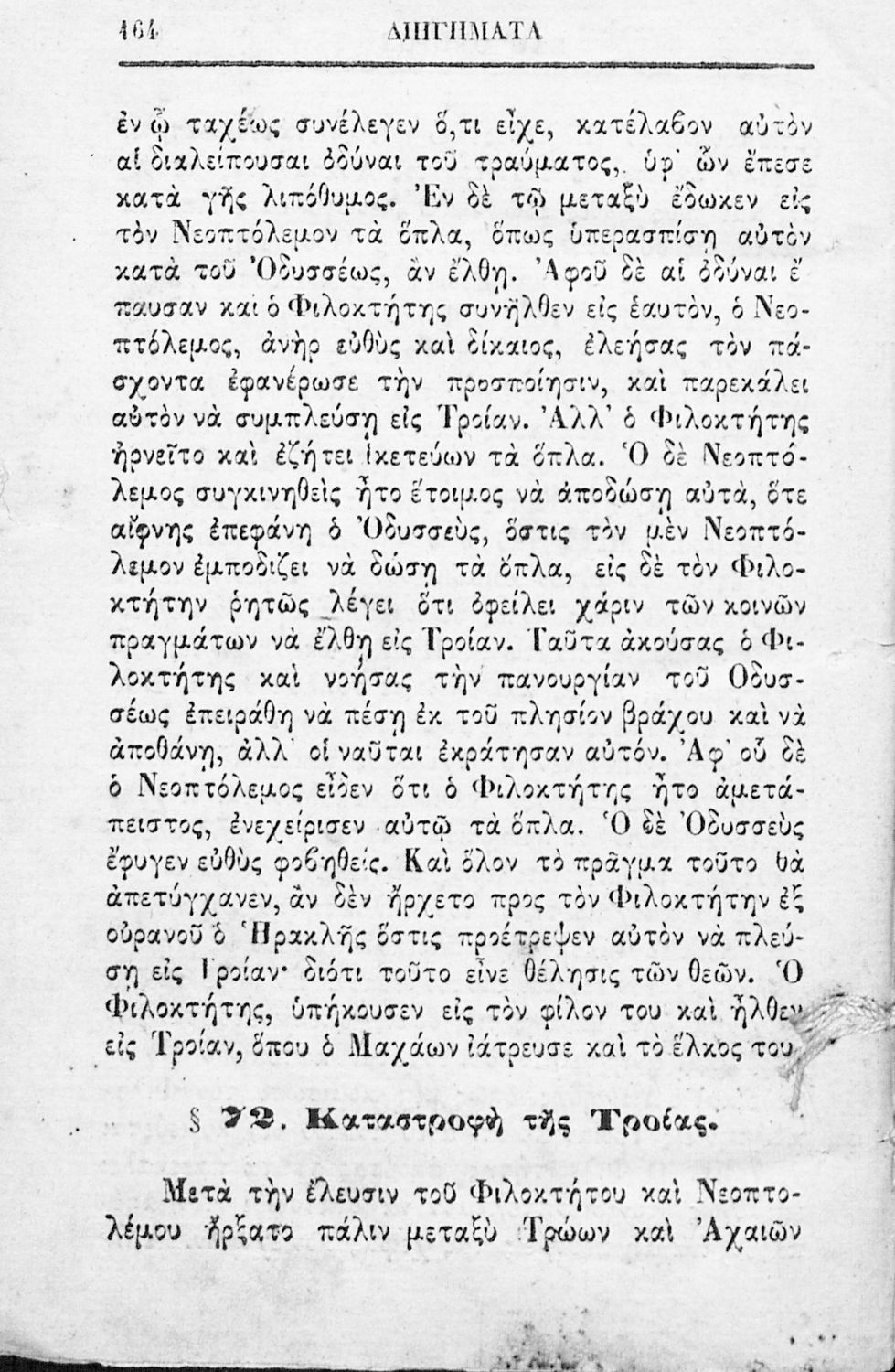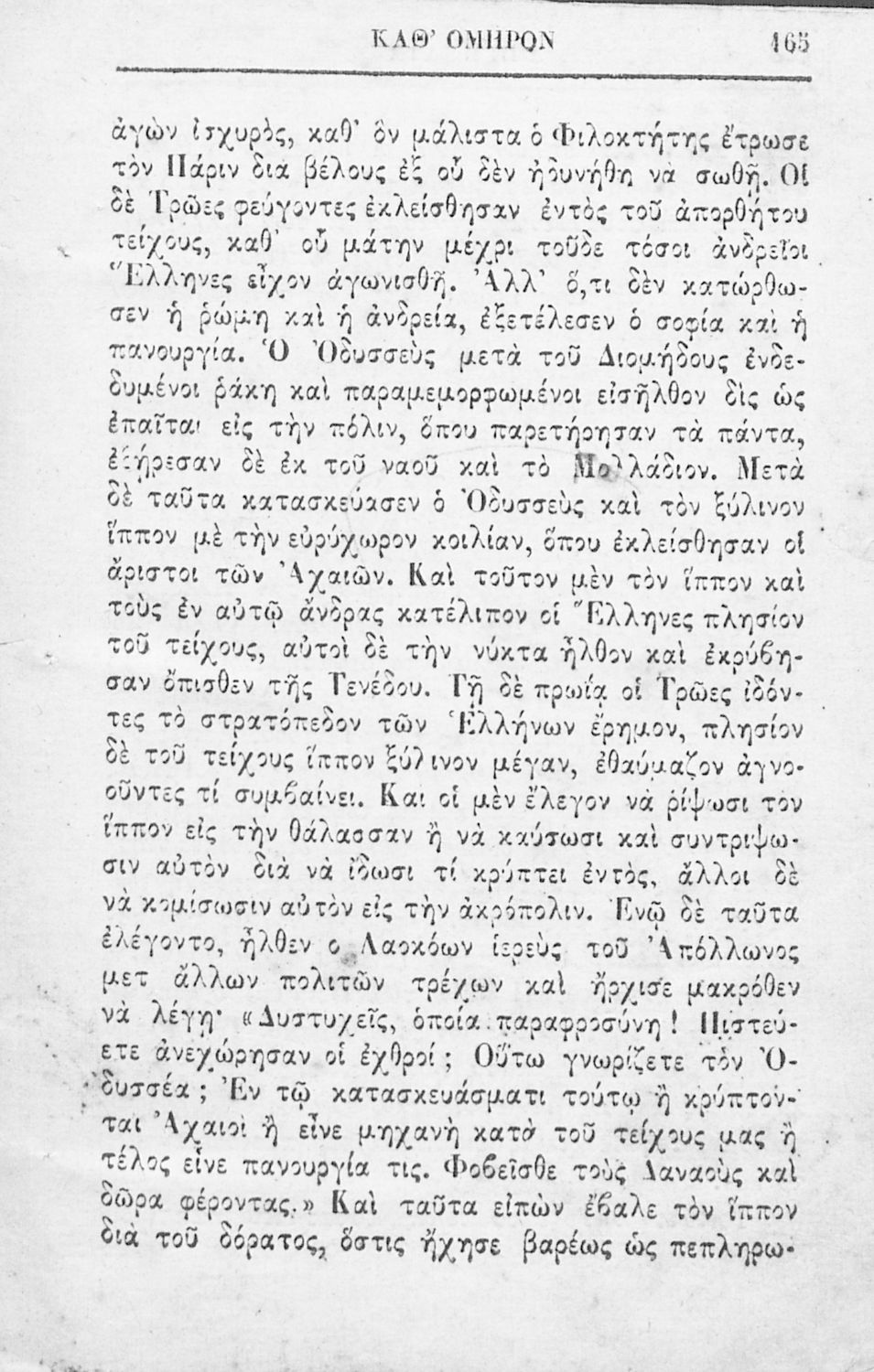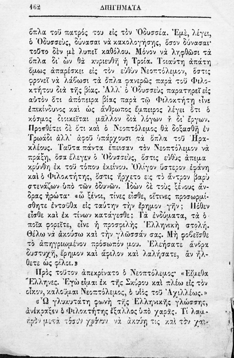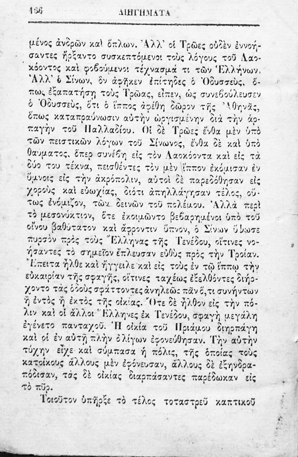 Αναγνωστικό Δημοτικού που περιλαμβάνει διηγήματα εμπνευσμένα από τον Τρωικό Πόλεμο και αποσκοπεί να διδάξει στους ελληνόπαιδες "ότι προς ταις αρεταίς της ειρήνης υπάρχουσι και αρεταίς του πολέμου, η αρετή της ...