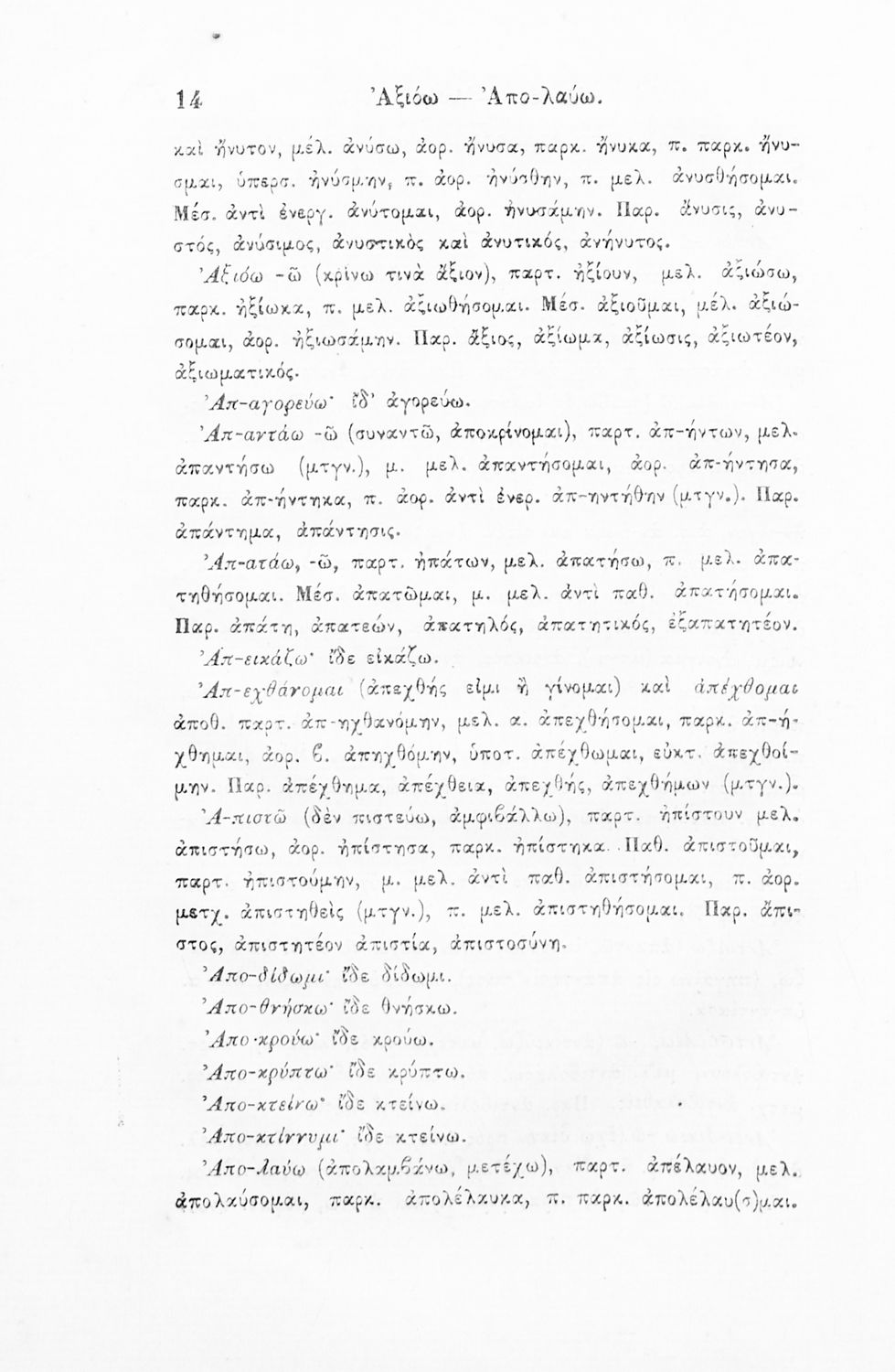 Μαθητικό βοήθημα Αρχαίων Ελληνικών για τα Γυμνάσια, Παρθεναγωγεία και Ελληνικά σχολεία το οποίο περιέχει κατάλογο ανωμάλων ρημάτων της Αττικής διαλέκτου.