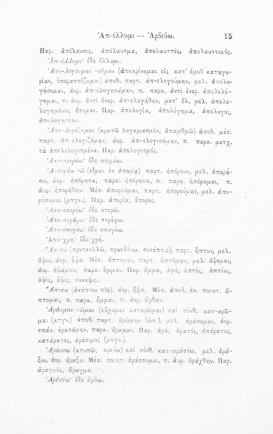Μαθητικό βοήθημα Αρχαίων Ελληνικών για τους μαθητές των Ελληνικών Σχολείων και των Γυμνασίων το οποίο εμπεριέχει κατάλογο ανωμάλων κι ελλιπών ρημάτων.