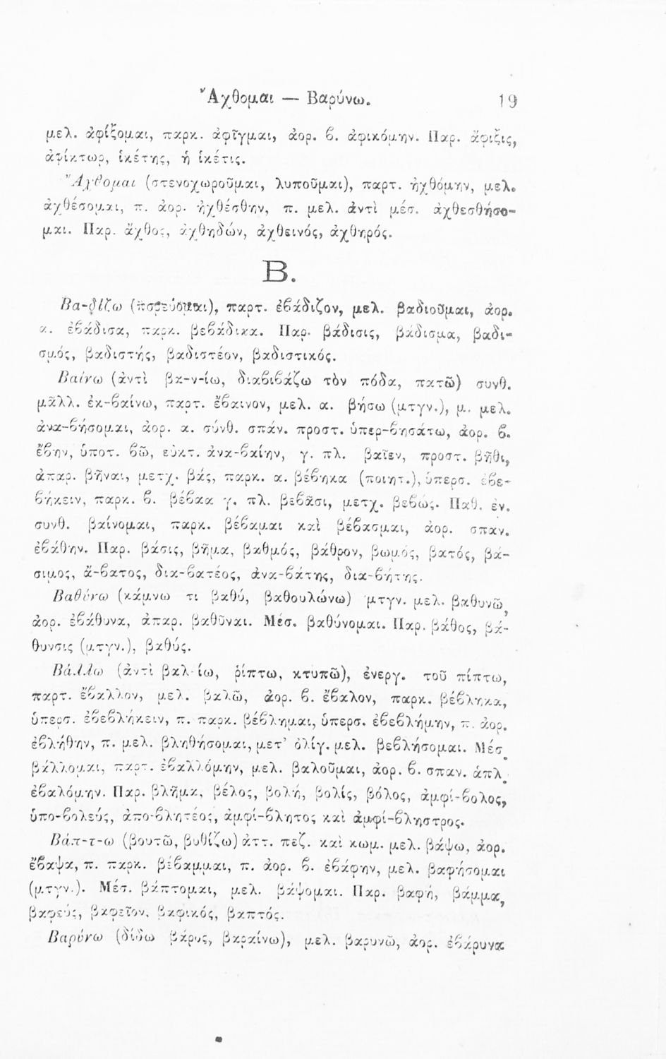 Μαθητικό βοήθημα Αρχαίων Ελληνικών για τα Ελληνικά Σχολεία, Παρθεναγωγεία και Γυμνάσια που περιλαμβάνει γραμματική της αρχαίας ελληνικής και κατάλογο ανωμάλων ρημάτων.